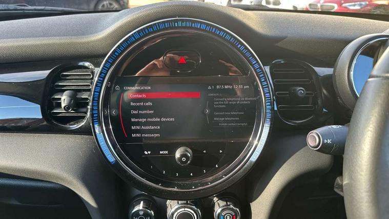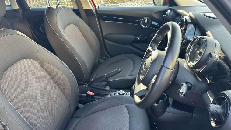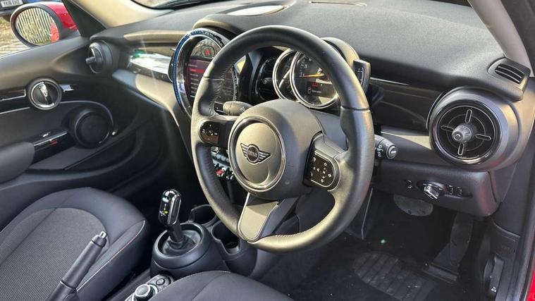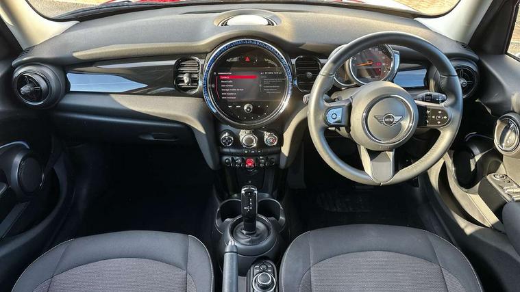 Apple CarPlay, Automatic start/stop function with brake energy recuperation, Compatible mobile phone bluetooth with audio streaming, Cruise control with brake assist, Electro-mechanical speed dependant steering assistance, Flexible car sharing preparation, Instrument cluster, Mini E-call, MINI TeleServices, On board computer, Service interval indicator, Double Vanos system, Fully variable valve control, Gear change indicator display, High precision injection, Performance Control, Steptronic transmission with double clutch, 8.8" touchscreen with LED ring, FM tuner and DAB digital radio, 3rd brake light, Automatic headlight activation switch, Body colour fuel filler cap, Body colour roof and mirror caps, Chrome border high gloss black slats radiator grille, Dynamic brake lights, Electric front+rear windows, Exhaust tailpipe, Heated rear window, Heated windscreen washer jets, LED headlight with closed ring and daytime driving lights, Metal door sill strips with MINI imprint, Rain sensor window wipers, Rear fog lights, Rear LED lights with union jack design, Rear side wing doors, Rear window wiper, Side scuttle panel with integrated indicator, Sun/heat protection glass, White indicator lenses, 12V Accessory socket in centre console, 3 seat bench in 2nd row, 4 lashing eyes in luggage compartment, 60/40 split folding rear seat, Ambient lighting, Carbon black colour line - Knee roll and door armrest, Chrome interior highlights, Cupholders, Front and rear head restraints, Front and rear isofix with front passenger airbag deactivation, Front and rear velour floor mats, Glove compartment, Height and length steering column adjustment, Interior lighting with 12 different colours across the dashboard, underneath door bezel with illuminated laser-engraved design on central display, Leatherette gearshift lever and handbrake gaiters, LED reading lights, vanity mirror lights, front foot well light and spotlight on front seats, Manual air conditioning, Mechanical seat adjustment - forward/back & backrest for front seats and driver seat height adjust, Multifunction steering wheel, Satellite grey headlining including grab handles and clothes hooks, Single front passenger seat, Sport leather steering wheel with speed limiter and audio/communication controls, Storage compartments in doors, Sunvisors with vanity mirrors, 3 point seatbelts on all five seats, 6 Airbags - front, side, head and seat belt tensioners, Anti-lock braking system (ABS), Child locks on rear doors, DSC - Dynamic Stability Control, Front and rear disc brakes, Hill start assist, Single tone fanfare horn, Tyre pressure monitoring system, Alarm system with tilt sensor, monitoring doors, bonnet interior and tailgate, Electronic vehicle immobiliser, Start/stop toggle with keyless go, Piano black interior trim, Tool kit, Tyre repair kit,