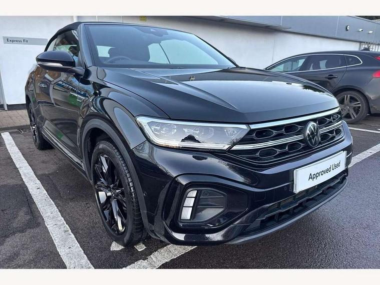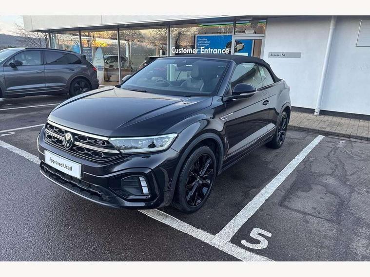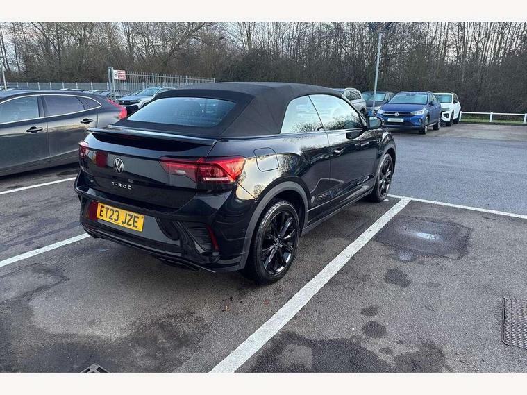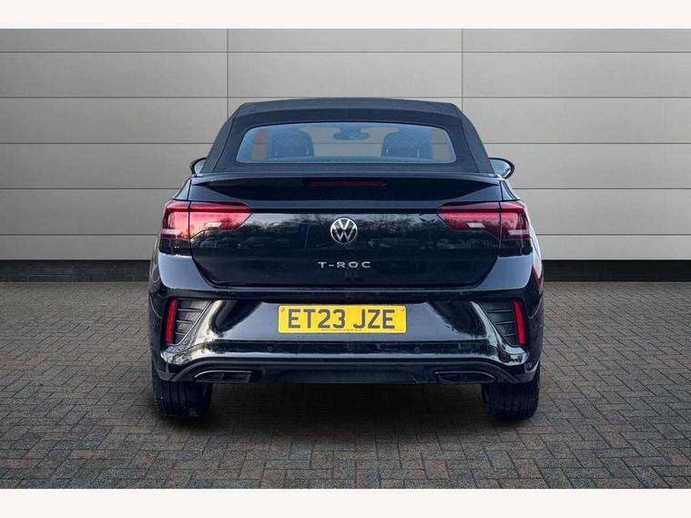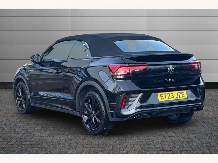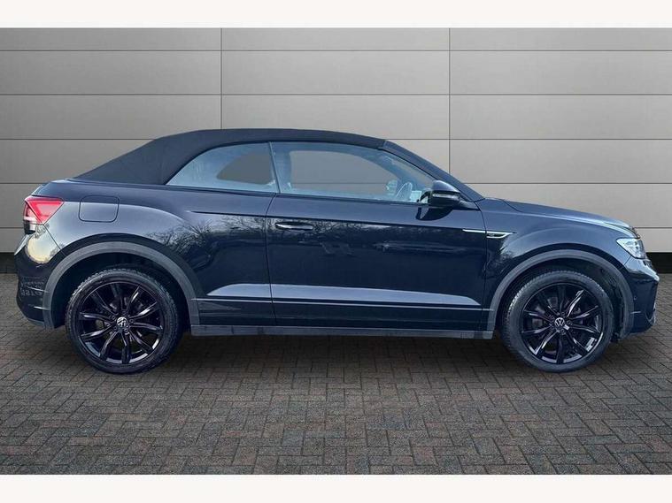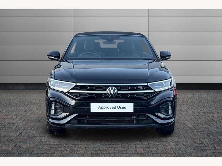 Adaptive cruise control and speed limiter, Bluetooth mobile phone interface, Brake pad wear indicator, Car information display, Digital Cockpit Pro with 10.25" Display, Driver alert system with fatigue detection, Driver tips and journey analysis, Emergency call service, Modified key software - reduce switch off time for key status change to Long no motion, Multifunction computer with visual gear change recommendation for fuel consumption, Multifunction front facing camera, Park assist including front and rear parking sensors, Speedo and rev counter, electronic odometer, trip, service interval display and exterior temperature gauge, Start/stop system with brake energy recovery, Tailgate/trunk lid release from outside, Warning sound and light for front seatbelts unfastened, Shock absorption in front, Diversity antenna for FM reception, Music playback - MP3, WMA and AAC files, SMS functionality - read, compose and send SMS messages using touch-screen display, Title and cover art display, USB-C Interface and USB charging socket, We Connect and We Connect Plus functionality, Ambient lighting with logo projection, Auto dimming interior rear view mirror, Automatic hazard lights activation under emergency braking, Automatic headlight control with LED separate daytime running lights with coming/leaving home function, Black roof, Body colour door handles, Body colour rear spoiler, Chrome effect left and right trapezoid exhaust tailpipe fascia surround, Chrome trim on upper and lower radiator grille, Dark red rear combination lamps in LED technology, Dusk sensor, Exterior mirrors aspherical on driver side, convex on front passenger side, Heat insulating glass windscreen, High level 3rd brake light, Inserts of front seats and outer rear seats in ArtVelours titan black, LED rear number plate lights, Power operated canvas convertible top, Power windows with comfort operation and circuit breaker, R-Line design body coloured bumpers, Rain sensor, Rear boot, Rear exhaust tailpipe, Rear fog light on one side and reversing lights on both sides, Remote electrically foldable door mirrors, puddle lights and reverse activated passenger door mirror, Volkswagen roundel, Windscreen wiper with intermittent wipe light, Without exterior ambient lighting, 12V socket in centre console storage area, 2 LED front reading lights, 2 seat bench in 2nd row, 50:50 Split folding rear seat backrests with fixed rear seat bench, Air care climatronic air conditoning system with active combination filter and 2-zone temperature control, Black door lower parts with chrome trim, Chrome plated surround to light, mirror and window switch, Door and side trim panel with leatherette insert, Easy entry backrest release, Front and rear carpet mats with black stitching, Front centre armrest, Front cupholders x 2, Front door pockets, Front seat back storage pockets, Front sports comfort seats with manual height adjustment, Heated multifunction leather sports steering wheel, Height/reach adjust steering wheel, Instrument lighting, white adjustable panel illumination, Interior light delay, Interior light in footwell, Interior lighting with switch off delay and contact switches on all doors, Interior white ambient lighting and surround lighting, Isofix child seat preparation, Lockable glove compartment with light, Luggage compartment lighting, Power adjustable lumbar support in front, Rear head restraints, Single front passenger seat, Stainless steel pedals, Sun visors with illuminated vanity mirrors, Unique R Line door sill protectors, Driver assistance pack without proactive passenger protection - T-Roc cabriolet, Sports pack - T-Roc cabriolet, 2 x 3-point seatbelts/outer rear seats with ECE label, Driver and front passenger airbag with front passenger airbag deactivation, Driver and front passenger safety-optimised head restraints, Drivers seatbelt reminder, Electronic parking brake, Electronic Stability Control (ESC) including ABS, ASR and EDL, Front and rear disc brakes, Front assist with autonomous emergency braking, Pedestrian monitoring, Predictive pedestrian protection, Rigid safety cell with front and rear crumple zones, Side airbag/thorax airbag system, for front passengers, Single tone horn, Three point height adjust front seatbelts + pretensioners, Tyre pressure loss indicator, Volkswagen roadside assistance, Anti-theft alarm system with interior protection and central locking system with SAFELOCK, radio remote control and 2 remote control folding keys, Electronic engine immobiliser, Trims for alloy wheels,