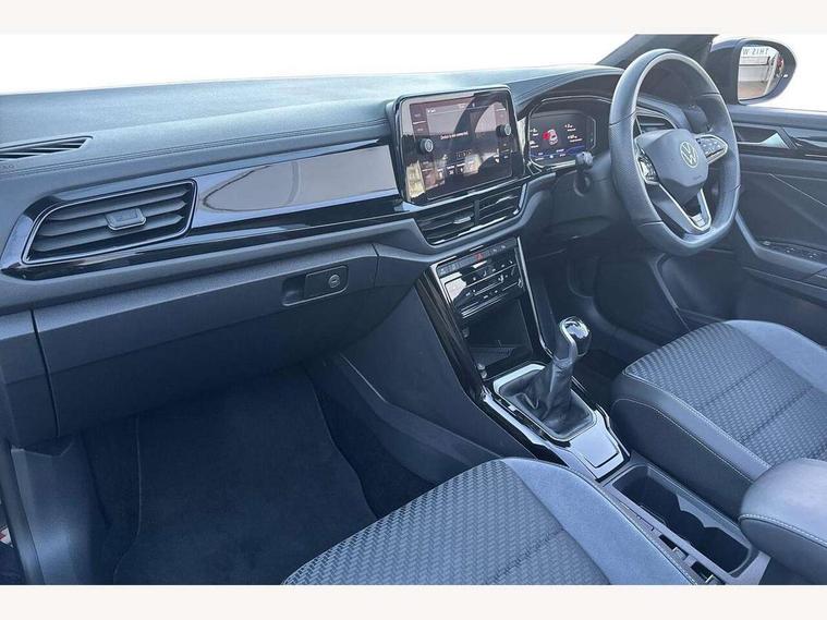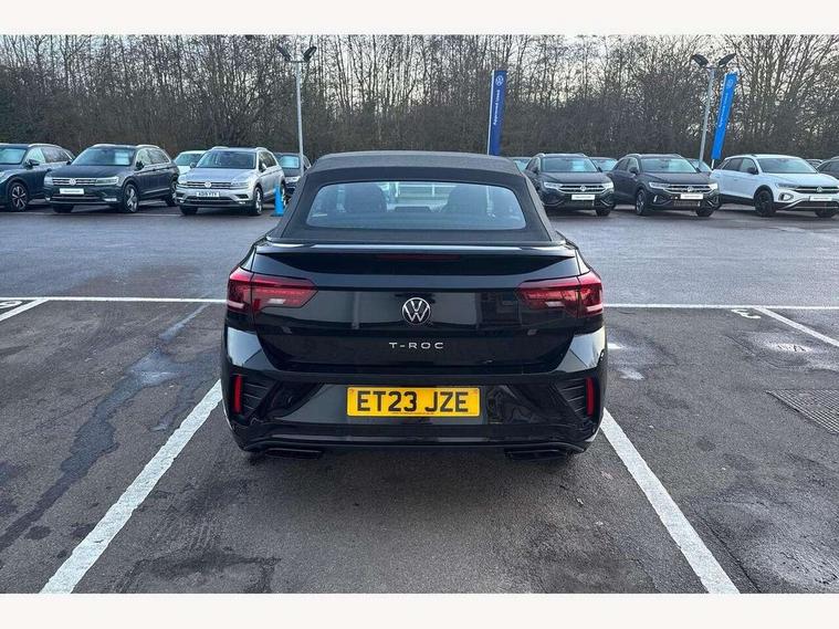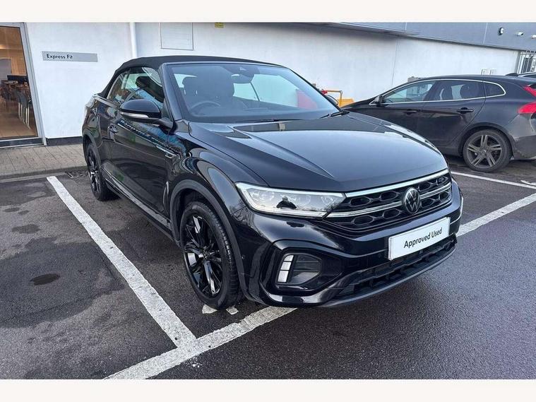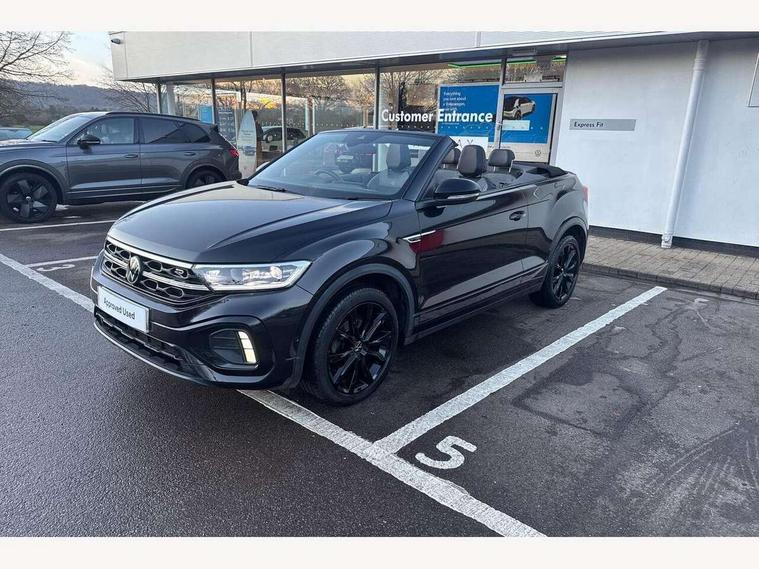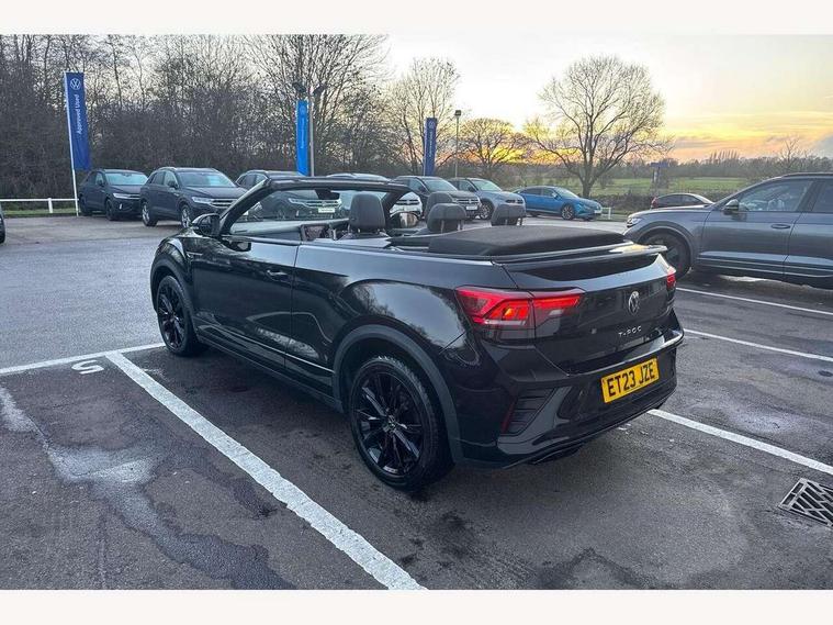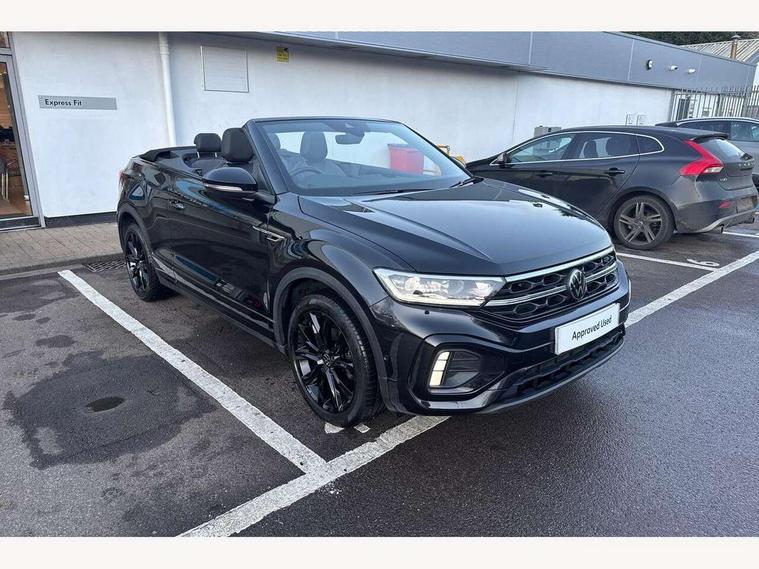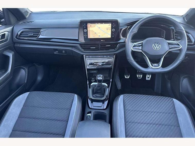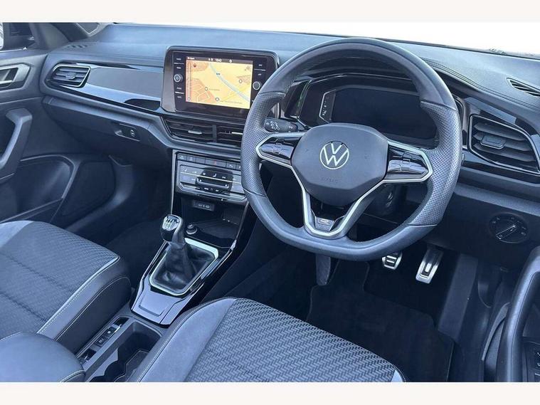 Adaptive cruise control and speed limiter, Bluetooth mobile phone interface, Brake pad wear indicator, Car information display, Digital Cockpit Pro with 10.25" Display, Driver alert system with fatigue detection, Driver tips and journey analysis, Emergency call service, Modified key software - reduce switch off time for key status change to Long no motion, Multifunction computer with visual gear change recommendation for fuel consumption, Multifunction front facing camera, Park assist including front and rear parking sensors, Speedo and rev counter, electronic odometer, trip, service interval display and exterior temperature gauge, Start/stop system with brake energy recovery, Tailgate/trunk lid release from outside, Warning sound and light for front seatbelts unfastened, Shock absorption in front, Diversity antenna for FM reception, Music playback - MP3, WMA and AAC files, SMS functionality - read, compose and send SMS messages using touch-screen display, Title and cover art display, USB-C Interface and USB charging socket, We Connect and We Connect Plus functionality, Ambient lighting with logo projection, Auto dimming interior rear view mirror, Automatic hazard lights activation under emergency braking, Automatic headlight control with LED separate daytime running lights with coming/leaving home function, Black roof, Body colour door handles, Body colour rear spoiler, Chrome effect left and right trapezoid exhaust tailpipe fascia surround, Chrome trim on upper and lower radiator grille, Dark red rear combination lamps in LED technology, Dusk sensor, Exterior mirrors aspherical on driver side, convex on front passenger side, Heat insulating glass windscreen, High level 3rd brake light, Inserts of front seats and outer rear seats in ArtVelours titan black, LED rear number plate lights, Power operated canvas convertible top, Power windows with comfort operation and circuit breaker, R-Line design body coloured bumpers, Rain sensor, Rear boot, Rear exhaust tailpipe, Rear fog light on one side and reversing lights on both sides, Remote electrically foldable door mirrors, puddle lights and reverse activated passenger door mirror, Volkswagen roundel, Windscreen wiper with intermittent wipe light, Without exterior ambient lighting, 12V socket in centre console storage area, 2 LED front reading lights, 2 seat bench in 2nd row, 50:50 Split folding rear seat backrests with fixed rear seat bench, Air care climatronic air conditoning system with active combination filter and 2-zone temperature control, Black door lower parts with chrome trim, Chrome plated surround to light, mirror and window switch, Door and side trim panel with leatherette insert, Easy entry backrest release, Front and rear carpet mats with black stitching, Front centre armrest, Front cupholders x 2, Front door pockets, Front seat back storage pockets, Front sports comfort seats with manual height adjustment, Heated multifunction leather sports steering wheel, Height/reach adjust steering wheel, Instrument lighting, white adjustable panel illumination, Interior light delay, Interior light in footwell, Interior lighting with switch off delay and contact switches on all doors, Interior white ambient lighting and surround lighting, Isofix child seat preparation, Lockable glove compartment with light, Luggage compartment lighting, Power adjustable lumbar support in front, Rear head restraints, Single front passenger seat, Stainless steel pedals, Sun visors with illuminated vanity mirrors, Unique R Line door sill protectors, Driver assistance pack without proactive passenger protection - T-Roc cabriolet, Sports pack - T-Roc cabriolet, 2 x 3-point seatbelts/outer rear seats with ECE label, Driver and front passenger airbag with front passenger airbag deactivation, Driver and front passenger safety-optimised head restraints, Drivers seatbelt reminder, Electronic parking brake, Electronic Stability Control (ESC) including ABS, ASR and EDL, Front and rear disc brakes, Front assist with autonomous emergency braking, Pedestrian monitoring, Predictive pedestrian protection, Rigid safety cell with front and rear crumple zones, Side airbag/thorax airbag system, for front passengers, Single tone horn, Three point height adjust front seatbelts + pretensioners, Tyre pressure loss indicator, Volkswagen roadside assistance, Anti-theft alarm system with interior protection and central locking system with SAFELOCK, radio remote control and 2 remote control folding keys, Electronic engine immobiliser, Trims for alloy wheels,