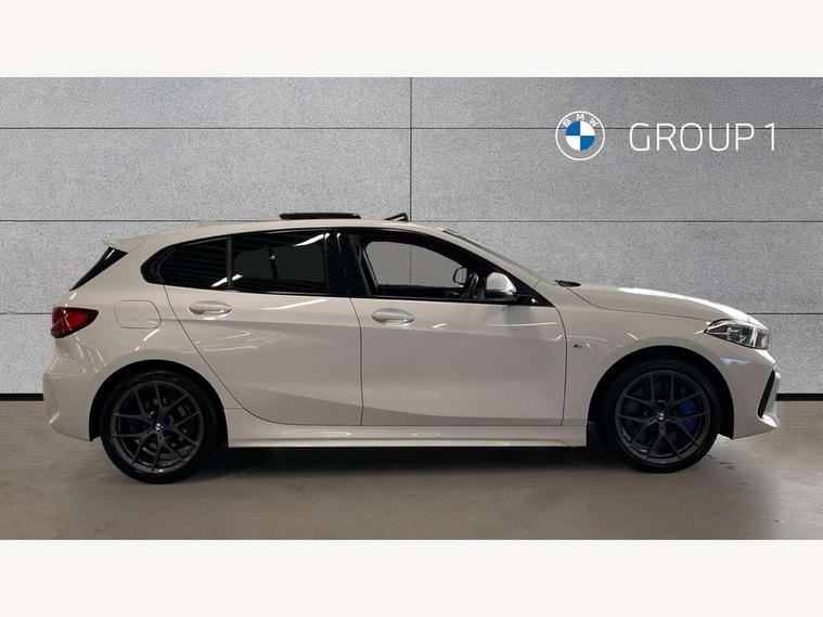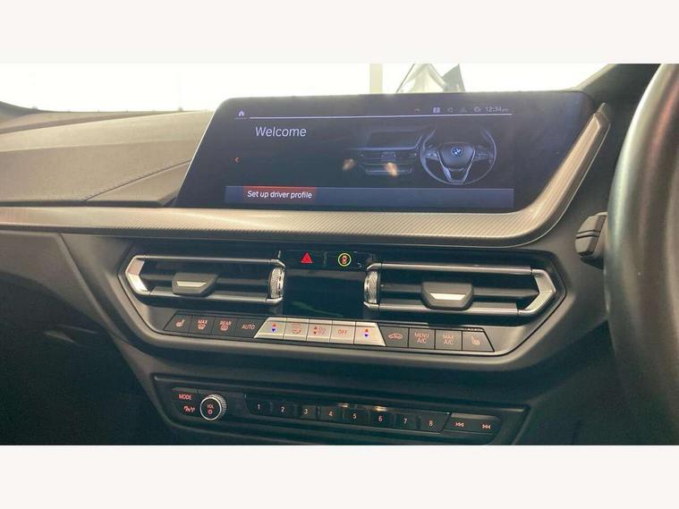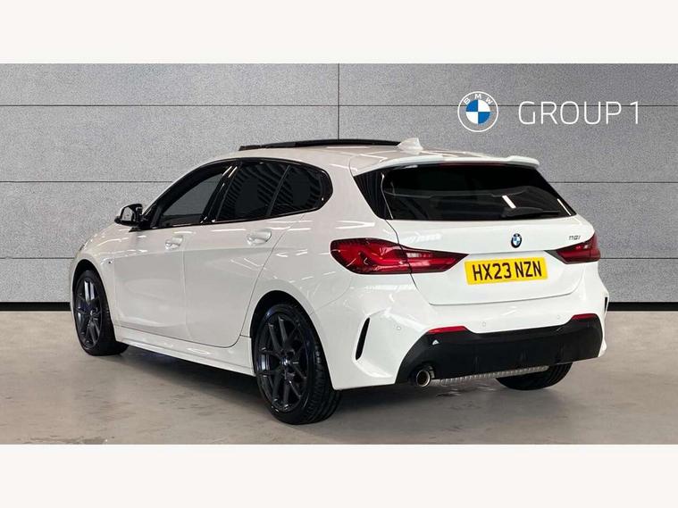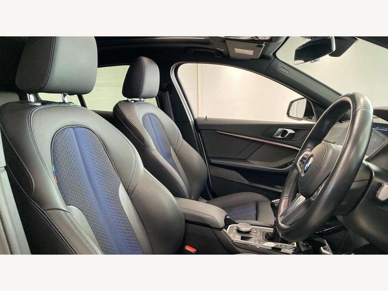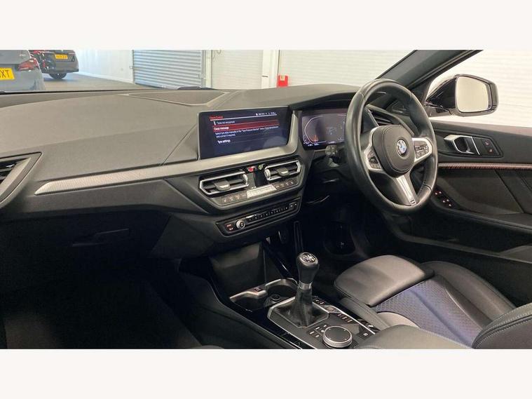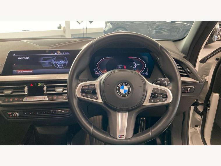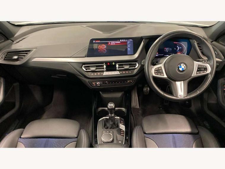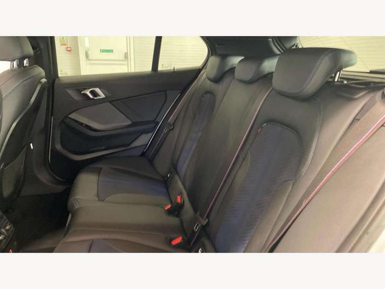 Active guard plus, Attentiveness assist, BMW ConnectedDrive online services, BMW Teleservices, Check Control warning system for monitoring of lights and door/luggage compartment open warning, Cruise control with speed limiter, Eco pro mode, Front axle single joint with specific axle kinematics to minimise drive influences on steering + provide increased rigidity agile driving behaviour, Integrated owners handbook, Lane departure warning system, Oil sensor for level and grade, On board computer, Optimum shift indicator, Personal Profile, Pull away assistant, Rigidly mounted rear subframe - Multi link construction with separate spring / damper configuration and excellent driving characteristics, Speed limit Info including no-overtaking indicator, Aluminium lightweight construction, Anti roll bar front and rear, Balancer shaft, Double VANOS twin scroll turbocharging system, Drive Performance Control, Electronic differential lock, High precision injection, M sport suspension, Petrol Particulate Filter, Twin tube gas filled shock absorbers with degressive characteristic curve, VALVETRONIC engine management, DAB Digital radio, Auto dimming rear view mirror, Automatic headlight beam throw control, Automatic windscreen wipers and automatic headlight, Body colour door handles, Body colour mirror caps, Body colour roof trims, Chrome 'M' logo side designation, Chrome exhaust twin tailpipes round 90mm in left, Chrome kidney grille frame with Satin Aluminium struts, Direction indicator side lights in exterior mirrors, Electrically adjustable exterior mirror with mirror adjustment switch on drivers armrest and aspheric on driver side, convex on passenger side, Fading support, Folding side mirrors with auto dimming/folding wing mirrors with auto dimming, Follow me home headlights, Front and rear bumper system with replaceable deformation elements, Front and rear electric windows with open and close fingertip control, anti trap facility and comfort closing, Front door sill finishers in black plastic with M designation in metallic look, Green tinted heat protection glazing, High gloss shadowline window frame, Recess cover mirror frames and B/C pillar embelisher trim, High level third brake light, Integrated front windscreen with washer jets, LED daytime running lights, LED eyebrow turn indicators, LED front fog lights, Lightweight engineering, Matt black air guide grilles, Matt black wheel arch trim, Model designation on electric bootlid, Nearside reverse light in rear light cluster, Preparation for high beam assistant, Rear fog lights, Rear side wing doors, Rear window wiper, Shark fin antenna, Trailer stabilisation logic, Visible VIN plate, Welcome lighting, 12V power socket in front centre console with blanking plug, 3 rear seat head restraints, 3 seat bench in 2nd row, 3 spoke sports leather steering wheel in black leather with black stitching and decorative finisher in pearl chrome, specific M badge + leather knob, Anthracite headlining, Black boot net with lashing eyes, Cargo function on 2nd seat row, Child seat ISOFIX attachment for two outer rear seats and front passenger seat with anchorage points, Conditioned based service, Driver and front passenger backrest net on rear, Driver and front passenger seat heating, Driver side folding compartment in instrument panel, Folding rear clothes hook, Four grab handles integrated in roof lining, Front and rear door pockets with bottle holders, Front and rear side armrest integrated into door trim, Front armrest, Front sports seats, Gearshift lever with M designation, Glove compartment, Height adjustable front head restraints, Luggage compartment for bag hooks on left and right, foldable luggage compartment liner and four lashing eyelets, Manual adjust steering wheel, Multi-function controls for steering wheel, Single front passenger seat, Storage compartment in centre console, Storage compartment in luggage compartment, Stowage of the parcel shelf in luggage compartment trim, Sun visors with vanity mirrors and insert tab, Two front centre console cupholders, Two zone automatic air conditioning, Type C two USB ports in rear centre console, Velour floor mats, Additional interior lighting pack - 1 Series, BMW live cockpit professional pack- 1 Series, Connected pack professional - 1 Series, Interior lights pack - 1 Series, M Sport exterior styling aerodynamics pack - 1 Series, 2 tone horn, 3 point seatbelts on all seats, front pyrotechnic belt tensioners, stopper and belt force limiters, rear coded belt buckles, Airbags - Front driver/passenger, front and rear curtain head protection, front side, manual deactivation of front passenger airbag, Anti lock braking system (ABS) with brake assist, BMW emergency call, Brake drying, Braking readiness, Child proof locking system in rear door, City braking function, Comfort modes, Cornering brake control, Crash sensor activating of airbags, Unlocking doors, hazard warning lights, interior light, safety battery terminal, Driver and front passenger seat belt security check, Dynamic stability control + (DSC+), Dynamic Traction Control - DTC, Electrically operated hand brake, Front and rear disc brakes, Seatbelt warning, Side impact protection, Tyre pressure monitoring system, Warning triangle and first aid kit, Central locking switch for all doors, fuel filler cap and luggage compartment, Deadlocking function system to all doors, Drive away locking system on all doors and luggage compartment with de-activated in iDrive settings, Locking wheel bolts, Remote control with integrated key with High-gloss Black inlay and M designation and 1 button for open/ close lock, window, open luggage compartment, Start/stop button illuminated in centre console with keyless engine start and auto start stop deactivation button, Thatcham Cat.1 alarm and immobiliser, Wheel slip limitation close to the actuator (ARB), Contrast stitching on instrument panel, 18" Burnished M double spoke bi-colour alloy wheels finished in orbit grey - style 819M