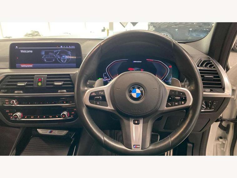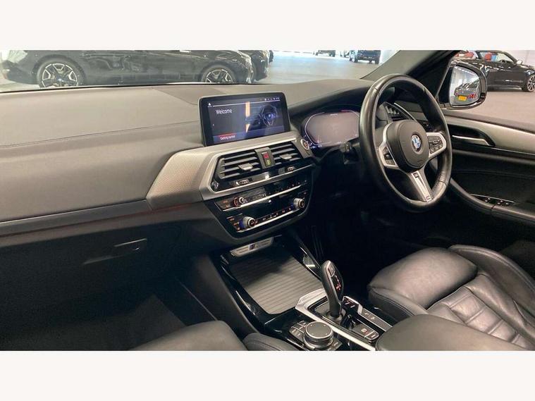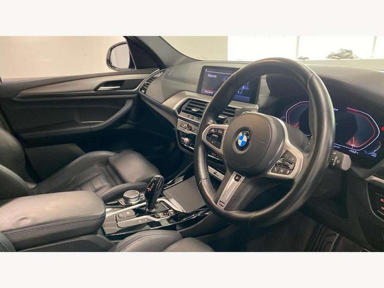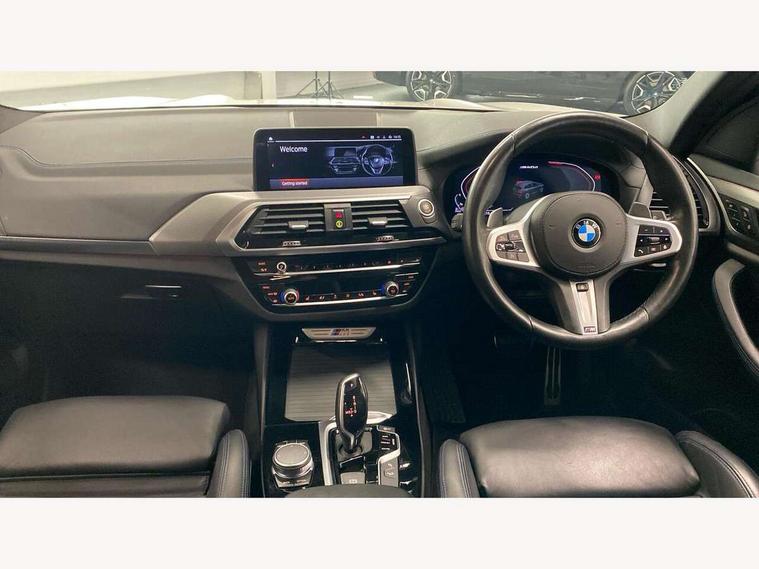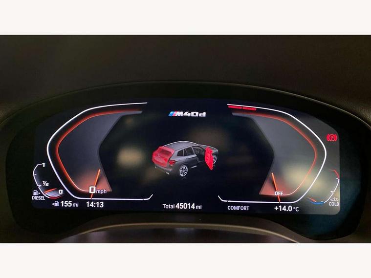 Attentiveness assist, Automatic tailgate operation, Bluetooth hands free telephone connection with USB audio interface + audio streaming, BMW Live Cockpit Professional sat nav system including 10.25" high resolution display and Intelligent Voice Assistant, BMW Online services, BMW Teleservices, Brake pad wear indicator in front and rear, Check Control warning system for monitoring of lights and door/luggage compartment open warning, Control display - 6.5" colour display screen, iDrive Controller with 8 favourite buttons, Lights on warning by audio warning signal when ignition is switched off, Navigation system - BMW Professional multimedia with Hard disc drive (HDD) and 10.25" touch display, Oil sensor for level and grade, warning by check control system, On board computer - average speed+fuel consumption, service interval, clock/date, odometer/trip meter, outside temperature display and ice warning, Optimum shift indicator, Personal Profile - automatic lock when driving away selectable, Semi digital instrument cluster, Stop/start system, Variable sports power steering, Diesel particulate filter, Drive performance control with ECO PRO comfort + sport mode, Incorrect fuelling protection, M Sport differential, Multi-link rear suspension, Performance Control, Sport automatic transmission with gearshift paddles, Auxiliary socket for external MP3 player, BMW professional radio/CD/MP3, DAB Digital radio, Acoustic glazing, Black finish on B pillars, Body colour door handles, Body colour roof mouldings, Body coloured bumpers, Cerium grey frame and kidney grille with high gloss black vertical slats, Direction indicator, side repeaters, integrated in exterior mirrors, Dual black chrome quadrilateral exhaust tips, Dynamic brake lights, Electric adjustable heated door mirrors, Exterior air inlets, mirror caps and air breather in cerium grey, Exterior mirrors - electrically folding with anti-dazzle, Fingertip control / anti-trap function on electric window, Follow me home headlights, Front and rear bumper system with replaceable deformation elements, Front and rear electric windows, Green tinted heat insulating glass, Heated windscreen washer jets, Height adjustable headlamps, High gloss black door sill finishers, High gloss black shadow line roof rails, High level 3rd brake light incorporating LED Technology, Interior rear view electrochromatic mirror with automatic anti dazzle function, LED daytime running lights, corona ring style, LED front fog lights, LED Indicators, LED tail lights, Lightweight engineering, M aerodynamic bodystyling, Model designation, Rain sensor including auto headlights activation, Rear wiper, Shark fin antenna, Side exterior M designation badges, Sun protection glass, Visible VIN plate, Welcome lighting, Windscreen wipers with adjustable interval, 12V socket in centre console and luggage area, 3 rear headrests, 3 zone automatic air conditioning, 4 lashing points to secure luggage, Ambient lighting, Anthracite headlining, Anthracite Velour floor mats, Door sill finishers with BMW Individual designation, Driver/passenger sunvisors with ticket holders + illuminated vanity mirrors, Electric adjustable seats with memory function, Foldable boot floor with storage compartment, Four grab handles integrated in roof lining, Front and rear bottle holders integrated into door trim storage compartments, Front and rear side armrests integrated into door trim, Front centre armrest with storage compartment, Front footwell lights, Front/rear courtesy lights with soft on/off dimming, Front/rear reading lights, Height adjustable front/rear head restraints, Illuminated glovebox with lock, Isofix rear child seat preparation, Leather gear knob, Luggage area underfloor compartment, Luggage compartment lighting, M sport leather steering wheel, Parcel shelf removeable and storable under boot floor, Reach and rake adjustable steering column, Rear centre armrest with 2 cupholders, Removable / retractable luggage cover, Slope adjustable rear seats, Storage compartment in rear centre console and front/rear door trims, Through loading system with 40/20/40 split folding rear seat, Toolkit located in luggage compartment, Two front cupholders with removable oddments tray/lid, Vernasca leather upholstery, Connected pack professional - X3, Visibility pack - X3, ABS/EBD, ADB - Automatic Differential Brake, Automatic Stability Control (ASC), Battery safety cut-off, BMW emergency call, Brake assist, Brake drying, Brake energy regeneration, Braking pre-tensioning, Child locks on rear doors, Cornering brake control (CBC), Crash Sensor - activation of central locking release, hazard warning light and interior lighting, Deactivation of fuel pump in the event of a crash, Driver and front passenger front and side airbags with passenger deactivation and ITS front and rear head airbags, DSC+, Dynamic brake control, Dynamic Traction Control - DTC, Electromechanical parking brake, Front seat belts warning, Hill descent control, Hill start assist, Seatbelt security check for front seats, Side impact protection, Three point seatbelts to all seats with front and outer rear pyrotechnic belt tensioners and seat belt force limiters, Two tone horn, Tyre pressure monitoring system, Ventilated front and rear disc brakes, Warning triangle and first aid kit, Central locking switch for all doors, fuel filler cap and luggage compartment, Electronic engine immobiliser, Locking wheel nuts, Remote control including two integrated key - one button for open/close all lockable content, windows and separate button for open luggage compartment, Remote control Thatcham category 1 alarm, Start/stop button with Comfort Go keyless engine start and auto Start/stop deactivation button, Sensatec instrument panel, Low rolling resistance tyres,