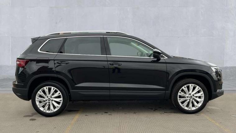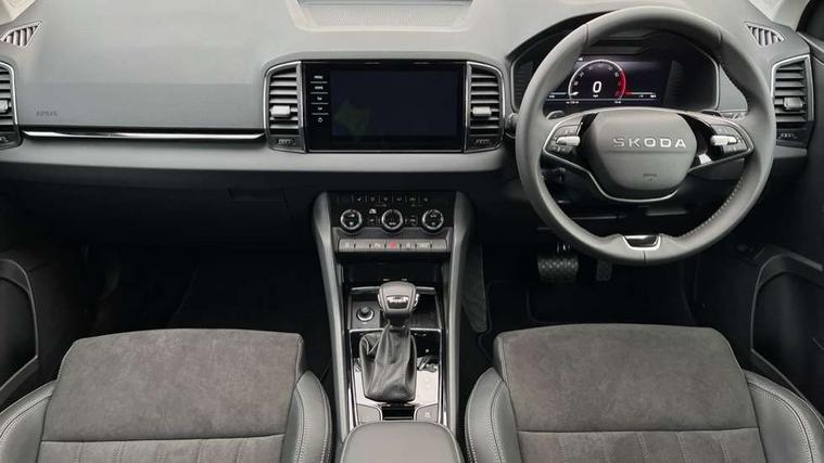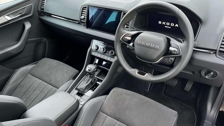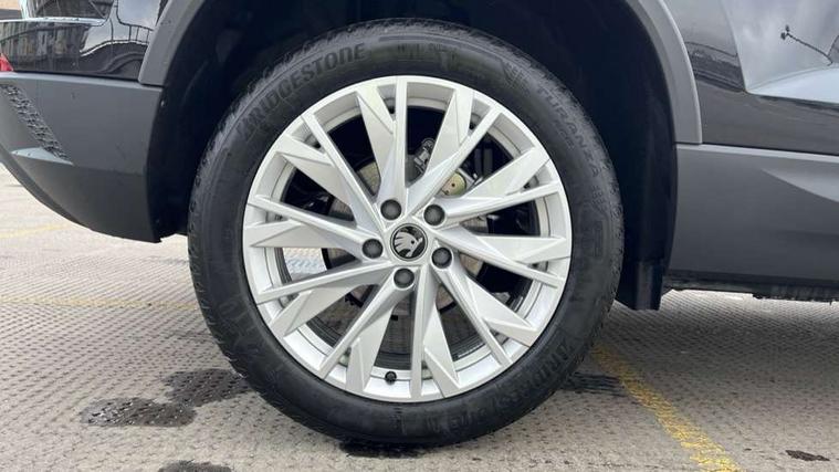 Advanced driver attention and drowsiness monitor, Drive Mode Selection including ECO function, Electro-mechanical PAS, Emergency services call system, Outside temperature gauge, Sensor for driver assistance systems, Service interval indicator, SmartLink wireless for Apple and wired for Android, Start/stop system with regenerative braking, Traffic sign recognition, USB C Port x 2 in front centre console, Virtual Cockpit - 10.25" digital display, Virtual pedal with electrically operated boot door, Wireless smartphone charging, DAB radio with Bluetooth, USB connection, Acoustic glass, Aero front windscreen wipers with intermittent function, Auto dimming rear view mirror with light and rain sensors, Black electric window control buttons, Body colour door mirrors and handles, Electric front and rear windows with child proof lock, Extended rear roof spoiler, Heated rear windscreen, LED daytime running lights, LED rear lights with high functionality welcome effect and dynamic indicators, Light assistant (coming/leaving home/tunnel light), Plastic scuff plates in door apertures, Privacy glass, Rear side wing doors, Rear window wiper with washer system and intermittent control, Safety reflectors on front doors, Third brake light, Unique dark chrome design logo on alloy wheels, 1.5 litre bottle holders in driver and front passenger door panels, 12V socket in boot, 12v socket in front centre armrest with storage compartment and rear air vents, 2 spoke leather heated multifunction steering wheel with DSG paddles, 2 x Tablet holder, 3 rear height adjustable headrests, 3 seat bench in 2nd row, 4 foldable roof handles with rear coat hooks, Black floor carpet, Cargo elements in boot, Chrome inner door handles, Decorative door sills with KAROQ badging, Foldable hooks in the boot, Front head restraints, Height adjustable front three point seats belts with tensioners, Height/reach adjust steering wheel, Ice scraper, Illuminated glovebox, Illuminated luggage compartment, Interior noise suppression, Isofix child seat preparation for front passenger seat, Isofix child seat preparation outer rear, Manual lumbar support for front seats, Pearl grey interior ceiling, Pen holder, Pollen filter, Rear boot cover, Rear package tray, Rear reading lights, Rubbish bin door, Safety vest holder, Single front passenger seat, Skoda lettering on steering wheel, Storage box in upper central dashboard closed, Sunvisors with illuminated vanity mirrors, Textile floor mats, Ticket holder, Columbus pack - Karoq, Design Pack - Karoq, Non Smokers pack, Parking pack - Karoq, Automatic door unlocking in case of crash, Automatic fuel cut off in case of crash, Driver airbag, Electronic parking brake with auto hold function, Emergency rear braking signal, ESC (incl. ABS+MSR+ASR+EDS+HBA+DSR+RBS+MKB), Front side airbags, Head airbags, Hill hold control, Knee airbags, Passenger airbag with switch-off function, Pedestrian monitor, Power operated child safety locks, Seatbelt reminder signalisation and pretensioner for all seats, Three point seatbelts rear, Two tone horn, Tyre pressure monitor, Alarm with interior monitoring, back up horn and tilt sensor with safe function, Electronic engine immobiliser, Keyless entry and start/stop, Remote central locking with 2 remote folding keys, Black centre console, Chrome framed air vents, Satin black dashboard, Anti-theft wheel bolts protection, Breakdown and tool kit,