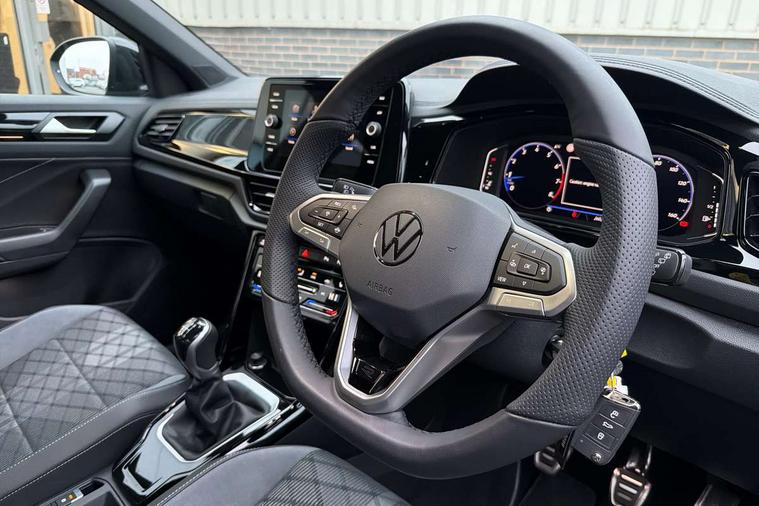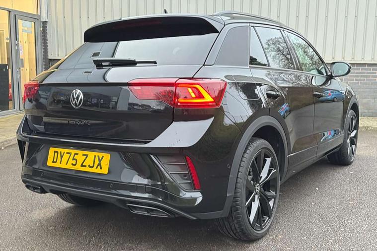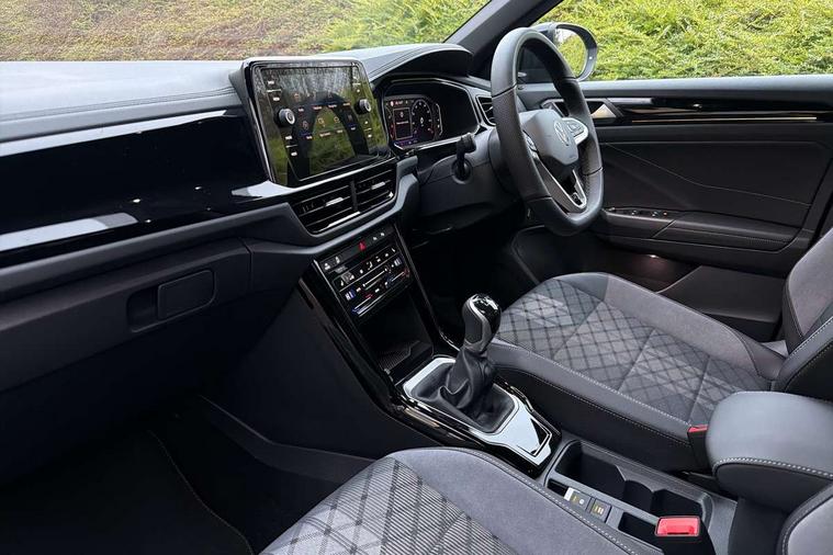 10.25" Digital cockpit pro, Advanced driver attention and drowsiness monitor, Emergency call service, Lane keeping system Lane Assist, Mobile phone interface, Modified key software - reduce switch off time for key status change to Long no motion, Online services, Park assist including front and rear parking sensors, Power assisted speed sensitive steering, Service interval indicator, Tailgate/trunk lid release from outside, Think blue trainer driver tips and journey analysis, Warning sound and light for front seatbelts unfastened, Wireless app connect, Battery regeneration during braking, Rear shock absorption chassis with increased ride height, Start/stop function with battery regeneration, DAB Digital radio, Diversity antenna for FM reception, Front and rear 6 speakers, Music playback - MP3, WMA and AAC files, Premium USB cable in choice of either Apple or Android smartphone compatibility, SD card slot, Simultaneous pairing of 2 compatible mobile devices, Title and cover art display, We Connect and We Connect Plus functionality, Auto dimming interior rear view mirror, Automatic hazard lights activation under emergency braking, Automatic headlight control with LED separate daytime running lights with coming/leaving home function, Dynamic cornering light, Electrically adjustable and heated door mirrors, Extended roof spoiler, Exterior mirrors aspherical on driver side, convex on front passenger side, External USB type C socket and charging sockets, Front windscreen wiper with intermittent wipe and 4 position delay, Heated rear window, Illuminated front grille, IQ LED matrix headlights, LED 3rd brake light, LED rear number plate lights, LED rear tail lights with dynamic turn signal, Light mode for poor weather, rain, fog or snow, Power windows with comfort operation and circuit breaker, R-Line design body coloured bumpers, Rain sensor, Rear exhaust tailpipe, Rear fog light on one side and reversing lights on both sides, Rear side wing doors, Rear wash/wipe with intermittent wipe setting, Remote electrically foldable door mirrors, puddle lights and reverse activated passenger's door mirror, 12V power socket in centre console, 3 rear head restraints, 3 seat bench in 2nd row, 4 load lashing points in luggage compartment, Air care climatronic air conditoning system with active combination filter and 2-zone temperature control, Artvelours cloth upholstery, Black roof lining, Chrome plated radiator grille inserts, air vent surrounds and light switch surrounds, Door and side trim panel with leatherette insert, Drawer under drivers seat, Driver seat height adjust, Driver's seat lumbar support, Front + rear carpet mats, Front centre armrest, Front comfort sports seats, Front cupholders x 2, Front footwell illumination, Front reading light, Front scuff plates with R Line logo, Front seat back storage pockets, Glove compartment door with light, Instrument lighting, white adjustable panel illumination, Interior ambient lighting and surround lighting, Interior light delay, Isofix child seat preparation, Leather gearshift handle, Load-through provision with cup holder when folded down ('Unsplit rear seat bench, split folding backrest, with centre armrest), Luggage compartment lighting, Non-folding front passenger seat backrest, Passenger seat height adjuster, Passenger seat lumbar support, Single front passenger seat, Stainless steel pedals, Storage compartment in left and right luggage area, Storage compartment in rear doors, Storage compartments in driver and front passenger doors, Sunvisors with illuminated vanity mirrors, Variable boot floor, height adjustable and removable, Winter pack without heated windscreen washer jets - T-Roc, 3 point height adj front seatbelts + pretensioners, 3 point seatbelts in outer rear with ECE label, ABS, Child locks on rear doors, City emergency braking and pedestrian monitoring, Driver and front passenger airbag with front passenger airbag deactivation, Driver and front passenger safety-optimised head restraints, Drivers seatbelt reminder, Electronic parking brake, Electronic Stability Control (ESC) inc EDL (Electronic Differential Lock) and ASR (Traction Control), Front and rear passengers curtain airbag system including front side airbags, Front disc brakes, Hill start assist, Predictive pedestrian protection, Rear disc brakes, Two tone horn, Tyre pressure loss indicator, Volkswagen roadside assistance, Tool kit, Trims for alloy wheels, Tyre mobility kit including compressor and sealing foam,