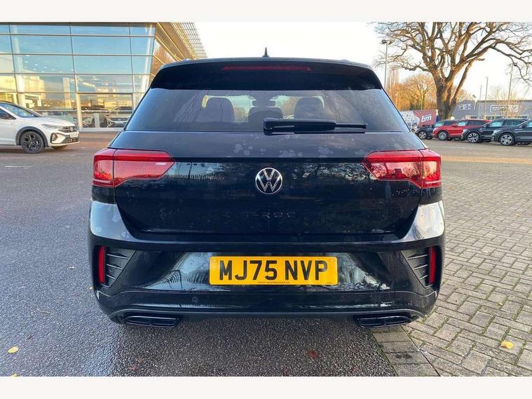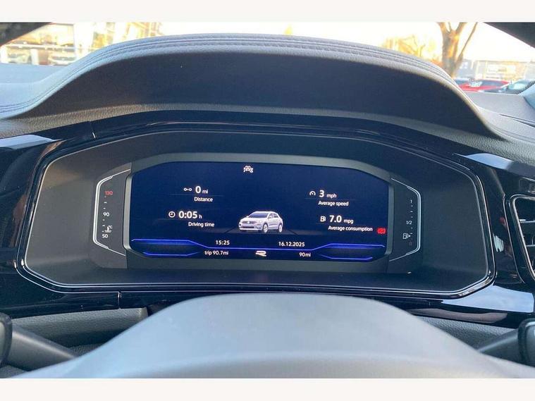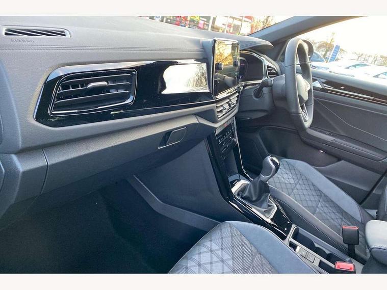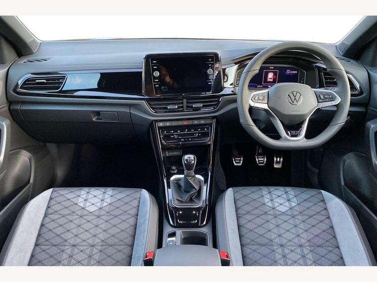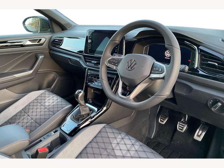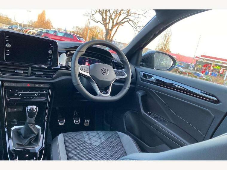 10.25" Digital cockpit pro, Advanced driver attention and drowsiness monitor, Emergency call service, Lane keeping system Lane Assist, Mobile phone interface, Modified key software - reduce switch off time for key status change to Long no motion, Online services, Park assist including front and rear parking sensors, Power assisted speed sensitive steering, Service interval indicator, Tailgate/trunk lid release from outside, Think blue trainer driver tips and journey analysis, Warning sound and light for front seatbelts unfastened, Wireless app connect, Battery regeneration during braking, Rear shock absorption chassis with increased ride height, Start/stop function with battery regeneration, DAB Digital radio, Diversity antenna for FM reception, Front and rear 6 speakers, Music playback - MP3, WMA and AAC files, Premium USB cable in choice of either Apple or Android smartphone compatibility, SD card slot, Simultaneous pairing of 2 compatible mobile devices, Title and cover art display, We Connect and We Connect Plus functionality, Auto dimming interior rear view mirror, Automatic hazard lights activation under emergency braking, Automatic headlight control with LED separate daytime running lights with coming/leaving home function, Dynamic cornering light, Electrically adjustable and heated door mirrors, Extended roof spoiler, Exterior mirrors aspherical on driver side, convex on front passenger side, External USB type C socket and charging sockets, Front windscreen wiper with intermittent wipe and 4 position delay, Heated rear window, Illuminated front grille, IQ LED matrix headlights, LED 3rd brake light, LED rear number plate lights, LED rear tail lights with dynamic turn signal, Light mode for poor weather, rain, fog or snow, Power windows with comfort operation and circuit breaker, R-Line design body coloured bumpers, Rain sensor, Rear exhaust tailpipe, Rear fog light on one side and reversing lights on both sides, Rear side wing doors, Rear wash/wipe with intermittent wipe setting, Remote electrically foldable door mirrors, puddle lights and reverse activated passenger's door mirror, 12V power socket in centre console, 3 rear head restraints, 3 seat bench in 2nd row, 4 load lashing points in luggage compartment, Air care climatronic air conditoning system with active combination filter and 2-zone temperature control, Artvelours cloth upholstery, Black roof lining, Chrome plated radiator grille inserts, air vent surrounds and light switch surrounds, Door and side trim panel with leatherette insert, Drawer under drivers seat, Driver seat height adjust, Driver's seat lumbar support, Front + rear carpet mats, Front centre armrest, Front comfort sports seats, Front cupholders x 2, Front footwell illumination, Front reading light, Front scuff plates with R Line logo, Front seat back storage pockets, Glove compartment door with light, Instrument lighting, white adjustable panel illumination, Interior ambient lighting and surround lighting, Interior light delay, Isofix child seat preparation, Leather gearshift handle, Load-through provision with cup holder when folded down ('Unsplit rear seat bench, split folding backrest, with centre armrest), Luggage compartment lighting, Non-folding front passenger seat backrest, Passenger seat height adjuster, Passenger seat lumbar support, Single front passenger seat, Stainless steel pedals, Storage compartment in left and right luggage area, Storage compartment in rear doors, Storage compartments in driver and front passenger doors, Sunvisors with illuminated vanity mirrors, Variable boot floor, height adjustable and removable, Winter pack without heated windscreen washer jets - T-Roc, 3 point height adj front seatbelts + pretensioners, 3 point seatbelts in outer rear with ECE label, ABS, Child locks on rear doors, City emergency braking and pedestrian monitoring, Driver and front passenger airbag with front passenger airbag deactivation, Driver and front passenger safety-optimised head restraints, Drivers seatbelt reminder, Electronic parking brake, Electronic Stability Control (ESC) inc EDL (Electronic Differential Lock) and ASR (Traction Control), Front and rear passengers curtain airbag system including front side airbags, Front disc brakes, Hill start assist, Predictive pedestrian protection, Rear disc brakes, Two tone horn, Tyre pressure loss indicator, Volkswagen roadside assistance, Tool kit, Trims for alloy wheels, Tyre mobility kit including compressor and sealing foam,