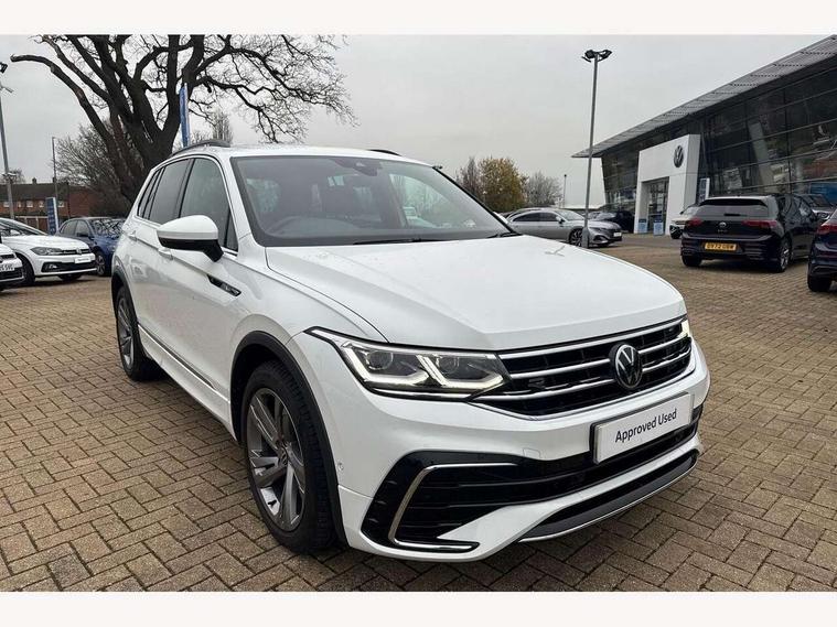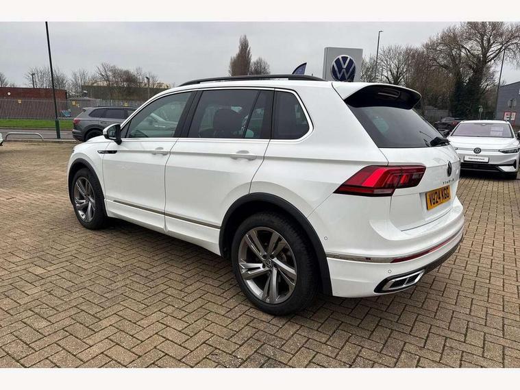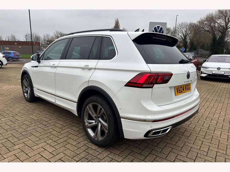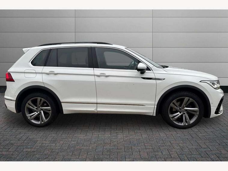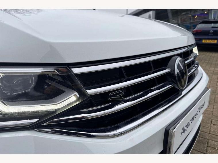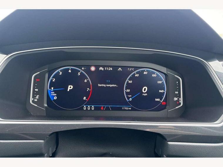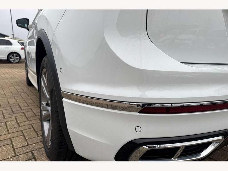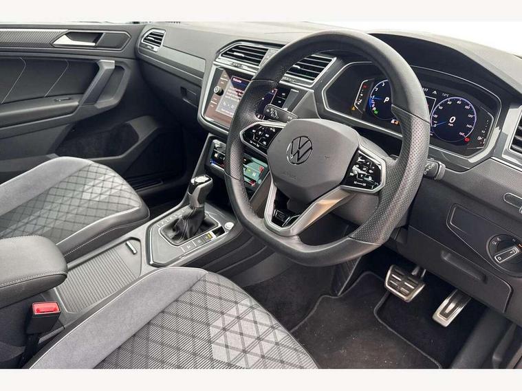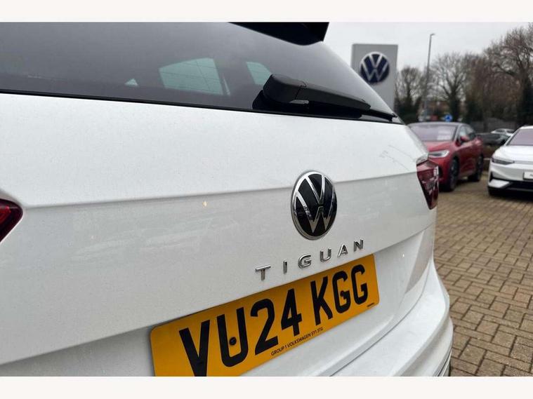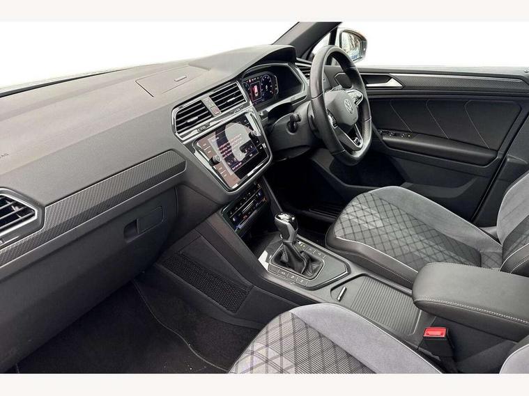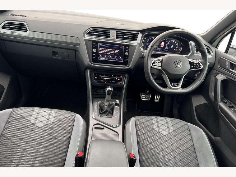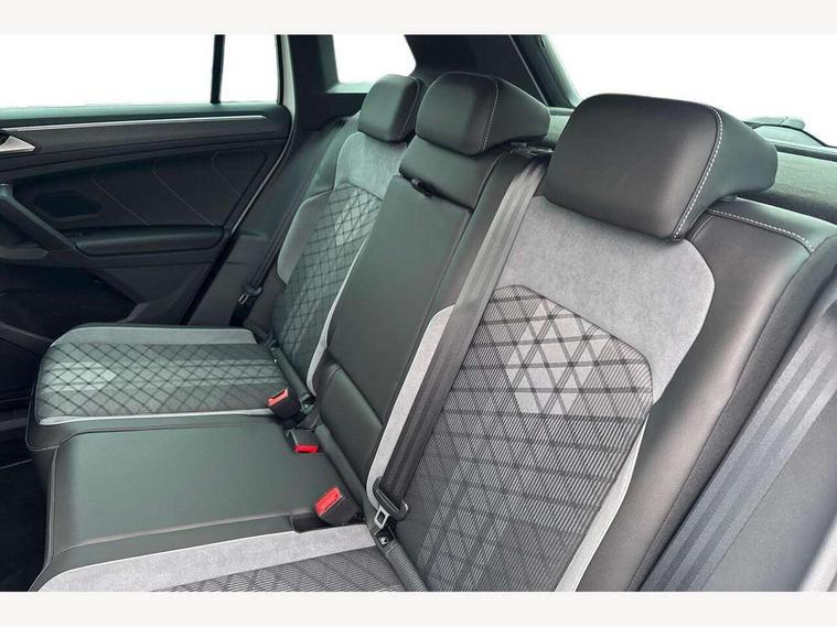 Adaptive cruise control ACC stop and go including speed limiter, App-Connect incl. App-Connect Wireless for Apple CarPlay and Android Auto, Bluetooth phone integration system, Comfort drive travel assist, Digital cockpit pro, Driver alert system, Driver profile selection, Dynamic road sign display, eCall emergency call system, Electromechanical speed sensitive power steering, Emergency assist, Front and rear parking distance sensors, Instrument cluster mph speedometer Great Britain, Lane keeping system Lane Assist, Lights on warning, Multifunction front facing camera, Outside temperature display, Premium multifunction display with multi colour display, Rev counter, Service interval indicator, Speed limit display, Start/stop system with regenerative braking, Trip computer, Warning sound and light for doors and tailgate open, Battery regeneration during braking, Digital radio reception DAB+, Diversity antenna for FM reception, Radio, Auto dimming interior rear view mirror, Automatic headlight control system, Body colored bumpers in R-Line style, Body colored exterior mirror housings, Body colour door handles, Chrome moldings on the side windows, Coming/leaving home lighting function, Dynamic headlight range control, Front and rear electric windows, Heated rear window, High level 3rd brake light, Laminated safety glass windshield, heat and sound insulating, LED rear combination lamps, LED rear number plate lights, License plate carrier in front and rear, Poor weather light and cornering light, Privacy glass for rear side windows and rear window, R Line body kit, R Line side sills, Rain sensor, Rear exhaust tailpipe, Rear fog lamp, Rear side wing doors, Rear spoiler in R style, Rear windscreen washer and wiper with interval delay, Side and rear windows in heat insulating glass, Trailer Stability Programme, Unique R Line badging, Windscreen wipers/ intermittent wipe + 4 position delay, 12V outlet in center console rear and in luggage compartment, 12V outlet in front and tray, 2 LED front reading lights, 2 LED rear reading lights, 3 bench rear seats in 2nd row, 3 rear headrests, Air Care Climatronic 3 zone automatic climate control with enhanced air filter and controls in the rear, Backrest release for left front seat, Black headlining, Brushed stainless steel pedals and footrest, Carpet mats in front and rear with decorative stitching in Gray, Climate control unit rear with touch function, Door and side trim panel in foam film, insert in leatherette, Front footwell illumination, Front scuff plates in aluminum with R-Line logo, Front seats head restraints (x-adjustment), Height/reach adjust steering wheel, Isofix Preparation 2 Rear child seats, Leather gear knob, Rear bench seat asymetrically split folding, longitudinally movable and folding with load-through hatch and center armrest, Remote unlocking for rear seat backrest, Single front passenger seat, Sun visors with illuminated vanity mirrors, Tool kit, Driver assistance pack plus - Tiguan DSG, 3 point seat belt for centre rear seats, 3 point seat belts with seat belt pretensioners for the outer rear seats, Curtain airbags for front and rear passengers, Driver/Front Passenger airbags, Drivers knee airbag, Electronic parking brake with auto hold, Electronic Stability Control with driver steering recommendation, ABS, ASR, EDL, EDTC and trailer stabilization, Front assist with autonomous emergency braking (for Adaptive Cruise Control ACC up to 130 mph), Front disc brakes, Front passenger airbag deactivation, Front side airbags, Height adjustable front 3 point seatbelts + pretensioners, Manual child proof rear door locks, Pedestrian monitoring system, Proactive passenger protection system in combination with front assist, Rear disc brakes, Two tone horn, Warning sound and light for front seat belts if unfastened, Warning triangle, Anti theft alarm system with interior monitoring, backup horn and towing protection, Anti theft wheel bolts, Electronic engine immobiliser, Chrome elements on the mirror switch power window switches and door pulls, Decorative inserts Carbon Gray for dashboard and front door trim panels, Interior door handle in matte chrome,