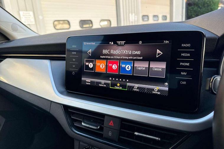 Amundsen satellite navigation with 9.2" glass colour touchscreen display, web radio, voice control and traffic sign recognition, Bluetooth system, E-call, Front assist system, Gesture control, PAS, Service indicator, Speed limiter, Wireless SmartLink for apple car play, android auto and mirrorlink, 8 Speakers, Auxiliary input socket, DAB Digital radio, Body colour bumpers, Body colour door mirrors and handles, Chrome grille surround, Dimming rear view mirror with black surround, Electrically adjustable and heated door mirrors, Front and rear electric windows, Headlight range control, Heated rear window, LED rear lights - low functionality, LED third brake light, Light sensors, Privacy glass, Rain sensor, Rear fog lights, Rear side wing doors, Rear wiper, 12V Accessory socket in centre console, 3 seat bench in 2nd row, Chrome inner door handles, Cloth upholstery, Front head restraints, Glove compartment with illumination, Height adjustable driver and front passenger seats - manual, Ice scraper, Isofix child seat fittings on outer rear seats, ISOFIX on front passenger seat, Manual lumbar support for front seats, Rake/reach adjustable steering wheel, Reading lights, Single front passenger seat, Sun visors with illumination on front passenger, Textile floor mats, Third rear headrest, Top tether for front passenger seat, Umbrella in driver's door, 3x3 point rear seatbelts, Airbags - driver and front passenger, ESP, Front passenger airbag deactivation switch, Front side airbags with curtain airbags, Hill hold control, Manual parking brake, Manual rear child locks, One tone horn, Rear disc brakes, Seatbelt reminder for driver an co-driver, Traction control, Tyre pressure monitor, Anti-theft alarm system with interior monitoring, backup horn, towing protection and remote central locking with SAFE system, Anti-theft wheel bolts, Electronic engine immobilizer, Silver haptic decorative insert on the dashboard with hot stamping in glossy black,