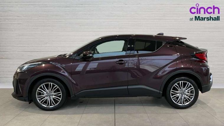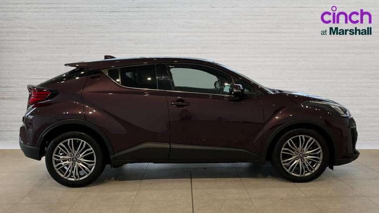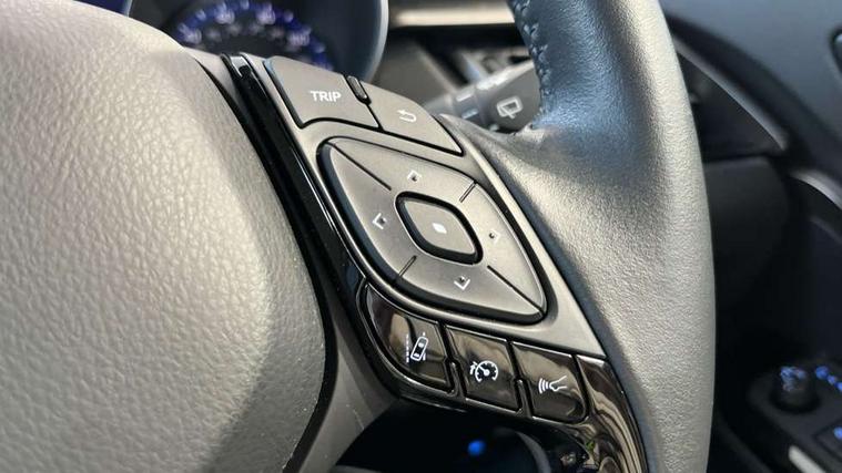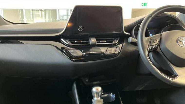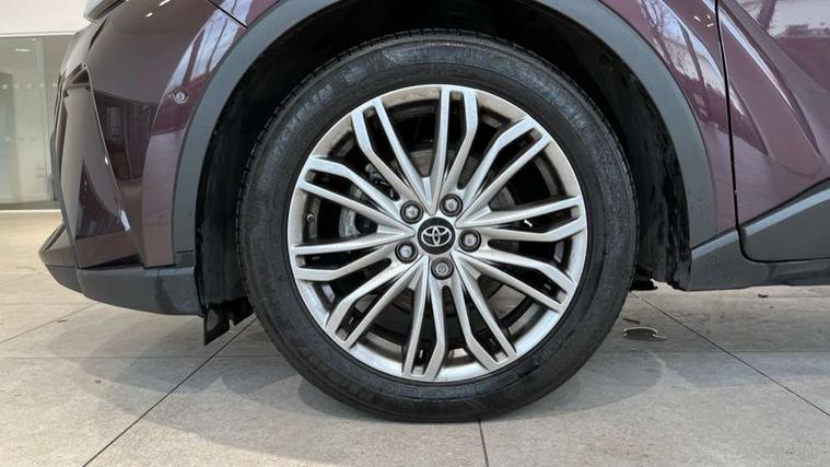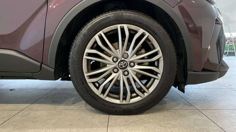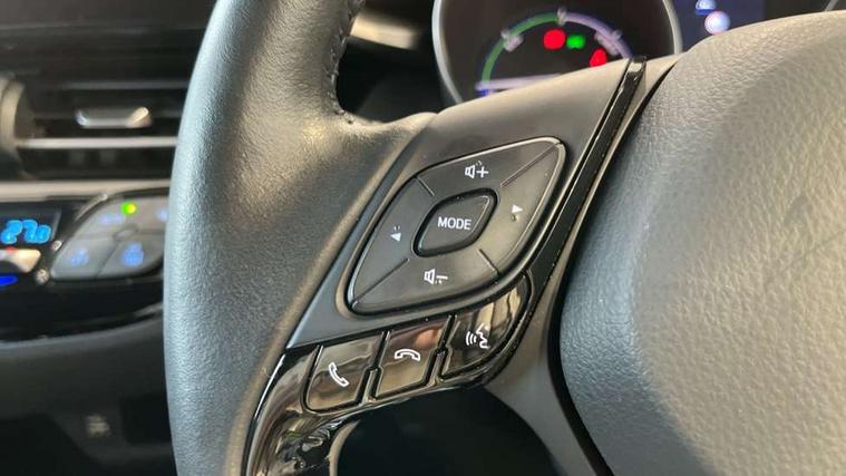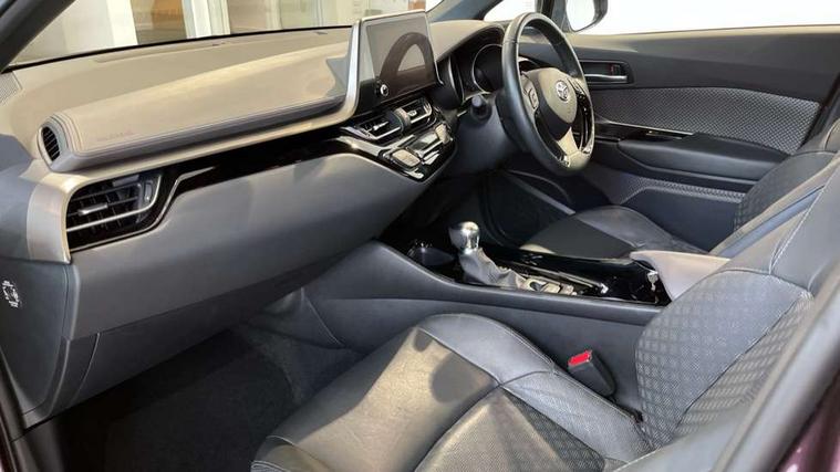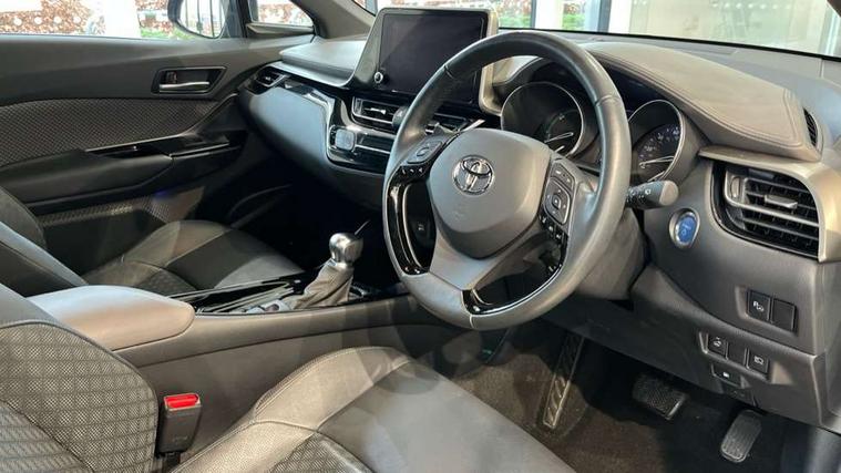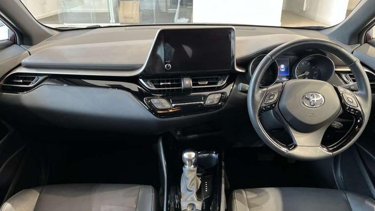 4.2" coloured TFT screen for multi-information display, Adaptive cruise control, Apple car play and Android auto, Bluetooth connectivity, E-call, Electric power steering, Hybrid system indicator, Lane departure alert with steering control, Lane trace assist, Push button tailgate release, Remote boot door release in cabin, Remote boot door release in key, Reversing camera, Road sign assist - RSA, Simple Intelligent parking assist, Smart voice assist, Touch 2 Go navigation system, Trip computer, Voice recognition, Wireless smartphone integration, Vehicle Stability Control (VSC), 6 speakers, AM/FM radio, DAB Radio (Digital Audio Broadcasting), Toyota touch 2 multimedia system with 8" display, USB connector, Wi-fi connectivity, Adaptive front light system, Adaptive LED Headlights, Anti-jam protection on power windows, Auto high beam, Auto up and down function on all power windows, Automatic headlight levelling, Automatic headlights, Automatic headlights cut-off, Black and body coloured rear bumper, Black lower front grille, Black upper front grille, Body colour door handles, Body colour door mirrors, Body colour front spoiler lip, Body coloured front bumper, Boot door release with push button, Electric heated door mirrors, Follow me home headlights, Front and rear power windows, Headlight cut off reminder, Honeycomb lower front grille, LED daytime running lights, LED fog lights, LED front light guide, LED High mounted stop light, LED rear brake lights, LED rear combination lights, Noise reduction layer on front windows and windscreen, Power adjustable door mirrors, Privacy glass, Rain sensor, Rear sequential indicators, Rear side wing doors, Rear spoiler, Rear tailgate, Rear window defogger, Rear window wiper, Shark fin antenna, UV-filter on driver and passenger windows, UV-filter on rear windows, Variable front intermittent wipers, 12v power outlet - front, 3 rear headrests, 3 seat bench in 2nd row, 3 spoke leather steering wheel, 60/40 split folding 2nd row rear seats, Adjustable rear headrests, Adjustable speed limiter switch on steering wheel, Assist grips front and centre pillar, Audio and telephone switches on steering wheel, Black front door assist grips, Blue ambient lighting on front cup holders, Blue ambient lighting on front doors, Boot light, Chrome interior door handles, Driver and front passenger personal light, Driver and front passenger Whiplash Injury Lessening seats, Driver and passenger seatback pockets, Dual zone automatic air conditioning, Floor mats, Front cupholders, Front head restraints, Front sports seats, Glovebox with internal light, Hard tonneau cover, Heated driver and front passenger seats, Heated steering wheel, Hooks for luggage holding net, Humidifying Nanoe air purifier, Illuminated entry system, Isofix attachments on outer rear seats, Leather gearshift, Light on driver sun visor, Light on passenger sun visor, Manual telescopic steering wheel, Manual tilt steering wheel, Microphone on front personal light, Mirror on driver sun visor, Mirror on passenger sun visor, Multimedia switches on steering wheel, Pollen filter, Power adjustable lumbar support on driver seat, Power tilting cushion on driver seat, Shopping bag hooks, Single front passenger seat, Slow opening on lower glovebox, Voice recognition switch on steering wheel, Leather pack - C-HR, Tech with parking sensor pack - C-HR, 16 Disk front wheel brake, 3x3 point rear seatbelts, ABS+EBD+Brake assist, Electronic parking brake, Front and rear seatbelt reminder, Front passenger airbag on/off switch, Hill start assist control (HAC), Pre collision system with pedestrian detection, Pre-tensioners and force limiters, Rear door child safety locks, SRS Airbags - Driver + Front passenger, front side, front and rear curtain and driver's knee airbags, Toyota safety sense, Tyre pressure monitoring system, Tyre pressure warning system, Acoustic vehicle alert system (AVAS), Glass-breaking alarm sensors, Immobiliser, Intrusion alarm, Intrusion sensor, Motion sensor alarm, Power door locks, Power passenger window lock, Remote central locking, Black lower dashboard, Dark brown upper dashboard, Piano black console, Silver deco line on upper dashboard, Tyre repair kit,