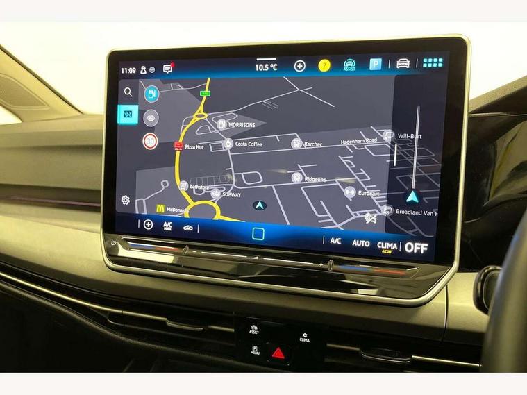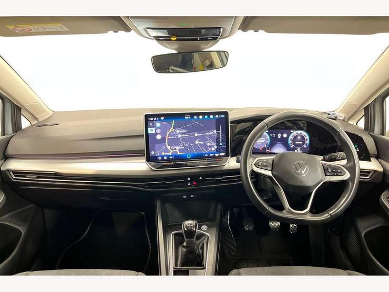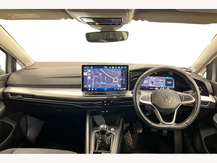 Activated carbon canister, Adaptive cruise control (ACC), Advanced driver attention and drowsiness monitor, Dynamic road sign display, E-Sim card for online connectivity, eCall emergency call system, Multi-color Digital cockpit pro, selection of different info profile possible, Multifunction front facing camera for distance control, Navigation system, Oncoming vehicle braking when turning including swerve support, Preparation for light assist system, Speed limiter, Speedo, rev counter, electronic odometer, trip, service interval display, exterior temperature and fuel gauge, Voice enhancer and voice control, Warning signal and warning light for front and rear seatbelts not fastened, We connect plus preparation, We connect preparation, Wireless app connect, Petrol Particulate Filter, Start-stop system with battery regeneration (recuperation - energy recovery during braking), XDS electronic differential lock for improved traction and handling, 2 USB C ports in front, 2 USB charging sockets on the centre console in the rear charging capacity upto 45W, Comfort telephony + wireless charging, without wireless aerial connection, Digital radio reception (DAB), Diversity antenna for FM reception, Gaming platform via car app, Infotainment system with 12.9" display, Mobile phone interface with inductive charging feature, 3rd brake light, Auto dimming rear view mirror, Auto headlights, Automatic headlamp activation with Coming home and Leaving home feature, Body colour door handles, Body colour door mirrors, Exterior ambient lighting with illuminated door handles, Exterior mirrors convex on the left and aspherical on the right, Front and rear electric windows, Heat insulating windshield made of laminated glass, LED daytime running lights, Rain sensor, Rear exhaust tailpipe, Rear fog light on one side and reversing lights on both sides, Rear side wing doors, Rear tinted glass 65% light absorbing from B pillar backwards, Rear windscreen washer and wiper with interval delay, Remote electrically foldable door mirrors, puddle lights and reverse activated passenger's door mirror, Standard bumpers, Welcome light with surround lighting, 12V socket in front centre console, 12V socket in luggage compartment, 3 rear head restraints, 3 seat bench in 2nd row, Chrome plated radiator grille inserts, air vent surrounds and light switch surrounds, Front centre armrest, Front head restraints, ISOFIX anchors for child seats on outer rear bench seats and on front passanger seat compatible for i-Size, Leather gearshift handle, Luggage compartment lighting, Rear cupholder and loadthough, Single front passenger seat, Soul black instrument panel, Split folding backrest with centre armrest and unsplit rear seat bench, Standard pedal cluster, Storm grey roof lining, Sun visors with illuminated vanity mirrors, Parking and comfort pack - Golf Estate/Hatchback, 3 point height adj front seatbelts + pretensioners, 3 rear three point seatbelts, ABS, Autonomous emergency braking front assist with pedestrian and cyclist monitoring, Child locks on rear doors, Driver and front passenger airbag with front passenger airbag deactivation, Electronic parking brake with auto hold, ESC (Electronic Stability Control), Extended pedestrian protection measures, Rear disc brakes, Two tone horn, Tyre pressure loss indicator, Volkswagen roadside assistance, Alarm with interior protection, Anti theft wheel bolts, Keyless start with SAFE lock, Preparation for alcohol interlock, Nature cross brushed decorative inserts for dashboard and front door panels,