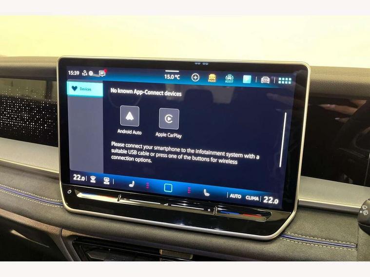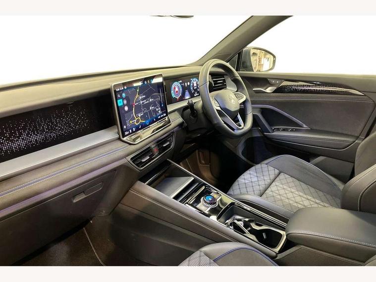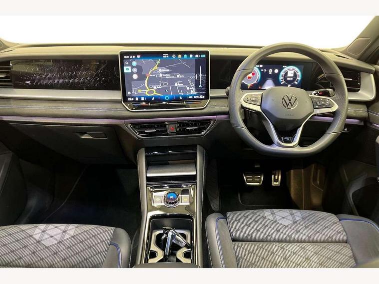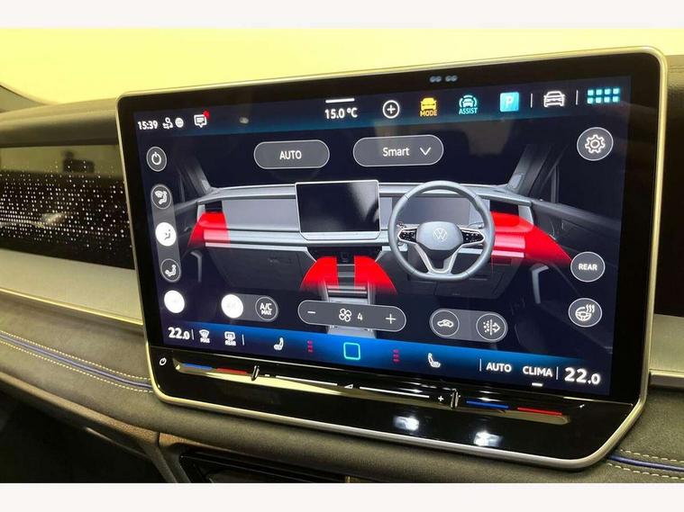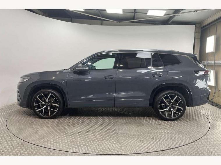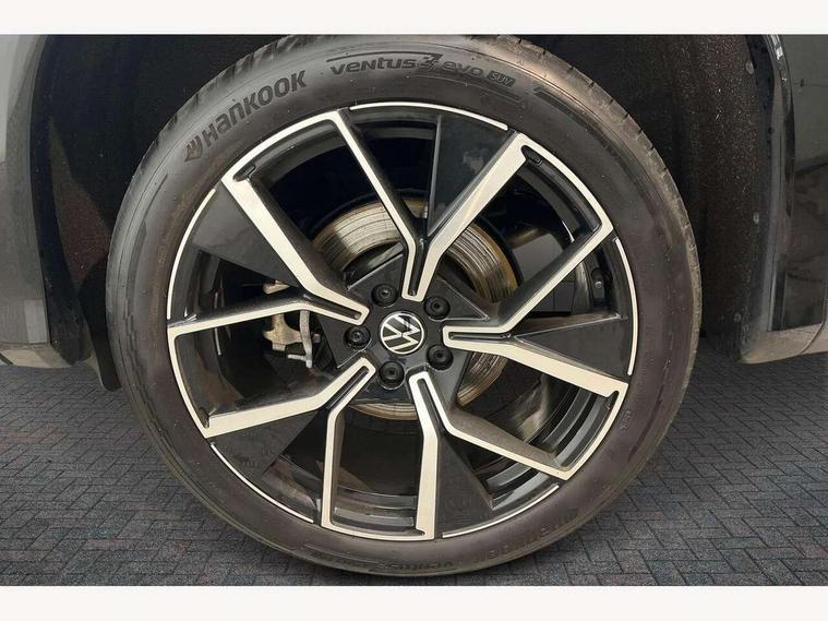 Adaptive cruise control (ACC), Digital Cockpit Pro - 10.25" high resolution dash display screen with customisable menus and information, Driver alert system, Driver attention monitoring system, Dynamic road sign display, E-Sim card for online connectivity, eCall emergency call system, Lane change system, Side assist, Rear traffic alert and Exit warning system, Multifunction front facing camera, Oncoming vehicle braking when turning including swerve support, Start/stop system with regenerative braking, Voice activation spoken voice commands for telephone and navigation system, Warning signal and warning light for front and rear seatbelts not fastened, Wireless App-Connect, Front wheel drive, Digital radio reception (DAB), Diversity antenna for FM reception, Air intake with Chrome trim, Auto dimming interior rear view mirror, Automatic headlight control system, Body colour door handles, Chrome moldings on the side windows, Coming/leaving home lighting function, Dynamic headlight range control with dynamic cornering light, Exterior mirrors convex on the left and aspherical on the right, Heat insulating glass in side and rear windows, Illuminated Volkswagen logo rear with animation, Laminated safety glass windshield, heat insulating, LED 3rd brake light, LED separate signature day time running light, Puddle lights, Rain sensor windscreen wipers, Rear fog light on one side, reversing light on both sides, Rear side wing doors, Rear wiper, Reverse activated passenger's door mirror, Surround lighting with welcome light, Volkswagen logo in front, illuminated lighting animation with wake up/goodbye scenario and illuminated door handles, 10 colour interior ambient lighting, 12V outlet in center console rear and in luggage compartment, 3 rear headrests, 3 rear seat bench in 2nd row, backrest split folding with centre armrest and 2 seats in 3rd row of seats, Black roof lining, Brushed stainless steel pedals, Carpet mats, front and rear, Centre console with illuminated storage compartment with sliding cover and two drinks holders, Chrome elements on the mirror switch and power window switches and door pulls, Door and side trim panel insert in Art velour, Flat luggage compartment floor, Front centre armrest, Front scuff plates in aluminium, ISOFIX anchors for child seats on outer rear seats and front passenger seat compatible with i-Size, Mechanical rear seat release, Power adjustable lumbar support in front, Single front passenger seat, Sports comfort seats in front, Sun visors with illuminated vanity mirrors, 3 Point seat belts in front with pretensioners, 3 point seatbelts in outer rear with ECE label, Autonomous emergency braking front assist with pedestrian and cyclist monitoring, Driver and front passenger airbag with front passenger airbag deactivation, Electronic parking brake with auto hold, First aid kit with warning triangle and safety vest, Front and rear curtain airbags, Front and rear side airbags, Front centre airbag, Front disc brakes, Hill start assist, Rear disc brakes, Two tone horn, Decorative material set R-Line, Interior door handle in matte chrome,