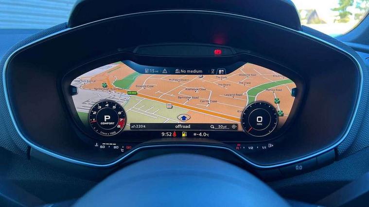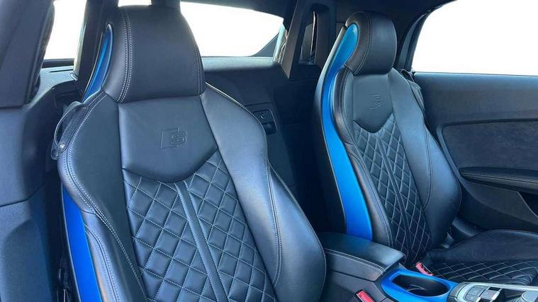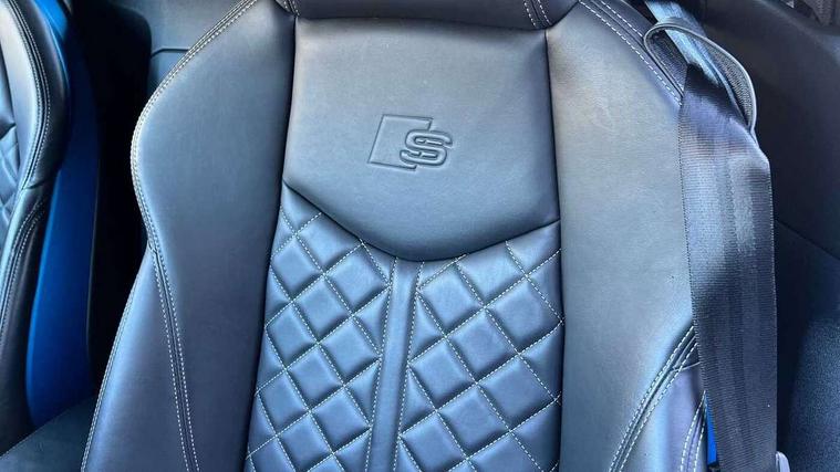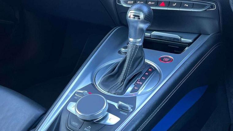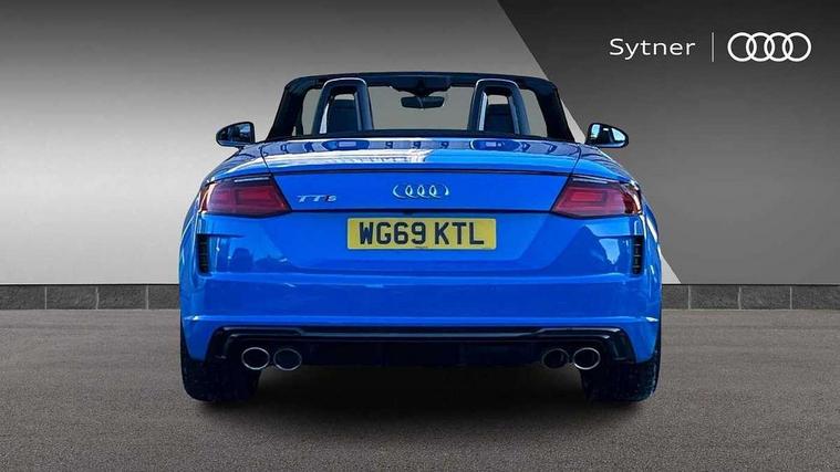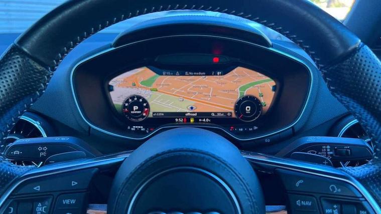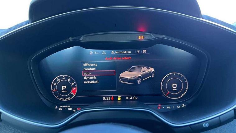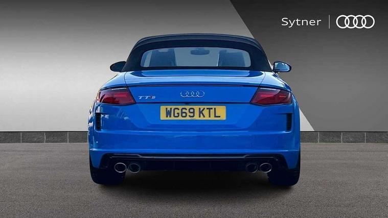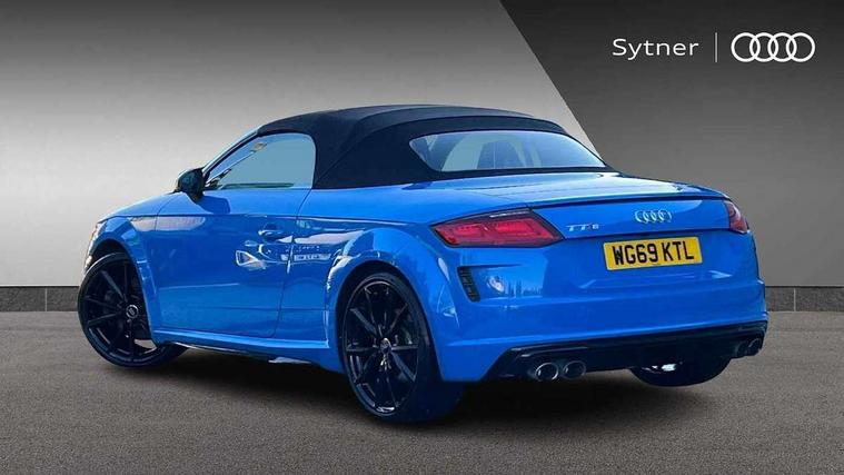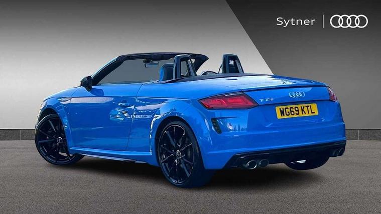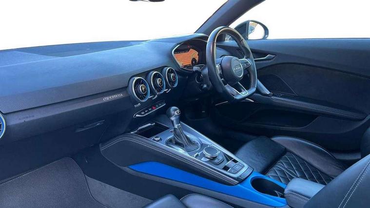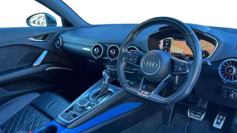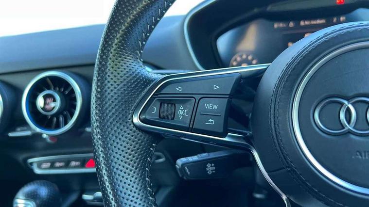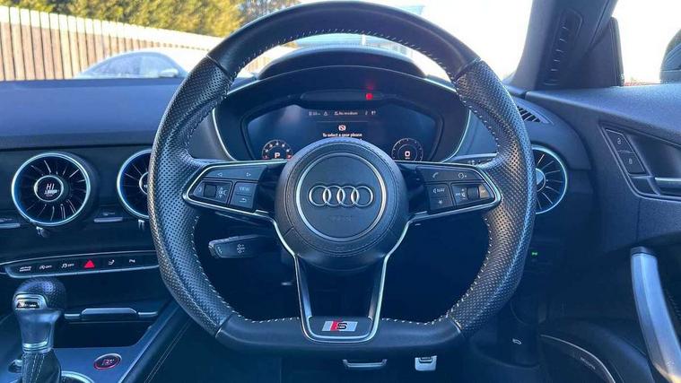 Audi active lane assist, Audi connect, Audi drive select with 4 Pre configured modes, Audi phone box, Audi Virtual Cockpit with sport gauge, Cruise control + speed limiter, MMI Navigation plus, MMI touch panel, Mobile phone preparation with bluetooth interface, Progressive power assisted steering, Seat belt microphone, Service interval indicator, Start/Stop system with energy recuperation, TP memo, Audi magnetic ride, TTS suspension, AM/FM radio, Audi music interface, Bluetooth audio streaming, DAB Digital radio, MMI Radio with CD player and SD/XC card slot, Audi Beam uses LEDs to project the Audi Sport logo, Auto dimming rear view mirror, Auto headlight range control, Black chrome tailpipe, Black door mirrors, Dynamic rear indicators, Electric folding door mirrors, Electric front windows, Fabric hood - Black, Fully automatic acoustic hood, Green tinted heat insulating glass, Headlight wash system, LED daytime running lights, LED headlights with LED rear lights + dynamic rear indicators, Light and rain sensors, Platinum grey rear diffuser, S body styling, Sunband for windscreen, Wind deflector, 12V socket, 3 spoke flat bottomed high multi-function leather sport steering wheel with gearshift paddles, 4 way electric lumbar support for driver and front passenger, Black headlining, Chrome slate grey interior trim, Deluxe auto air conditioning with integrated digital display, Door sill trims with aluminium inlay and TTS logo, Extended aluminium look with stainless steel pedals, Front centre armrest, Heated front seats, Height adjustable driver's seat, Height adjustable front head restraints, Height/reach adjust steering wheel, Interior elements in quartz anthracite, ISOFIX child seat mounting for front passenger seat with airbag deactivation, Perforated leather gearknob, Tool kit, Black styling pack - TT, Leather pack - TTS, LED interior light pack - TT/TT RS, Non smoking pack - TT/TT RS, 3 point front seat belts, ABS, ASR traction control, Brake energy regeneration, Curtain airbags, Driver and front passenger airbag with front passenger airbag deactivation, EDL traction control, Electromechanical parking brake, ESP, First aid kit, Front side airbags, Hill hold assist, Roll bar in glossy black, Seatbelt warning, Tyre pressure warning, Warning triangle, Anti theft alarm, Anti theft wheel bolts, Immobiliser, Keyless Go, Remote central locking, Matt brushed aluminium inlays, Tyre repair kit,