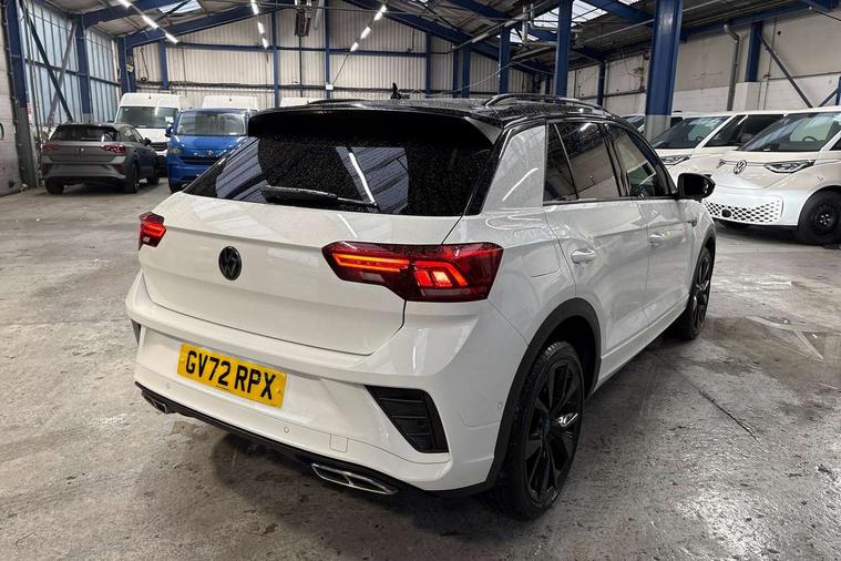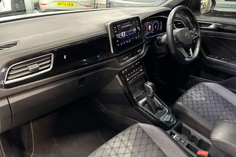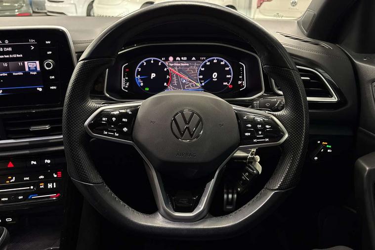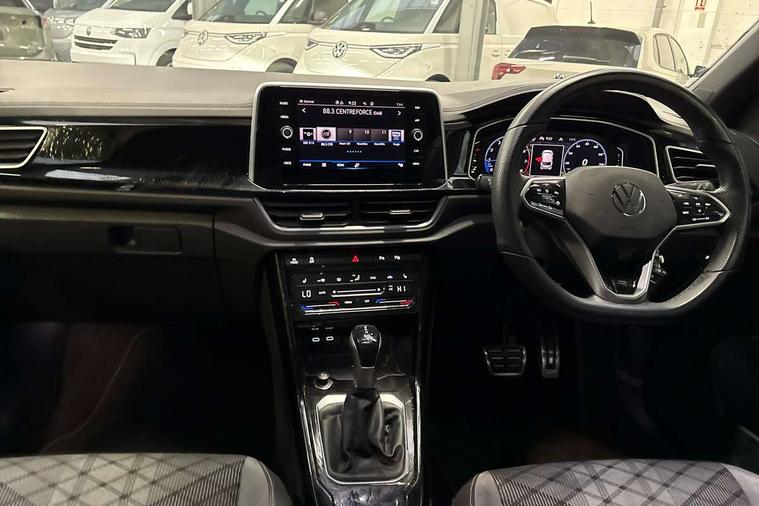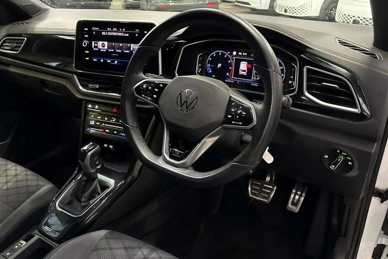 10.25" Digital cockpit pro, Bluetooth mobile phone interface, Driver alert system with fatigue detection, Driver tips and journey analysis, Emergency call service, Lane keeping system Lane Assist, Modified key software - reduce switch off time for key status change to Long no motion, Online services, Park assist including front and rear parking sensors, Service interval indicator, Tailgate/trunk lid release from outside, Think blue trainer driver tips and journey analysis, Warning sound and light for front seatbelts unfastened, Wireless app connect, Battery regeneration during braking, Start/stop function with battery regeneration, Diversity antenna for FM reception, Front and rear 6 speakers, Music playback - MP3, WMA and AAC files, Premium USB cable in choice of either Apple or Android smartphone compatibility, SD card slot, Simultaneous pairing of 2 compatible mobile devices, Title and cover art display, We Connect and We Connect Plus functionality, 3rd brake light, Auto dimming interior rear view mirror, Automatic hazard lights activation under emergency braking, Automatic headlight control with LED separate daytime running lights with coming/leaving home function, Extended roof spoiler, Exterior mirrors aspherical on driver side, convex on front passenger side, External USB type C socket and charging sockets, Front windscreen wiper with intermittent wipe and 4 position delay, Heated rear window, LED Plus headlamps, LED rear combination lamps, LED rear number plate lights, LED tail lamp rear comination lamps, Power windows with comfort operation and circuit breaker, R-Line design body coloured bumpers, Rain sensor, Rear exhaust tailpipe, Rear fog light on one side and reversing lights on both sides, Rear side wing doors, Rear wash/wipe with intermittent wipe setting, Remote electrically foldable door mirrors, puddle lights and reverse activated passenger's door mirror, 12V power socket in centre console, 3 rear head restraints, 3 seat bench in 2nd row, 4 load lashing points in luggage compartment, Air care climatronic air conditoning system with active combination filter and 2-zone temperature control, Black roof lining, Chrome plated radiator grille inserts, air vent surrounds and light switch surrounds, Door and side trim panel with leatherette insert, Drawer under drivers seat, Front + rear carpet mats, Front centre armrest, Front cupholders x 2, Front footwell illumination, Front reading light, Front scuff plates with R logo, Instrument lighting, white adjustable panel illumination, Interior ambient lighting and surround lighting, Interior light delay, Isofix child seat preparation, Leather gearshift handle, Load-through provision with cup holder when folded down ('Unsplit rear seat bench, split folding backrest, with centre armrest), Luggage compartment lighting, Single front passenger seat, Stainless steel pedals, Storage compartment in left and right luggage area, Storage compartment in rear doors, Storage compartments in driver and front passenger doors, Sunvisors with illuminated vanity mirrors, Variable boot floor, height adjustable and removable, Driver assistance pack without proactive passenger protection - T-Roc, 3 point height adj front seatbelts + pretensioners, 3 point seatbelts in outer rear with ECE label, ABS, Child locks on rear doors, Driver and front passenger airbag with front passenger airbag deactivation, Driver and front passenger safety-optimised head restraints, Drivers seatbelt reminder, Electronic parking brake, Electronic Stability Control (ESC) inc EDL (Electronic Differential Lock) and ASR (Traction Control), Front and rear passengers curtain airbag system including front side airbags, Front assist with city emergency braking and pedestrian monitoring, Front seat side impact airbags, Hill start assist, Predictive pedestrian protection, Rear disc brakes, Single tone horn, Tyre pressure loss indicator, Volkswagen roadside assistance, Alarm with interior protection, Anti-theft alarm system with interior monitoring, backup horn, and towing protection, Remote central locking with SAFELOCK, radio remote control with 2 remote control folding keys, Trims for alloy wheels,