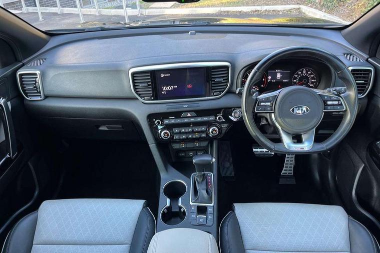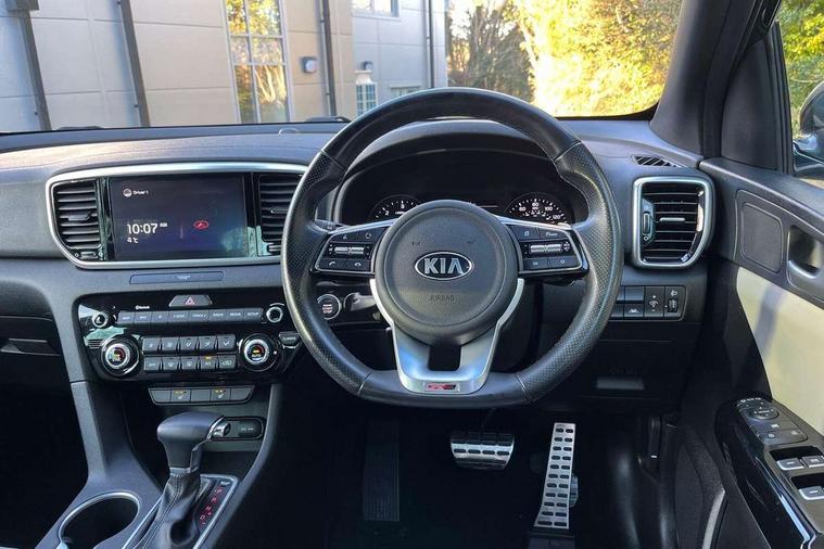 4.2" supervision colour cluster display, 8" touchscreen satellite navigation with European mapping and traffic messaging channel, Android auto with voice control, Apple car play with voice control, Cruise control + speed limiter, Drive mode selector, Driver attention warning, Emergency stop signalling system, Front parking sensor, Kia connected services featuring TomTom live, Lane keep assist, Rear parking sensor, Reversing camera, Speed limit information, Speed sensitive power steering, Telematics system with UVO connect services, Trip computer, Windscreen washer level indicator, Intelligent Stop and Go, 6 speaker audio system, Bluetooth audio streaming, DAB Radio with MP3, Rear USB port, Steering wheel mounted audio controls, USB/iPod/auxiliary input connections, All round electric windows with drivers auto up/down function, Auto dimming rear view mirror, Automatic lighting control, Automatic window defogger, Black wheel arch body mouldings and side sills with dark chrome insert, Body colour door handles with chrome inserts, Body colour door mirrors, Chrome window surround, Dark chrome front bumper insert, Dark chrome front grille surround, Dual exhaust pipes, EcoDynamics + Badge, Electrically adjustable/heated/folding door mirrors with LED indicators, Front wiper de-icer, High beam assist, High gloss black blade mesh radiator grille, LED Bi-Function headlights, LED daytime running lights, LED ice cube front fog lights, LED rear lights, Privacy glass - Rear windows and tailgate, Rain sensing front wipers, Rear spoiler, Rear wiper, Roof rails, Shark fin antenna, Silver painted front and rear skid plates, Tinted glass, Trailer stability assist, Welcome and follow-me home light functionality, Wide view drivers door mirror, 12V power in front and rear centre console, 3 x passenger assist grips, 60/40 split folding rear seat, Air filter, All-round height adjustable headrests, Aluminium door scuff plates, Aluminium pedals, Black headlining, Centre cabin light, Centre console storage box, Chrome boot sill guard, D-Shaped sports leather steering wheel and perforated inserts with GT-Line logo, Driver and front passenger side sunvisors with illuminated vanity mirrors, Driver's seat manual height adjust, Drivers seat power lumbar support, Dual zone automatic air conditioning, Front and rear door storage, Front cabin LED map light with sunglasses case, Front door courtesy reflectors, Front seat and rear pockets, Front/rear centre armrests, Gear shift indicator, Glovebox illumination, Heated front and outer rear seats, Interior door lock/unlock function, ISOFIX Child seat top tethers and anchor fixings, Leather trimmed door armrests, Leather trimmed gearshift, Luggage area light, Luggage area load cover, Luggage net hooks, Paddle shift controls, Rear centre armrest with cupholder, Rear coat hooks, Satin chrome interior door handles, Tilt/telescopic adjustable steering wheel, Two tone leather upholstery, Ventilation ducts to rear compartment, Active front headrests, All round 3-point seatbelts, Anti-lock braking system with electronic brakeforce distribution, Dual front side airbags, Electronic parking brake, Electronic stability control with downhill brake control, Front passenger airbag cut-off switch, Front seatbelt pretensioners + load limiters, Height adjustable front seatbelts, Hill start assist control (HAC), Impact sensing auto door unlocking, Rear door child safety locks, Traction control, Twin curtain airbags with roll over sensor, Twin front airbags, Tyre pressure monitoring system, Advanced anti-theft system including immobiliser and alarm, Door deadlocks, Engine Start/Stop Button with Smart Entry System, Locking wheel nuts, Speed sensitive auto door locking, Visible vehicle identification number, High gloss black centre fascia, 19" alloy Wheels B-type, Tyre mobility kit,
