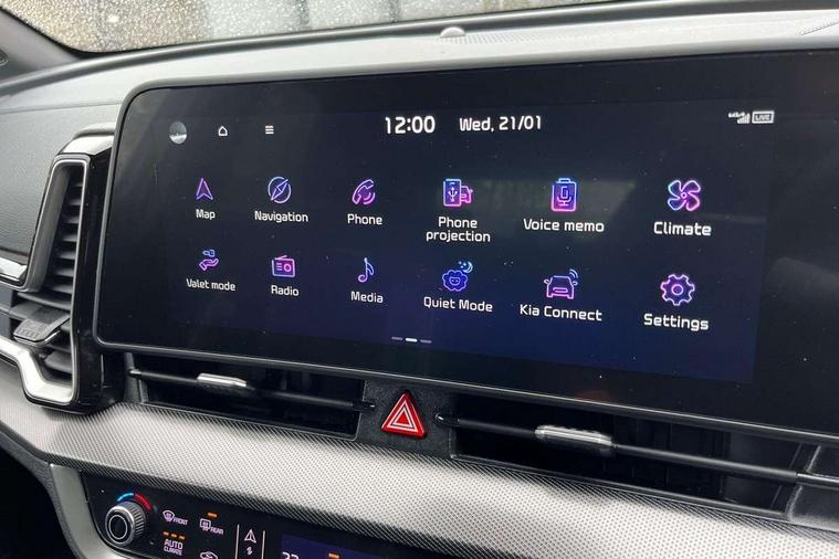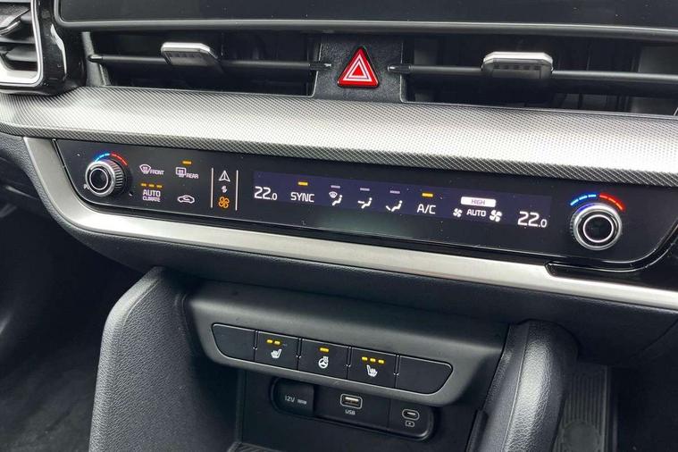 12.3" Display with navigation, 4.2" supervision colour cluster display, Apple car play/Android Auto with voice control, Cruise control + speed limiter, Drive mode selector, E-call, Forward collision avoidance assist (FCA) - city/pedestrian/cyclist/junction covering, Front and rear parking sensors, Intelligent speed limit assist, Kia Connect (UVO), Lane Following Assist (LFA), Lane keep assist, Low washer fluid warning, Rear view monitor, Reversing camera system integrated into centre fascia screen, Speed sensitive power steering, Trip computer, Windscreen washer level indicator, Intelligent Stop and Go, 6 speaker audio system, Bluetooth audio streaming, DAB Radio with MP3, Rear USB port, Steering wheel mounted audio controls, USB C type charging ports on centre console, USB C type charging ports on side of front seats, USB port for connection of a media device, All round electric windows with drivers and front passenger auto up/down function, Automatic headlight control system, Automatic window defogger, Backlite glass heated with timer, Black bumpers, Body colour and black bumper with silver accents, Body colour exterior door handles, Body colour radiator upper garnish and door garnish, Electrically adjustable/heated/folding door mirrors with LED indicators, Front and rear chrome skid plates, Gloss black door mirrors, Gloss black radiator grille, Gloss black side sill and wheel arch body mouldings, Glossy black roof rack, High beam assist, Interior electrochromic mirror, LED daytime running lights, LED front fog lamps, LED headlamps (low and high beam - MFR type), LED High mounted stop light, LED rear combination lamp, Rain sensing wipers with aero blades, Rear fog lamp, Rear privacy glass, Rear side wing doors, Rear spoiler, Rear wiper, Satin finished beltline, Silver coloured inserts to bumpers, Tinted rear glass, Trailer stability assist, 12V power socket in front centre fascia and luggage compartment, 2nd row personal lamps, 3 seat bench in 2nd row, 3 x passenger assist grips, 40/20/40 split folding rear seat, All-round height adjustable headrests, Black headlining, Centre console storage box, Cupholders in rear armrest, D-Shaped sports leather steering wheel and perforated inserts with GT-Line logo, Door courtesy lamps, Drink holder at centre armrest, Driver and front passenger side sunvisors with illuminated vanity mirrors, Driver's seat manual height adjust, Drivers seat power lumbar support, Front and rear door storage, Front seat and rear pockets, Front/rear centre armrests, Gear shift indicator, Glovebox illumination, Heated front seats, Heated steering wheel, Interior door lock/unlock function, ISOFIX Child seat top tethers and anchor fixings outer rear seats, Luggage area light, Luggage area load cover, Luggage net with hooks, Metal paint interior door handles, Overhead console lamp, Rear cabin light, Rear coat hooks, Single front passenger seat, Sports pedals, Suede leather upholstery, Three zone climate control, Tilt/telescopic adjustable steering wheel, Ventilation ducts to rear compartment, Active front headrests, All round 3-point seatbelts, Anti-lock braking system (ABS), Dual front side airbags, Dual horn, Electronic parking brake, Electronic stability control with downhill brake control, Front passenger airbag cut-off switch, Front seatbelt pretensioners + load limiters, Height adjustable front seatbelts, Hill start assist control (HAC), Impact sensing auto door unlocking, Multi collision brake assist, Rear door child safety locks, Rear seat alert system, Traction control, Twin curtain airbags, Twin front airbags, Tyre pressure monitoring system, Advanced anti-theft system including immobiliser and alarm, Door deadlocks, Engine Start/Stop Button with Smart Entry System, Locking wheel nuts, Speed sensitive auto door locking, Visible vehicle identification number, Aluminium pattern finish centre fascia and door garnish, 19" GT-Line alloy wheels, Tyre mobility kit,