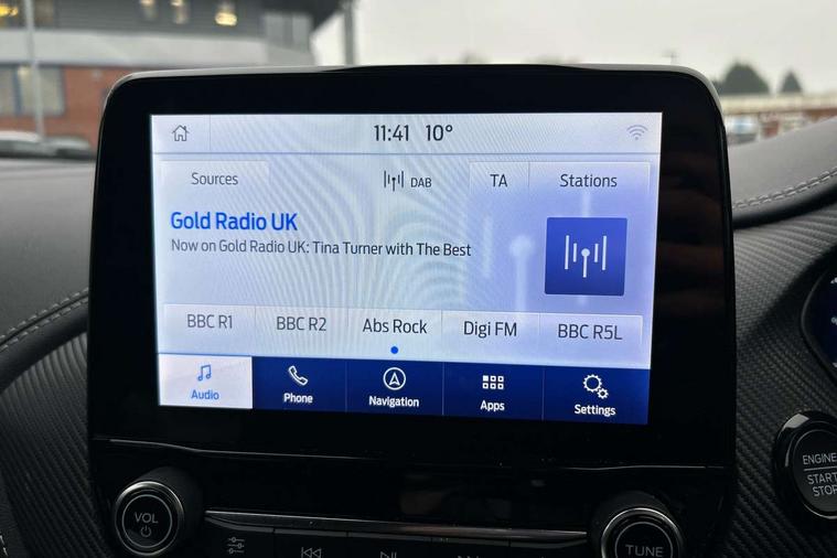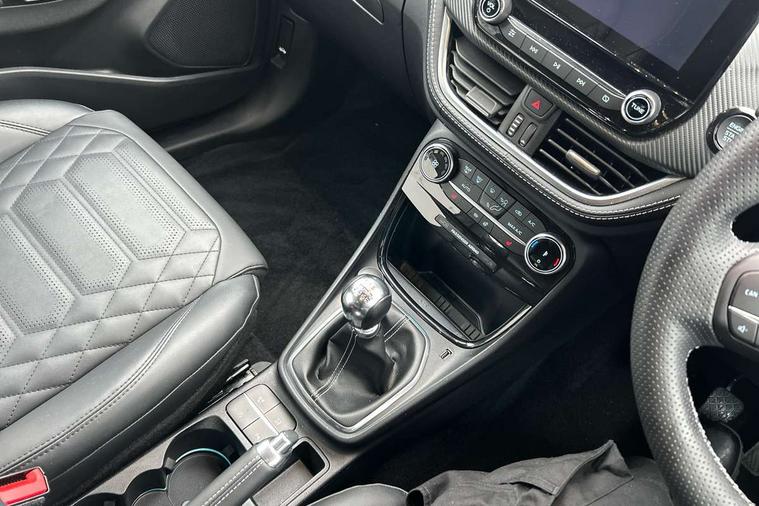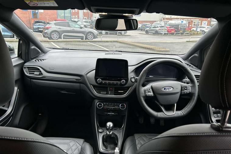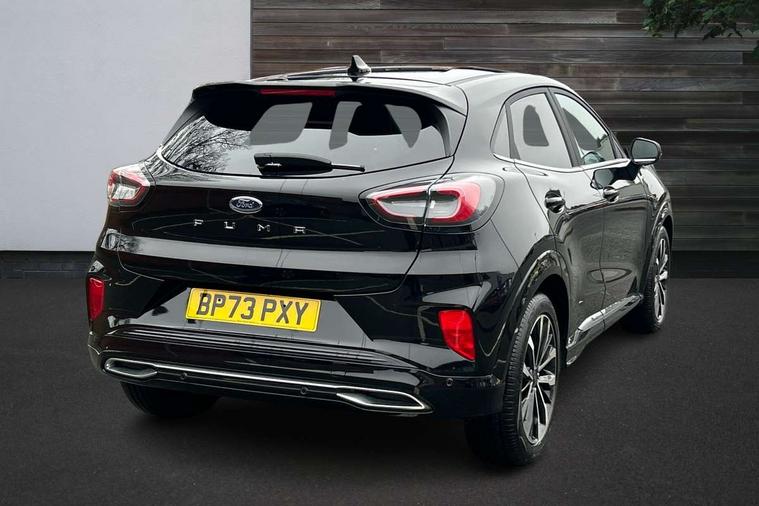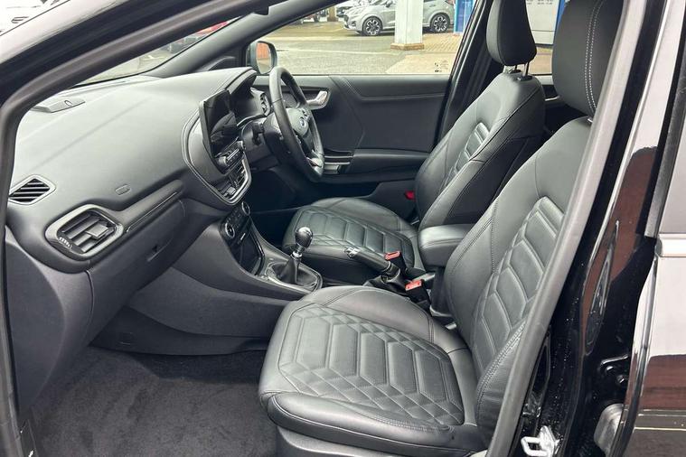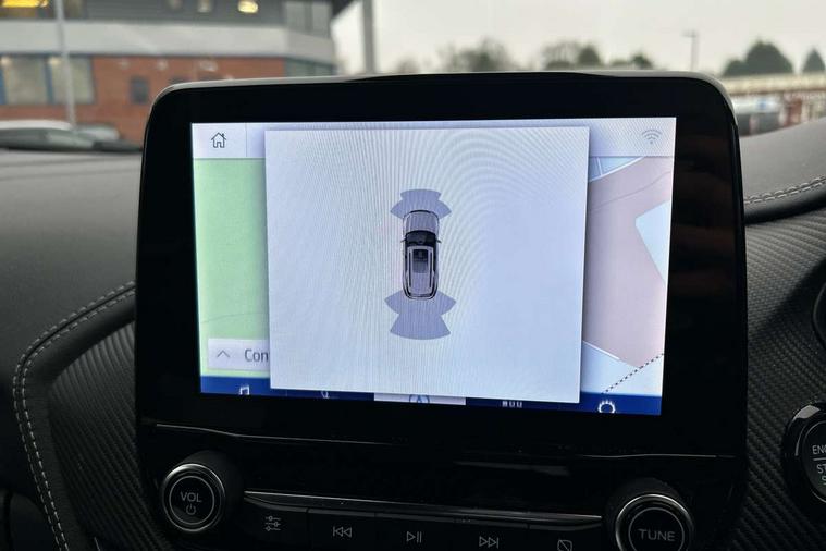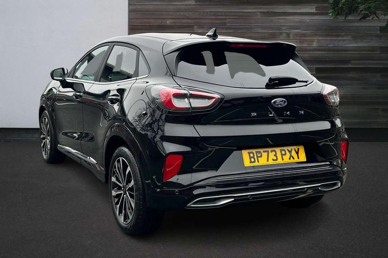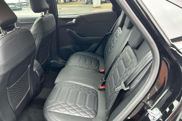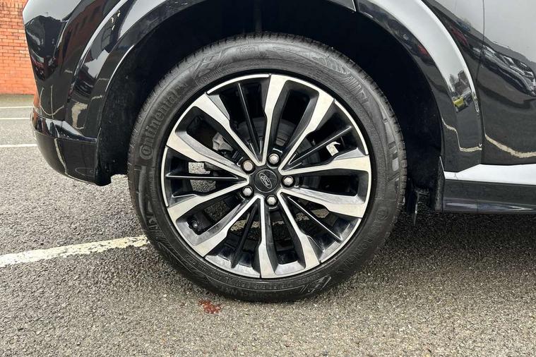 Driver impairment monitor, Emergency call service, Ford easy fuel, Front and rear parking sensors, Full digital 12.3" instrument cluster, Lane keeping aid with lane departure warning, Power assist steering, Selectable drive modes(Normal, Eco, Sport, Slippery and Trail), Speed sign recognition, Sport suspension, Automatic headlights with auto high beam, Automatic rain sensing wipers, Bodyside chrome styling, Fixed LED signature headlamps, Front fog lamps, Gloss black with chrome elements on front and rear bumpers, High chrome waistline, LED daytime running lights, LED rear lamps, Power foldable heated door mirrors with puddle lamps and puma logo protection, Privacy glass to side rear windows and tailgate glass, Quickclear heated windscreen, Rear side wing doors, Rear wiper, Third brake light, Vignale body styling kit with unique grille, 3 seat bench in 2nd row, Centre console with armrest and stowage, Ford megabox extended bootspace, Front and rear floor mats, Front and rear head restraints, Manual 4 way driver seat adjust with lumbar adjustment and massage function, Manual 4 way passenger seat adjust with lumbar adjustment and massage function, Premium sensico leather upholstery with metal grey stitching, Premium sensico perforated flat bottomed steering with metal grey stitching, Premium sensico wrapped instrument cluster, Single front passenger seat, Wireless charging pad with electronic air temperature control (EATC), B&O Premium Audio system + Ford SYNC 3 navigation pack - Puma, Winter pack - Puma, 3 rear seatbelts, Child safety lock, Electronic stability control (ESC) and hill start assist, Pedestrian/cyclist detection & post-collision braking, Pre collision assist system, Tyre pressure monitoring system (TPMS), Keyless entry and power start button, Thatcham alarm, Carbon look interior deco spears,