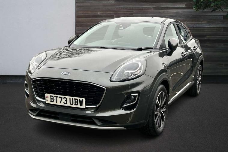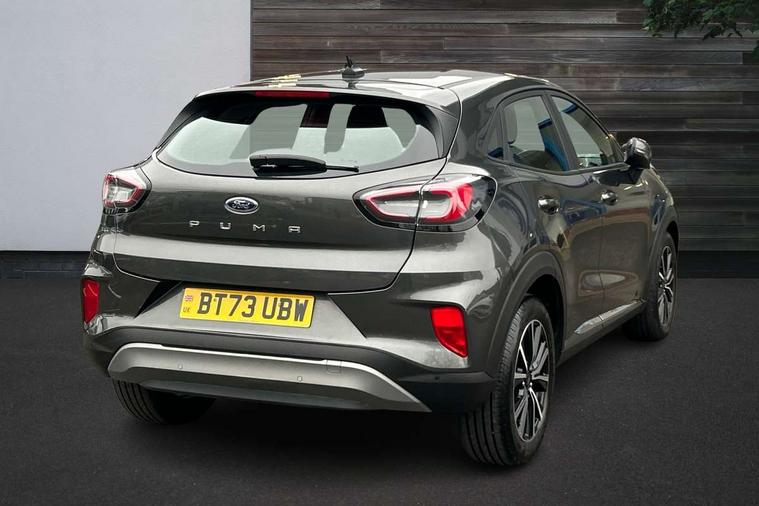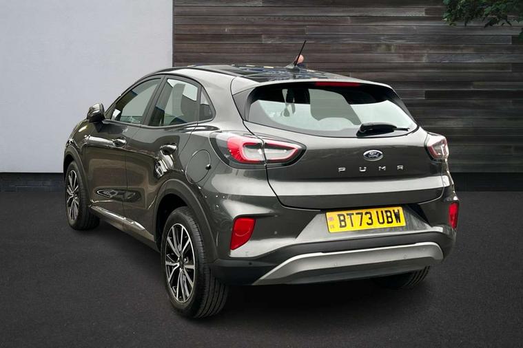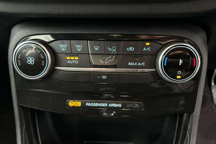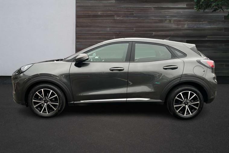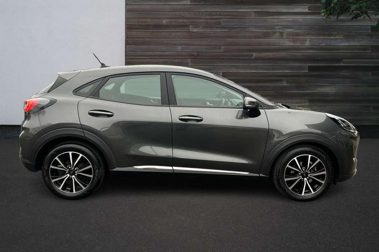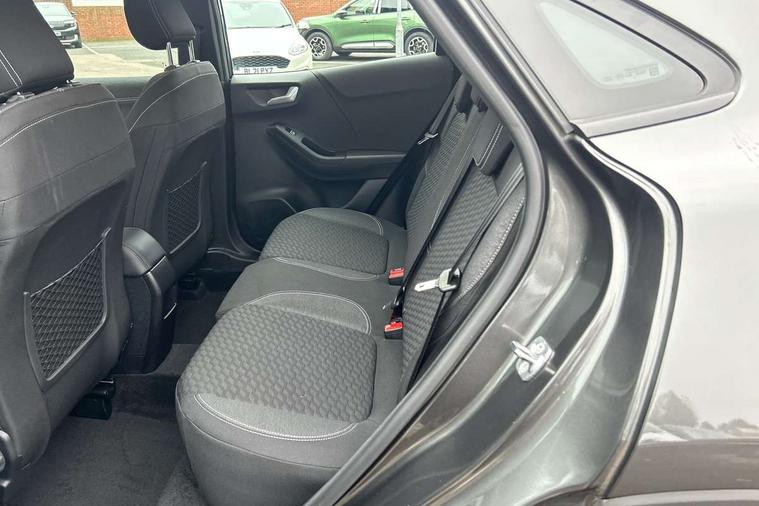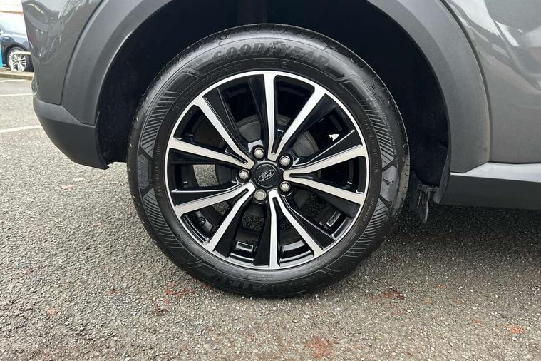 Driver impairment monitor, Emergency call service, Ford easy fuel, Lane keeping aid with lane departure warning, Power assist steering, Power start button, Rear parking sensor, Selectable drive modes(Normal, sport, Eco, trail, slippery), Speed sign recognition, Standard suspension, Automatic headlights with auto high beam, Automatic rain sensing wipers, LED rear lamps, Power foldable heated door mirrors with puddle lamps, Projector headlamps with LED day time running lights and front fog lamps, Quickclear heated windscreen, Rear side wing doors, Rear wiper, Third brake light, 3 seat bench in 2nd row, Centre console with armrest and stowage, Electronic automatic temperature control (EATC), Ford megabox extended bootspace, Front and rear head restraints, Front floor mats, Manual 2 way passenger seat adjustment, Manual 4 way driver seat adjust with lumbar adjustment, Sensico leather steering wheel/gear knob/handbrake, Single front passenger seat, Titanium cloth upholstery, Ford SYNC 3 navigation pack - Puma, 3 rear seatbelts, Child safety lock, Electronic stability control (ESC) and hill start assist, Pedestrian/cyclist detection & post-collision braking, Pre collision assist system, Tyre pressure monitoring system (TPMS), Thatcham alarm, 17" 10 spoke absolute black machined finish alloy wheel,