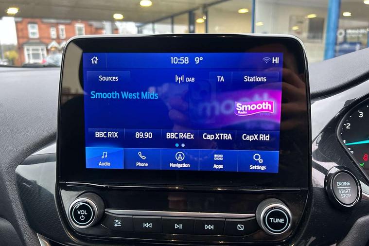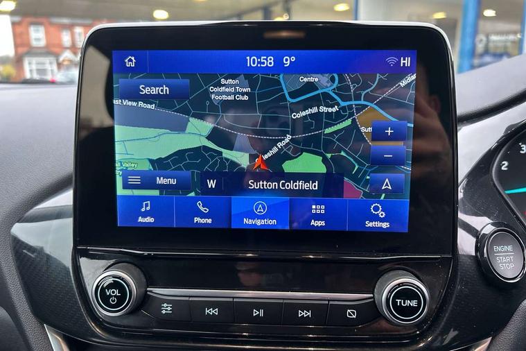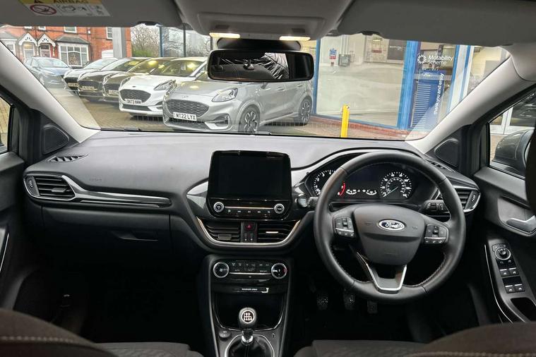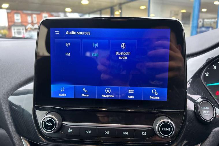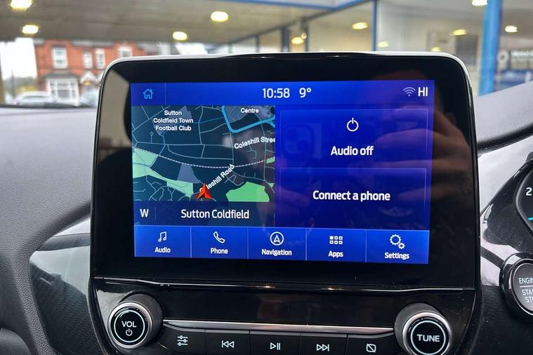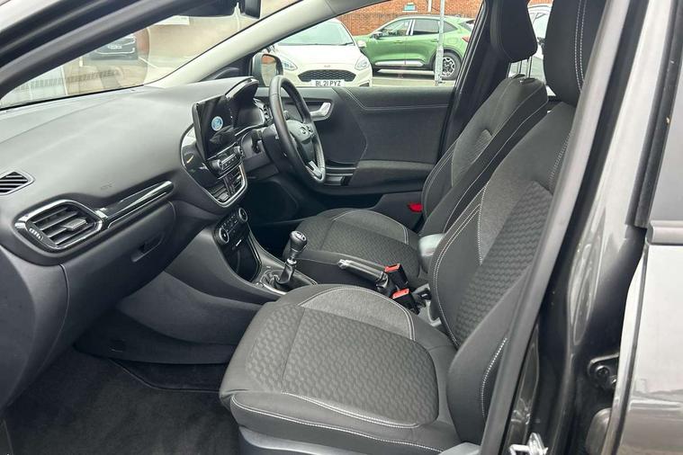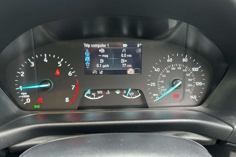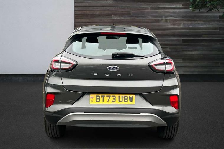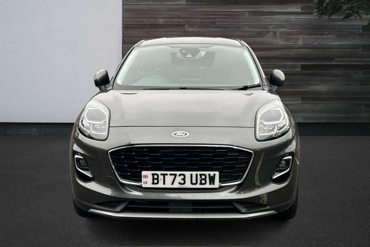 Driver impairment monitor, Emergency call service, Ford easy fuel, Lane keeping aid with lane departure warning, Power assist steering, Power start button, Rear parking sensor, Selectable drive modes(Normal, sport, Eco, trail, slippery), Speed sign recognition, Standard suspension, Automatic headlights with auto high beam, Automatic rain sensing wipers, LED rear lamps, Power foldable heated door mirrors with puddle lamps, Projector headlamps with LED day time running lights and front fog lamps, Quickclear heated windscreen, Rear side wing doors, Rear wiper, Third brake light, 3 seat bench in 2nd row, Centre console with armrest and stowage, Electronic automatic temperature control (EATC), Ford megabox extended bootspace, Front and rear head restraints, Front floor mats, Manual 2 way passenger seat adjustment, Manual 4 way driver seat adjust with lumbar adjustment, Sensico leather steering wheel/gear knob/handbrake, Single front passenger seat, Titanium cloth upholstery, Ford SYNC 3 navigation pack - Puma, 3 rear seatbelts, Child safety lock, Electronic stability control (ESC) and hill start assist, Pedestrian/cyclist detection & post-collision braking, Pre collision assist system, Tyre pressure monitoring system (TPMS), Thatcham alarm, 17" 10 spoke absolute black machined finish alloy wheel,