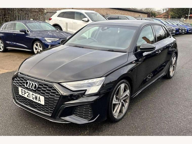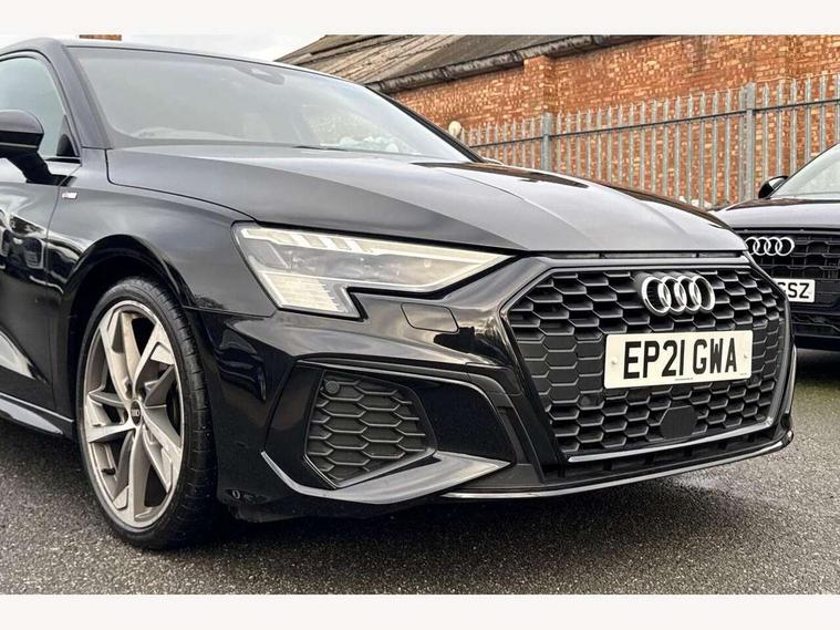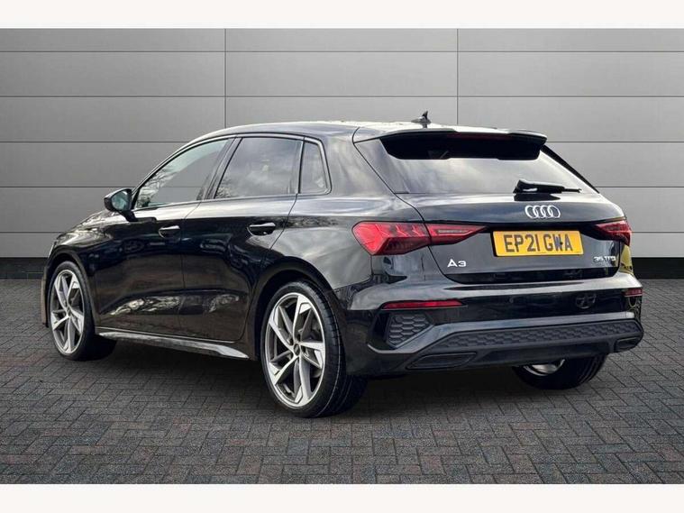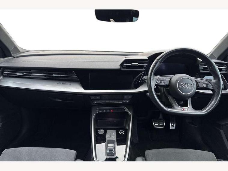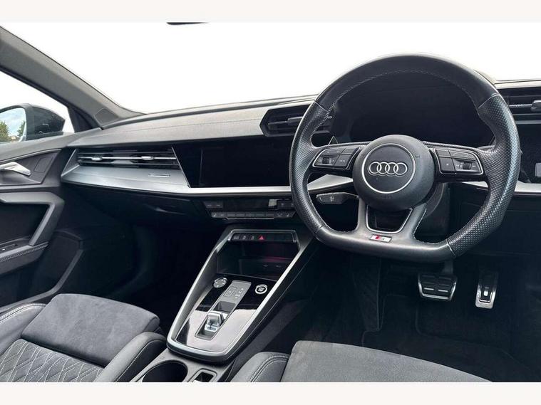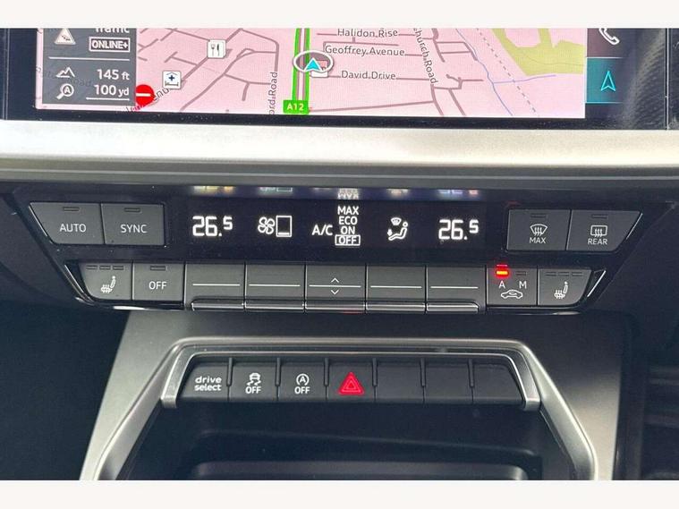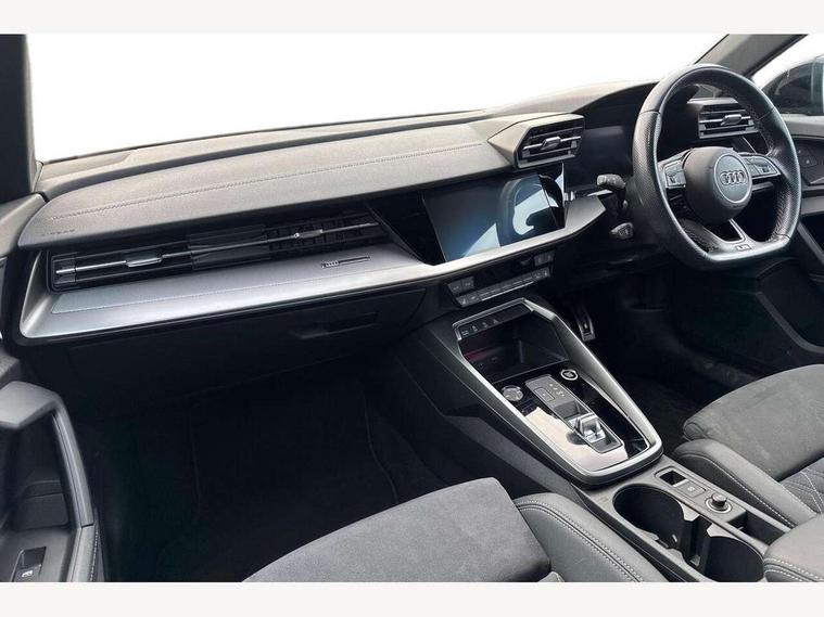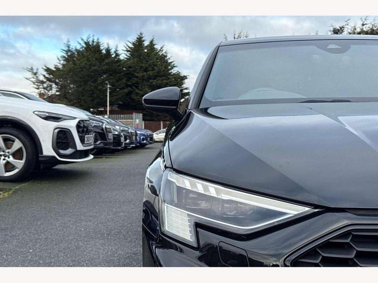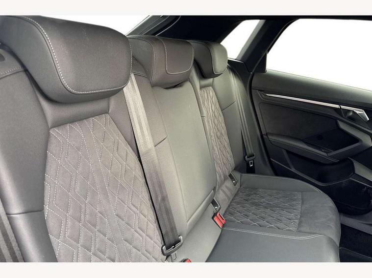 Audi connect emergency call and service, Audi drive select (Auto, Comfort, Dynamic, Efficiency and Individual), Audi smartphone interface, Audi virtual cockpit plus - 12.3" full HD resolution dynamic digital instrument cluster, Automatic start/stop system with recuperation, Bluetooth interface, Collision avoidance assistant, Electromechanical power speed sensitive steering, Lane departure warning system, MMI Navigation Plus with high resolution 10.1" colour touch screen display, Service indicator, Trip computer, Voice control system with natural language interaction, Sports suspension, 2xUSB-C connection with data and charging functions, 6 passive loudspeakers, DAB Digital radio, Acoustic glass windscreen, Audi matrix LED headlights with LED rear lights + dynamic front and rear indicators, Auto dimming frameless rear view mirror, Body colour front spoiler blade, Electrically adj heated/folding + automatically dimming exterior mirrors + automatic kerb side function for passenger side exterior mirror, Front electric windows, Headlight washers, Illuminated aluminium inserts front door sills with S logo, Integrated LED indicators in door mirrors, LED daytime running lights, Light and rain sensors, Privacy glass - dark tinted rear window, rear door and side windows, Rear diffuser in grained matt black, Rear electric windows, Rear side air outlets in grained matt black, Rear wiper, S roof spoiler, 12V socket and storage compartment in front centre console, 4 way electrically adjustable lumbar support for driver and front passenger, 40/20/40 split folding rear seat bench with cupholder, Black cloth headlining, Dual zone electronic climate control, Electrically adjustable front seats for driver's side, Front and rear centre armrest in leather, Front and rear headrests, Front/rear floor mats, Heated front seats, Height and reach adjustable steering wheel, Interior lighting - glove compartment light and right hand side, Luggage compartment floor covering, Seat side bolsters, Stainless steel pedals and front footrest, Aluminium interior elements pack - A3 Sportback, Black styling pack - A3 Sportback, Dinamica microfibre/mono.pur 550 artificial leather pack - A3 Sportback, Extended ambient lighting pack - A3 Sportback, LED interior lighting pack - A3 Sportback Edition 1/Vorsprung, 3x3 point rear seat belts, Driver and front passenger airbag with passenger airbag deactivation, Electronic Stabilisation Control (ESC) including ABS, ASR and EDL, First aid kit with warning triangle and 2 safety vests, Front side airbags with head airbags and interaction airbag, Hill hold assist, Pre-sense front with pedestrian and cyclist detection, Seatbelt monitoring, Tyre pressure loss indicator, Anti theft alarm, Anti-theft wheel bolts, Electronically operated child lock, Immobiliser, Remote control central locking, Accent surfaces in the dashboard and centre console in platinum grey silk effect paint finish, Dark spectrum aluminium inlays, 19" 5 arm trapezoid design alloy wheels in titanium matt grey with diamond cut finish,
