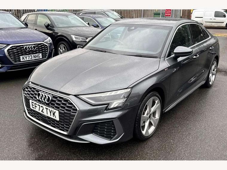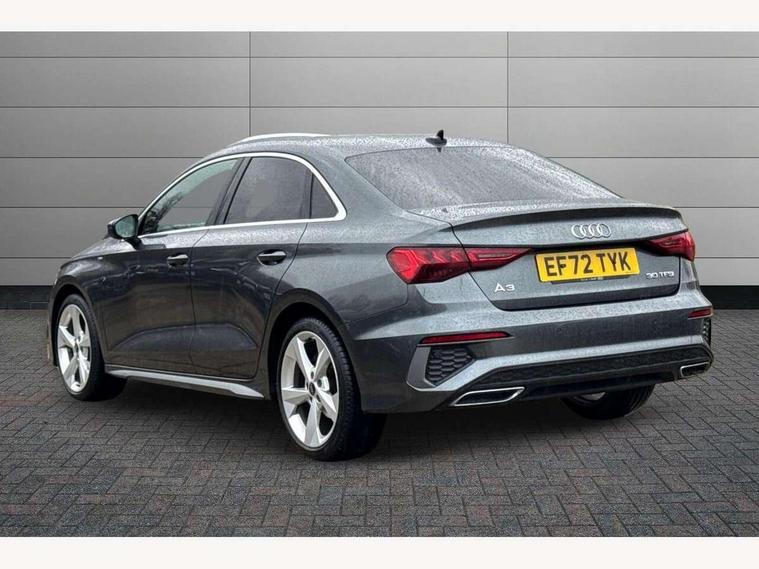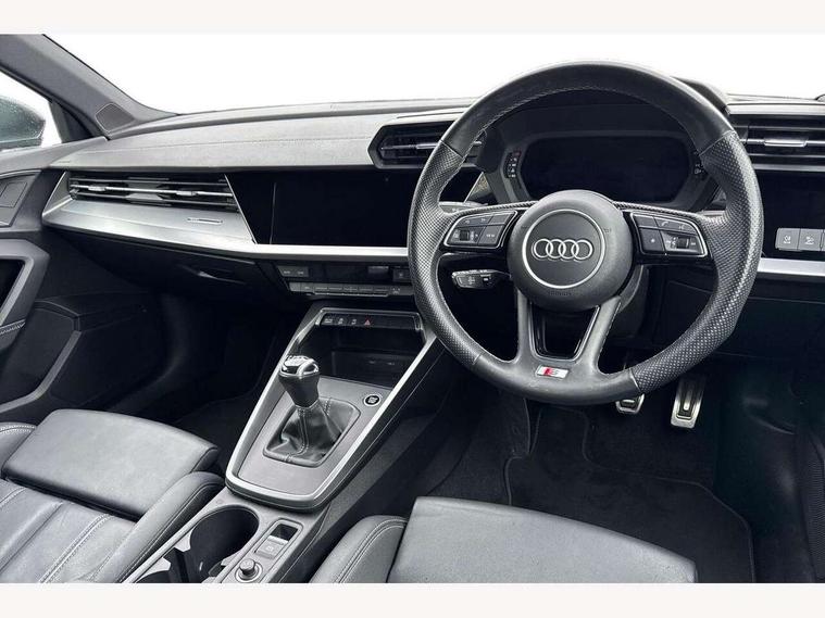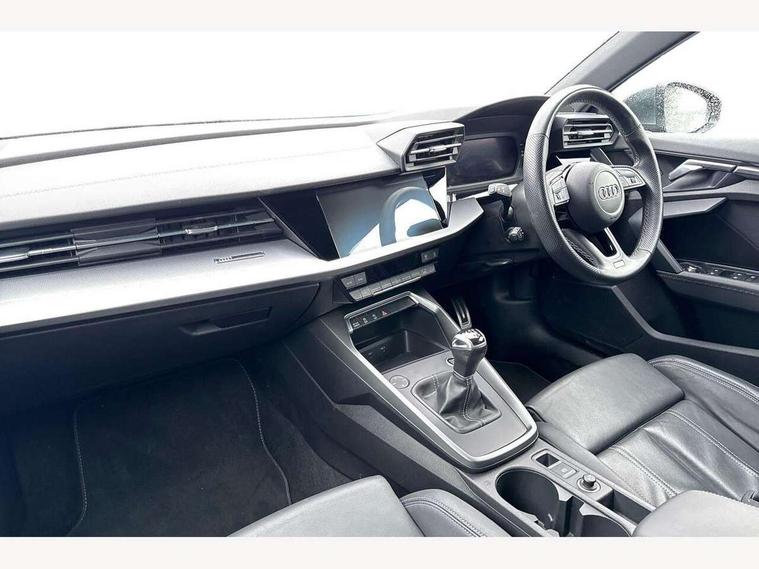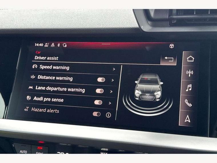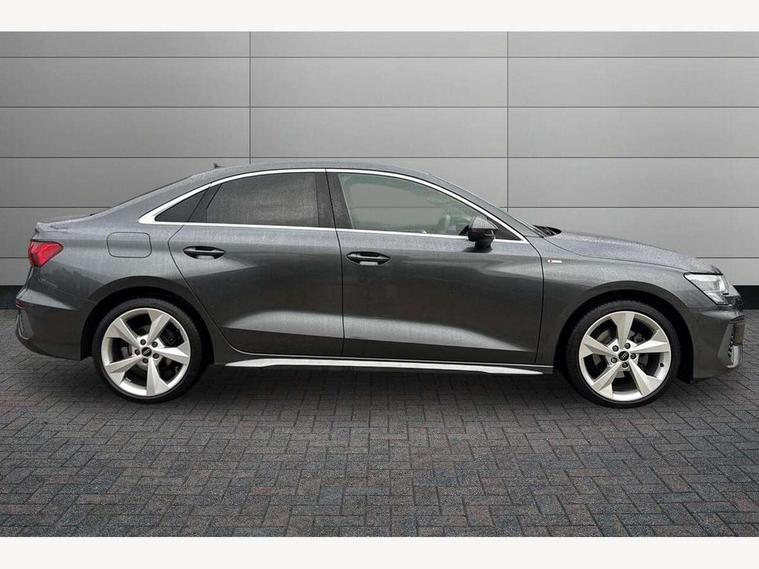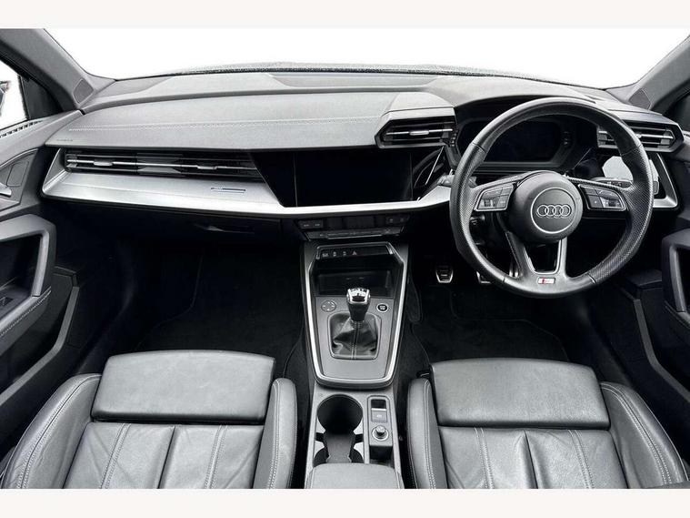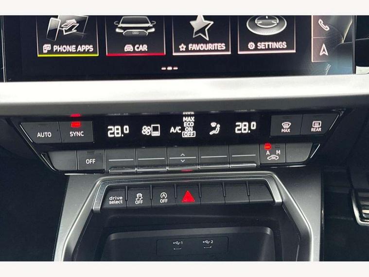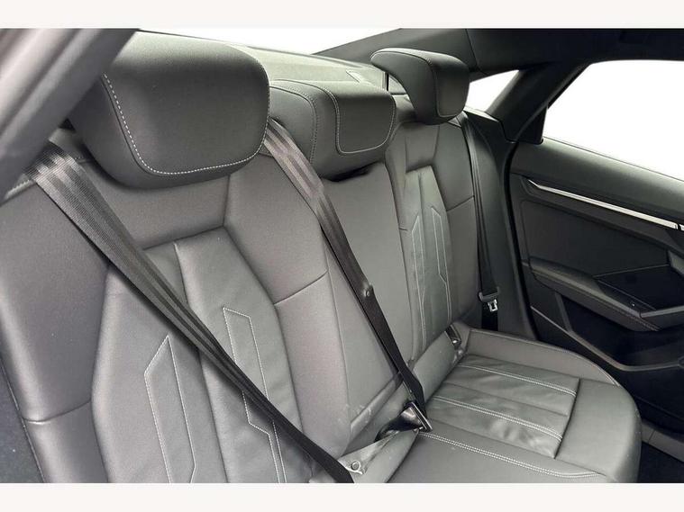Audi connect emergency call and service, Audi drive select (Auto, Comfort, Dynamic and Individual), Audi smartphone interface, Audi Virtual Cockpit - 10.25" digital and colour instrument cluster, Automatic start/stop system with recuperation, Bluetooth interface, Collision avoidance assistant, Cruise control + speed limiter, Electromechanical power speed sensitive steering, Lane departure warning system, MMI Navigation Plus with high resolution 10.1" colour touch screen display, Rear parking sensors, Service indicator, Voice control system with natural language interaction, 2x USB Type C ports (for charging and data transfer), 6 passive loudspeakers, CD player, DAB Digital radio, 3rd brake light, Acoustic glass windscreen, Aluminium window trim, Auto dimming frameless rear view mirror, Electrically adjustable/heated/folding/dimming door mirrors with kerb view includes integrated LED indications + kerb view function for passenger side, Front electric windows, Illuminated door sills with aluminium inserts at the front with S logo, LED daytime running lights, LED headlights with LED rear lights and dynamic rear indicators, Light and rain sensors, Model and engine designation badges at rear, Privacy glass - dark tinted rear window, rear door and side windows, Rear boot, Rear electric windows, Rear side wing doors, S line bumpers, S roof spoiler, 12V socket and storage compartment in front centre console, 3 seat bench in 2nd row, 40/20/40 split folding rear seat bench with cupholder, Black cloth headlining, Dual zone electronic climate control, Front and rear centre armrest in leather, Front and rear headrests, Front/rear floor mats, Height and reach adjustable steering wheel, Illuminated vanity mirror, Interior lighting - glove compartment light and right hand side, Luggage compartment floor covering, Manual boot compartment lid, Manually adjustable front sport seats, Seat side bolsters, Single front passenger seat, Stainless steel pedals and front footrest in black, Twin leather upholstery with front sports seats S embossed logo, Aluminium interior elements pack - A3 Saloon, LED interior lighting pack - A3 Saloon, S line styling pack - A3 Saloon, 3x3 point rear seat belts, Driver and front passenger airbag with passenger airbag deactivation, Electronic Stabilisation Control (ESC) including ABS, ASR and EDL, First aid kit with warning triangle and 2 safety vests, Front side airbags with head airbags and interaction airbag, Hill hold assist, Pre-sense front with pedestrian and cyclist detection, Seatbelt monitoring, Tyre pressure loss indicator, Anti theft alarm, Anti-theft wheel bolts, Electronically operated child locks, Immobiliser, Remote control central locking, Aluminium air vent surrounds, Aluminium trim elements, Dark spectrum aluminium inlays, accent surfaces in the dashboard and centre console in platinum grey silk effect paint finish,