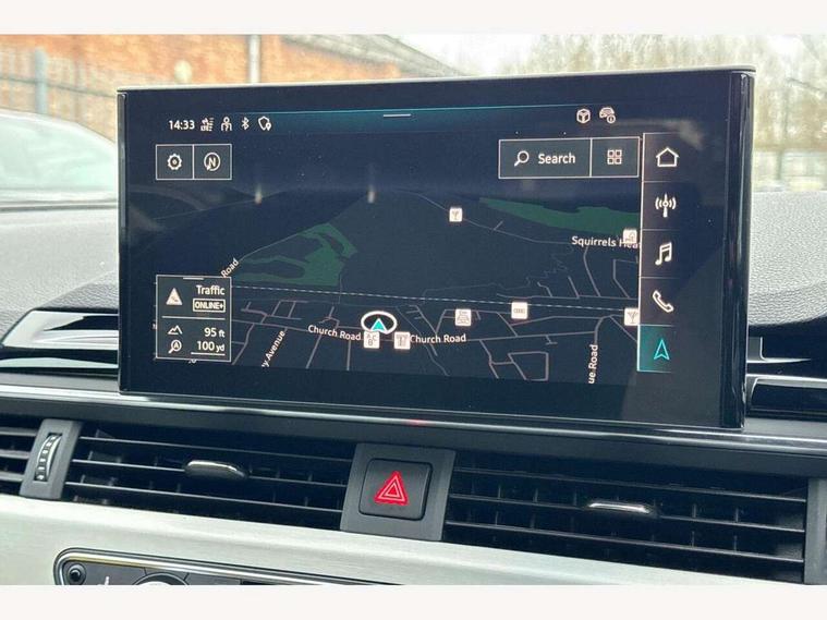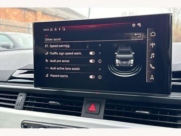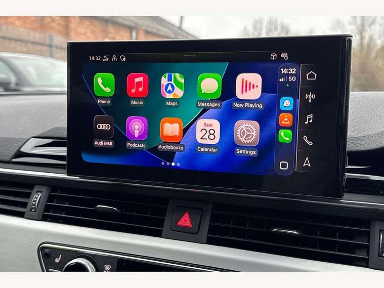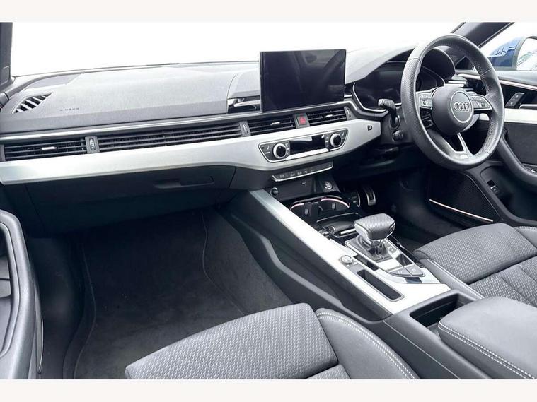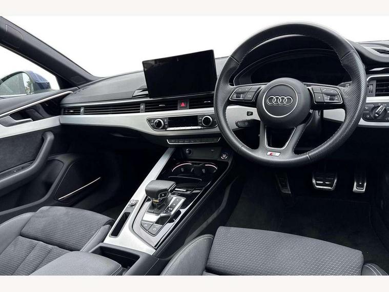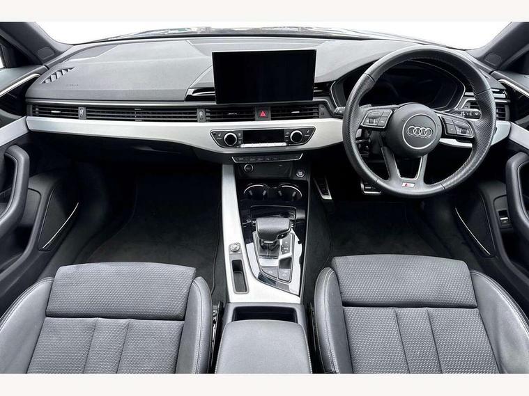 Audi connect safety and service (e-call), Audi drive select, Audi smartphone interface, Audi virtual cockpit, Automatic start-stop system with coasting functionality and efficiency programme, Bluetooth interface, Camera based traffic sign recognition, Electromechanical power steering, Email, calendar and text messages displayed via MMI, Front and rear parking sensors, Lane departure warning, MMI Navigation plus with MMI touch includes 10.1" high resolution colour MMI display, 3D map, Power operated tailgate, Rear view camera, Voice control system, 54 litre fuel tank, Sports suspension lowered by 23mm, 2 USB charging ports, 8 passive loudspeakers, DAB digital radio reception, Aluminium roof rails, Auto dimming rear view mirror, Body colour door handles, Body colour front spoiler lip, Body colour side sill trim, Body coloured door mirrors, Electric adjustable/heated/folding door mirrors with auto dimming, Grained matt black side air inlets with matt aluminium silver inlay, High beam assistant, Honeycomb structure radiator grille in grained matt black, LED headlights with LED rear lights + dynamic rear indicators + headlight adjustment and high beam, turning light + LED daytime running lights, LED third brake light, Matt aluminium silver tailpipe trim, Privacy glass, Rain and light sensors, Rear side wing doors, Rear wiper, S Line badges on the front wings, S line front and rear bumpers with side skirts, S Line rear diffuser in matt anthracite black with trim strip in matt aluminium silver, S Line roof edge spoiler, Variable intermittent front wash/wipe, Windscreen with acoustic glazing, 3 spoke high multi-function sports leather steering wheel grips in perforated leather with S badging including paddle shift, 4 way electric lumbar support for driver and front passenger, 40/20/40 split folding 3 rear seat bench in 3 parts with rear centre armrest, Black carpets, Black cloth headlining, Black perforated leather gearknob, Contrast stitching on seats, steering wheel and gear lever gaiter, Deluxe 3 zone electronic climate control, Electric load area cover, Front and rear head restraints, Front centre armrest, Heated front seats, Illuminated door sill trims with S logo, ISOFIX child seat mounting and top tether, Manual seat adjustment, Single front passenger seat, Stainless steel pedals and foot rest, High gloss package - A4, LED Interior light pack - A4/S4, 3 rear seatbelts, 6 airbags - Driver, front passenger, curtain and side windows, Attention and drowsiness assist, Electronic Stabilisation Control (ESC) including ABS, ASR and EDL, Hill hold assist, Multi collision brake assist, Pop-up bonnet for pedestrian protection, Pre sense city, Rear door child safety locks, Seatbelt monitoring, Warning triangle and first aid kit, Anti theft alarm, Anti theft wheel bolts, Central locking, Keyless Go, Matt brushed aluminium inlays, Tool kit, Tyre repair kit,