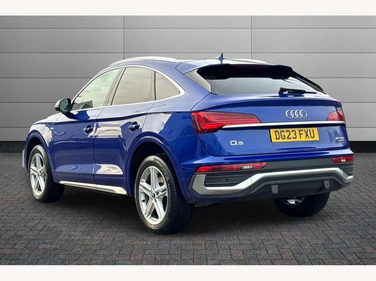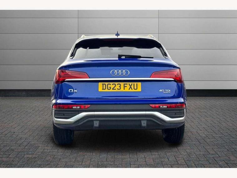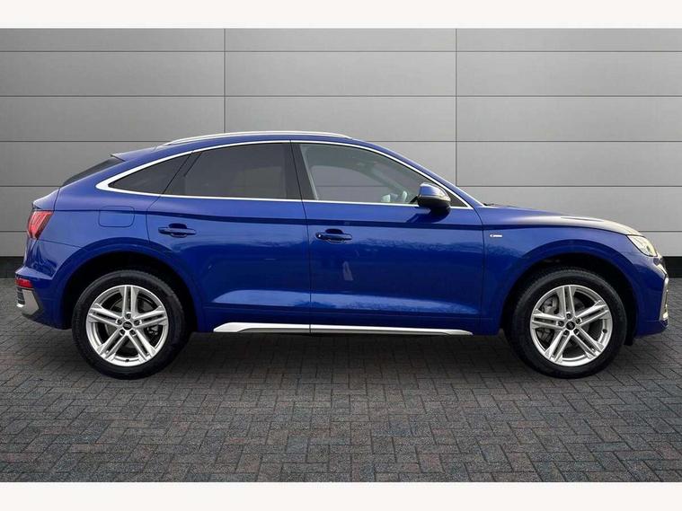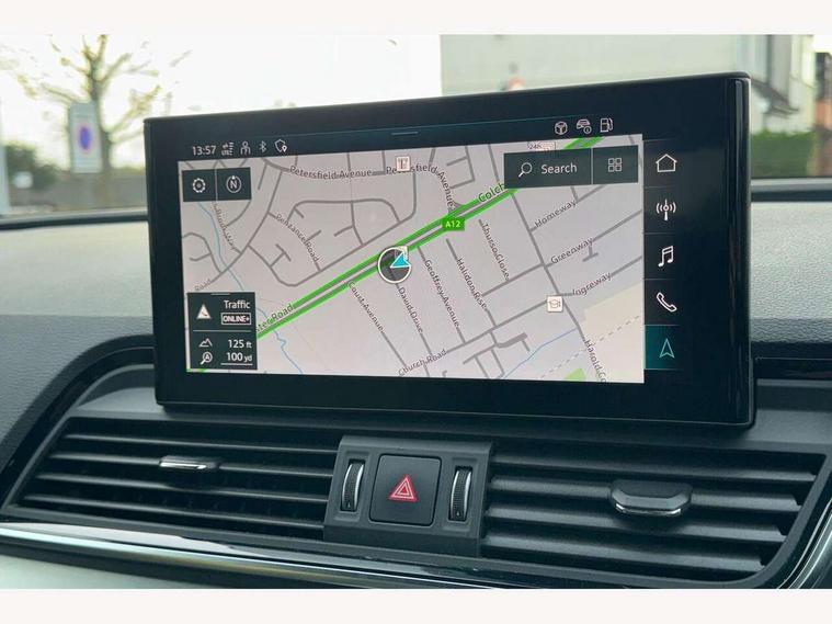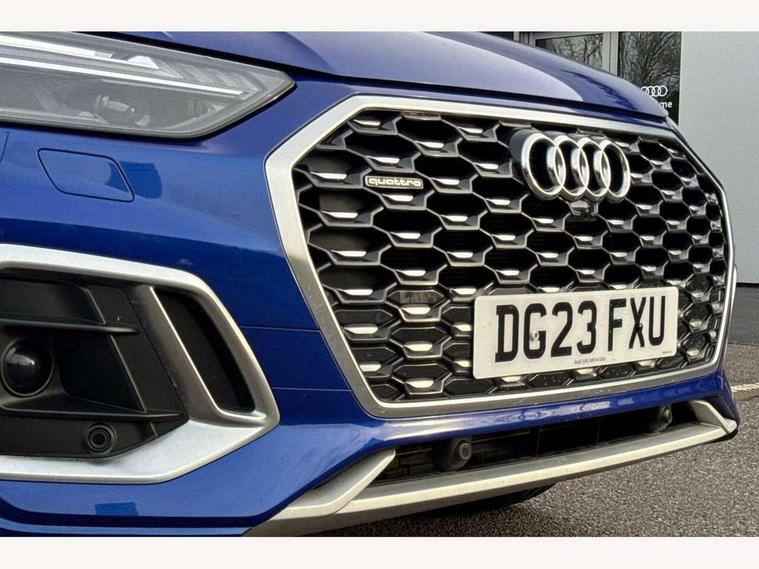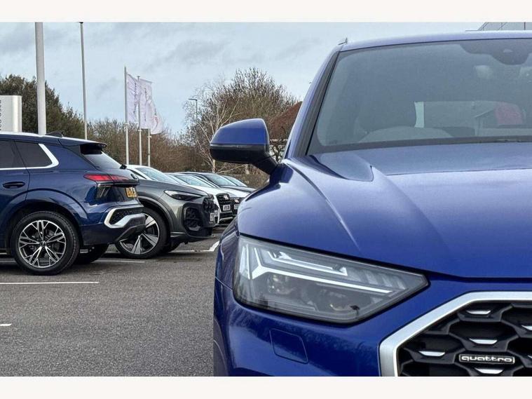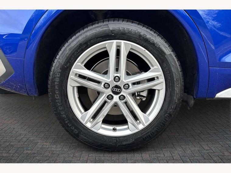 Acoustic front and rear parking sensor, Audi connect safety and service (e-call), Audi connect with Amazon Alexa Integration, Audi drive select, Audi virtual cockpit plus with 12.3" screen and three different layout designs, Audi wireless smartphone interface, Automatic start-stop system with coasting functionality and efficiency programme, Bluetooth interface, Electro - mechanical power assisted steering, MMI navigation plus with 10.1" touch screen, Power tailgate, Reversing camera, Service interval indicator, Voice control system with Audi hotword activation "Hey Audi", Diesel particulate filter, Quattro on demand, S line sports suspension, 8 loudspeakers, DAB Digital radio, Acoustic windscreen, Aluminium roof rails, Audi matrix LED headlights with dynamic front and rear indicators, Auto dimming door mirrors, Auto dimming frameless rear view mirror, Automatic headlight adjustment, Automatic headlights and windscreen wipers, Body colour door mirrors, Body colour rear diffuser with matt aluminium silver surrounds, Body colour underbody protection, Chrome plated exhaust trims, Daytime running lights, Door sills in Selenite silver, Electric adjustable/heated/folding door mirrors, Front air inlet surrounds in aluminium, Front and rear electric windows, Front radiator grille in honeycomb design, Headlight washers, High level LED brake light, Lower bumpers painted in contrast Manhattan grey, Rear chrome trim strip below lights, Rear privacy glass and rear side windows, Rear side wing doors, Rear wiper, Roof bars, S Line badges on the front wings, S Line front and rear bumpers, S Line rear spoiler, S Line side skirts, 2 x USB charging port with aux input socket, 3 rear headrests, 3 spoke leather multifunction steering wheel with S badging perforated leather grips, 40:20:40 split folding 3 rear bench seat in 2nd row with rear centre armrest, Black cloth headlining, Comfort front centre armrest, Contrast stitching on seats, steering wheel and gear lever gaiter, Deluxe 3 zone electronic climate control, Front head restraints, Front/rear floor mats, Gear lever in black leather, Heated front seats, Height/reach adjustable steering column, Illuminated door sill trims with S logo, Manual seat adjustment with 4-way electric lumbar support, Removable luggage compartment floor, Single front passenger seat, Stainless steel pedals, Sunvisors with vanity mirrors, Trunk roller cover, High gloss pack - Q5, LED interior light pack - Q5, 3 point seatbelts on all seats, 6 airbags - Driver, front passenger, curtain and side airbags, Electrically operated child locks on rear doors, Electromechanical parking brake, Electronic stabilisation control including ABS, ASR and EDL, First aid kit with warning triangle and vests, Front passenger airbag deactivation, Hill descent control, Hill hold assist, ISOFIX child seat mounting for front passenger seat and ISOFIX child seat mounting with Top Tether for outer rear seats, Multi collision brake assist, Pop-up bonnet for pedestrian protection, Pre sense city, Seat belt force limiter, Seatbelt monitoring, Tyre pressure warning, Anti theft alarm, Anti-theft wheel bolts, Keyless Go access/ignition system, Remote central locking, Air vents inserts and centre console in gloss black, Matt brushed aluminium inlays,