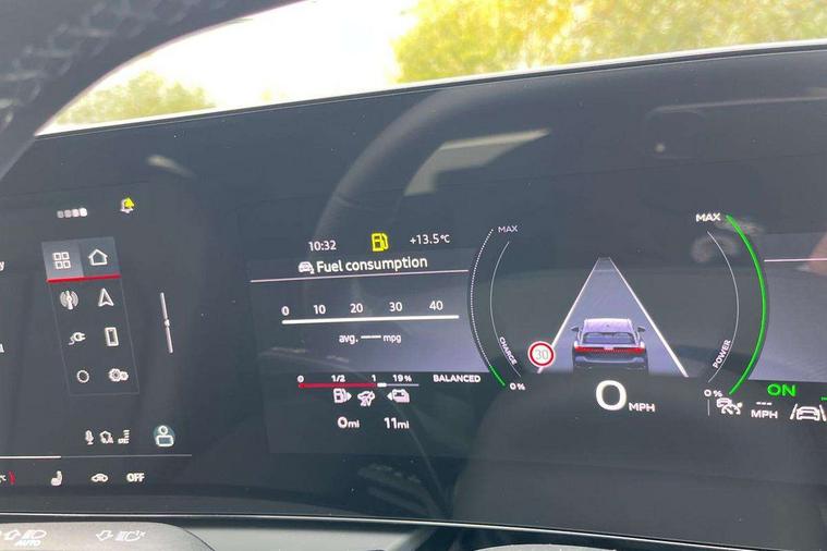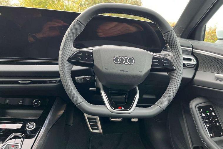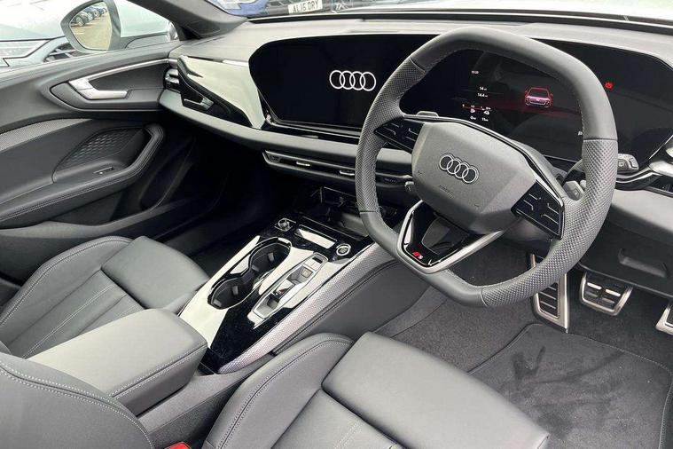 Adaptive cruise control, Advanced driver attention and fatigue montior, Audi application store, Audi assistant, Audi connect emergency call and service, Audi drive select, Audi virtual cockpit plus with 11.9" OLED colour display, Automatic start/stop system with coasting functionality, Camera based traffic sign recognition, Intersection assist, Lane departure warning, MMI navigation plus with high resolution 14.5" OLED touchscreen colour display, Park assist plus, Parking system plus with 360 display, Progressive steering with servotronic, Rear view camera, Smartphone interface, Swerve assist and turn assist, Traffic sign based speed limiter, Household plug type G, Hybrid propulsion system, Industrial connector CEE 32A, 230V, long and straight for the e-tron charging system, Mode 3 type 2 AC charging cable 22kW, Sports suspension lowered by 20mm, 2 USB-C ports in both the front and rear, DAB digital radio reception, Smartphone compartment with wireless charging, Aluminium roof rails, Aluminium window trims, Auto dimming rear view mirror, Body colour door mirrors, Door mirrors - electrically adjustable, heated, folding and auto dimming on both sides, Front and rear electric windows, Front door sill trims with aluminium inlays, illuminated with 'S' logo, High beam assist, LED headlights Plus incl. digital daytime running lights, turning light, all-weather light, motorway light, manouevring light and intersection light, LED rear lights pro incl. dynamic rear indicators and illuminated light strip with animated coming and leaving home function, LED third brake light, Privacy glass, Rear and side windows with heat insulating glass, Rear side wing doors, Rear wash/wipe, Removal of S line badge on the front wings, S line bumpers, radiator grille and diffuser in phantom black and diffuser insert in matt anthracite, White rhombus logo projection light in exterior mirrors, Windscreen with acoustic glazing, 3 rear headrests, 3 seat rear bench, 3 spoke leather steering wheel with multi-function buttons with touch control, flattened on top and bottom, with S badging and contrast stitching, 3-zone automatic climate control, 40:20:40 split folding rear seat bench with centre armrest and cup holders, Auxiliary air conditioning, Comfort front centre armrest, Front and rear floor mats, Front seats with manual adjustment for position and 4-way electric lumbar support, Front sport seats with integrated headrest and S embossed logo, Headlining in black cloth, Heated front seats, i-Size child seat mounting on the front passenger side and outer rear seats, i-Size and top tether on the outer rear seats, LED roof module front and rear including reading lights, Luggage compartment lid, electrically opening and closing, Manual steering column height and depth adjustment, Single front passenger seat, Stainless steel pedals and footrest, Steering wheel grips in perforated leather and shift paddles, Storage compartment lighting under the centre armrest, Ambient lighting package plus - A5, 3x3 point rear seat belts, Acoustic vehicle alerting system, Driver airbag, Electric child safety locks, First aid kit with warning triangle and vests, Front emergency brake assist, Front passenger airbag, Front passenger airbag deactivation, Front side airbags with head airbag system and front interaction airbag, Hill hold assist, Seat belt monitoring with rear seat occupant reminder, Tyre pressure loss indicator, Anti theft alarm, Anti-theft wheel bolts, Keyless Go, Accent surfaces and control buttons in gloss black, Black dashboard with contrast stitching, Inlays in matt brushed aluminium with linear embossing, anthracite, Softwrap in leatherette with contrast stitching, Upper and lower interior elements in leatherette, Tyre repair kit,