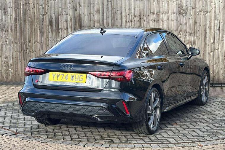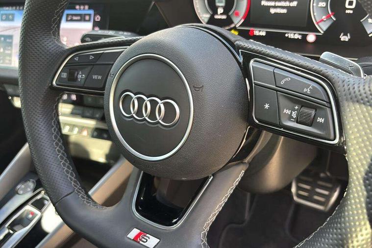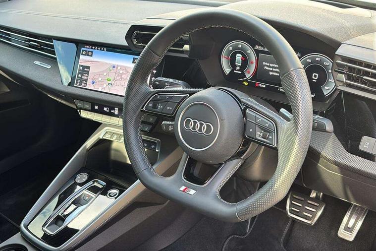 Adjustable speed limiter, Audi drive select, Audi smartphone interface with app store includes wireless Apple carplay, Android auto and Amazon alexa integration, Audi virtual cockpit plus - 12.3" full HD resolution dynamic digital instrument cluster, Automatic start/stop system with recuperation, Bluetooth interface, Camera based traffic sign recognition, Collision avoidance assistant, Cruise control, Distraction and Fatigue warning, e-Call (emergency call), Electromechanical power speed sensitive steering, Lane departure warning system, MMI Navigation Plus with high resolution 10.1" colour touch screen display, Park Assist with parking system Plus, Service indicator, Trip computer, Voice control system with natural language interaction, Diesel particulate filter, Sports suspension, Audi Phonebox light with wireless charging, Audi sound system - 10 loudspeakers including centre loudspeaker and subwoofer, DAB Digital radio, USB ports with charging function in the rear, Acoustic glass windscreen, Anthracite grey Audi rings (front and rear), Audi beam uses LEDs to project the Audi logo onto the ground as you exit your A3, Auto dimming frameless rear view mirror, Black accents front and rear bumpers, Black accents in the area of the Audi single frame grille, Black accents window trims strips, Electrically adjustable/heated/folding/dimming door mirrors with kerb view includes integrated LED indications + kerb view function for passenger side, Exterior model badging, Front electric windows, Heat insulating glass windscreen, Illuminated door sills with aluminium inserts at the front with S logo, LED 3rd brake light, LED daytime running lights, LED headlights with LED rear lights and dynamic rear indicators, Light and rain sensors, Privacy glass - dark tinted rear window, rear door and side windows, Rear boot, Rear electric windows, Rear side wing doors, 12V socket and storage compartment in front centre console, 3 seat bench in 2nd row, 3 spoke flat bottomed leather multifunction sport steering wheel with gear shift paddles, 3-zone deluxe automatic air conditioning, 4 way electrically adjustable lumbar support for driver and front passenger, 40/20/40 split folding rear seat bench, Black cloth headlining, Front and rear centre armrest in artificial leather, Front and rear centre armrest in artificial leather with contrasting stitching on armrests and instrument panel, Front and rear headrests, Front/rear floor mats, Heated front seats, Height and reach adjustable steering wheel, Manual boot compartment lid, Manually adjustable front seats, Rear cup holders, S badging on the steering wheel, Seat side bolsters, Single front passenger seat, Stainless steel pedals and front footrest in black, Twin leather upholstery with front sports seats S embossed logo, Aluminium interior elements pack - A3 Saloon, Multi-coloured LED interior lighting package - A3 Black Edition, 3x3 point rear seat belts, Driver and front passenger airbag with passenger airbag deactivation, Electronic Stabilisation Control (ESC) including ABS, ASR and EDL, First aid kit with warning triangle and 2 safety vests, Front side airbags with head airbags and interaction airbag, Hill hold assist, Pre-sense front with pedestrian and cyclist detection, Seatbelt monitoring, Tyre pressure loss indicator, Anti theft alarm, Anti-theft wheel bolts, Electronically operated child locks, Immobiliser, Remote central locking with safelock, Inlays in black Impressum woven textile,