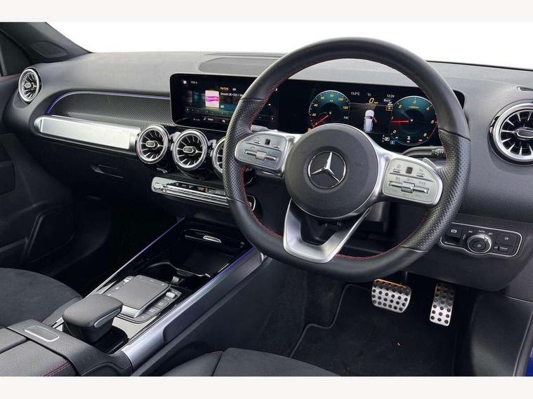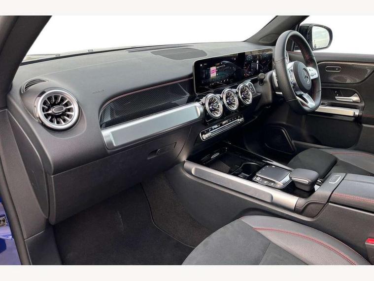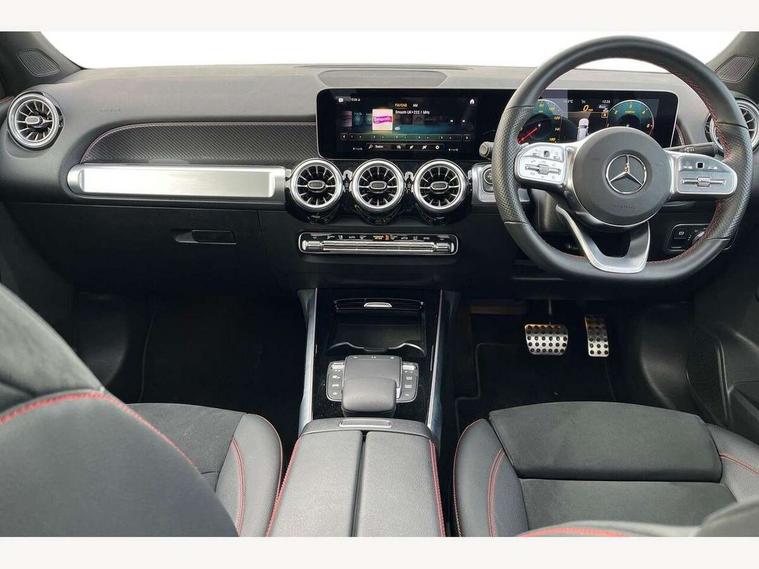 10.25" Digital instrument cluster display screen, 10.25" Digital media screen display, Active lane keeping assist, Attention assist - Monitors steering behaviour and long journey fatigue, Brake pad wear indicator warning light, Car wash mode, Cruise control with limiter, DYNAMIC SELECT with a choice of driving modes (ECO, Comfort, Sport and Individual), ECO start/stop function, Fluid level warning indicator for fuel, oil, coolant and washer fluid, Hard disk navigation, Hey Mercedes Voice activation, Lamp failure indicator, Mercedes me connect including emergency call system, accident recovery, breakdown and maintenance management, Mercedes me remote services, Outside temperature gauge, Owners manual and service booklet in English, Parameter steering system, Pre-installation of private car share, Preinstallation for parking damage notification, Radio aerial integrated into front and rear windshields, Service indicator (ASSYST), Smartphone integration with Apple CarPlay and Android auto, Speed limit assist, Traffic sign assist, Trip computer in multifunction display with current consumption indicator, 23.8 litre AdBlue fuel tank, Comfort suspension, Rear axle multi-link, DAB digital radio tuner, MBUX multimedia system with DAB digital radio and touchpad including satellite navigation, Mercedes Benz sound system (225 W) with 10 speakers, 1 central speaker, speakers on doors, a tweeter on door, one sub woofer + boost amplifier, Pre installation for Mercedes Benz Link, USB (type C) port in front stowage compartment, USB (type C) ports (2) in stowage compartment, Adaptive brake lights, Aerial for GPS, AMG bodystyling door panels black grained with chrome plated inserts, AMG bodystyling front apron with chrome splitter, AMG bodystyling rear apron with diffuser optics and chrome trim element, AMG specific front and rear bumper including underride guard in high gloss chrome, Auto headlights, Beltline strips and weather strip in chrome, Black door mirrors, Black roof rails, Body coloured bumpers, Body coloured door handles with chrome insert for keyless entry, Electric adjustable and heated door mirrors with integrated LED side indicators, Electric panoramic glass sunroof, Exhaust system with dual flow exhaust pipes (non-functional), Front and rear electric windows, Headlamp assist automatic headlamp activation, Heated glass rear windscreen + timer control, High level LED third brake light, Interior mirror with black reading lamps and frameless, LED daytime running lights, Multibeam LED headlamps and tail lamp with adaptive high beam assist, Privacy glass with dark tinting on rear side windows and rear window, Radiator grille with pins in chrome and single louvre with chrome insert, Rain sensor windscreen wipers, Rear fog lamp, Rear side wing doors, Rear wiper, Two visible tailpipe trim elements exhaust, 3 seat bench in 2nd row, 3 spoke multifunction sport steering wheel in nappa leather, Air conditioning - Two zone thermotronic luxury automatic climate control with display, AMG sports pedals with brushed stainless steel surfaces and black rubber studs, Artico man-made leather/Microcut microfibre upholstery with red contrast stitching, Automatic child seat recognition sensor, Black floor mats with AMG lettering, Black roof lining, Electrically adjustable front memory seats including lumbar support, Fore/aft adjustment rear seats, Freight packaging with tie-down hooks, Front centre armrest with stowage, Front door sills with illuminated changeable cover, Front passenger grab handle with brushed side silver chrome, Front sports seats with adjustable head restraints, Galvanished gear shift paddles on steering wheel, Heated front seats, Height/reach adjustable steering column, Interior lighting - 64 colour Ambient lighting, Luggage net on driver/front passenger seat backrest, Net in front passenger footwell, Rear armrest with two integral cup holders for drinks, Rear seat easy entry, Single front passenger seat, Stowage compartment in centre console, Stowage compartment with retractable cover, Third row of seats for two people on rear seat, Touchpad on center console, Twin front cup holders, Two outer rear seat isofix and top tether child seat fixing points, Interior lighting with light and sight pack - GLB, Keyless go comfort pack - GLB with easy pack tailgate, Memory package - GLB, Mirror pack - GLB, Parking pack - GLB, 3 rear 3 point seatbelts, Active bonnet pedestrain safety measure which detects an impact and raises bonnet by 65mm, Active brake assist includes forward collision warning system with autonomous braking, Adaptive brake assist with hold function and hill start assist, Airbags - kneebag for driver, Anti-lock braking system (ABS) with brake assist, Childproof locks manually operated for rear doors and electrically operated for rear power windows, Crash responsive emergency lighting, Curve dynamic assist, Driver and front passenger head and sidebags, Driver and front passenger windowbags, Dual stage driver and front passenger airbags, Electronic parking brake, Electronic stability programme with acceleration skid control, Front and rear seatbelt reminder, Front brake callipers with Mercedes Benz lettering, Front passenger seat occupancy sensor, Tyre pressure monitoring system, Warning triangle and first aid kit, Guard 360 degree vehicle protection - Anti theft alarm system, tow away protection with visual, acoustic warning and alarm, Interior monitoring system, KEYLESS-GO Spanner communicates with the vehicle within two metres of the door, Remote central locking and crash sensor with emergency opening function, Thatcham category 1 alarm system with immobiliser and interior protection, Vehicle key with decorative surround in chrome, Black air vents with chrome surround, Carbon structure trim, 20" AMG multi spoke light alloy wheels painted in high gloss black with high sheen rim flange, Summer tyres, Tirefit tyre sealant kit,