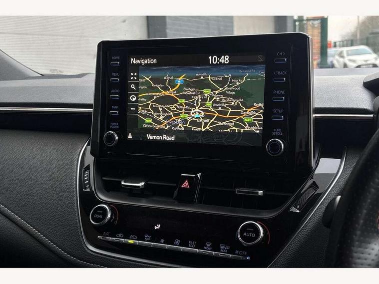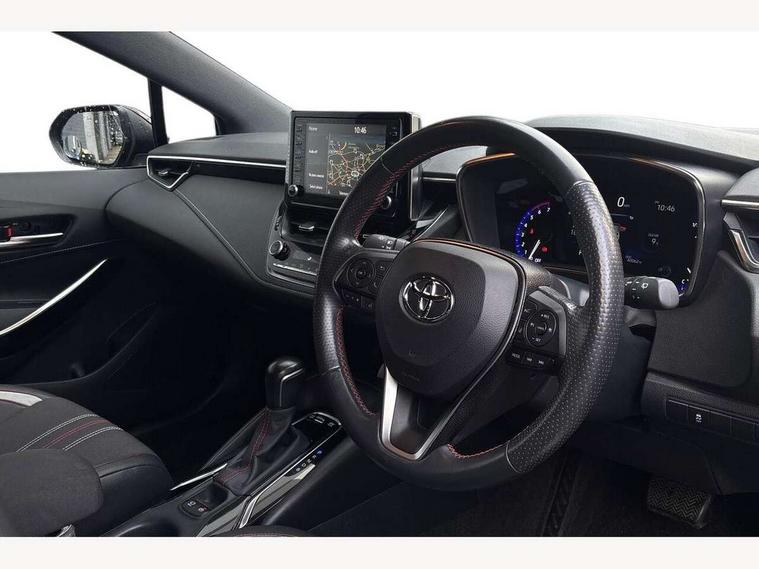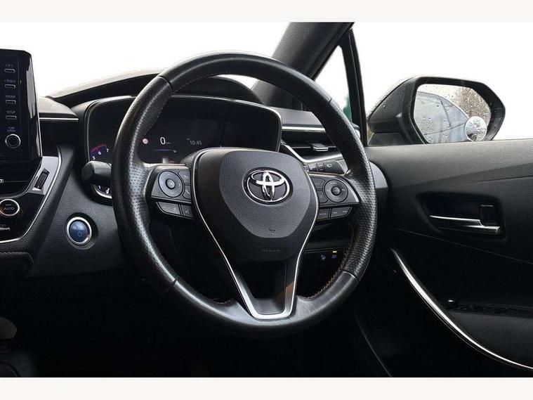 3D Colour multi information display, Bluetooth telephone connectivity, E-call, Electrically assisted power steering, Head up Display, Intelligent park assist, Push button start, Reversing camera, Smartphone integration with Apple CarPlay and Android auto, Speed limiter, Voice activation, Vehicle Stability Control (VSC), 2 ring combimeters with 7" colour TFT screen, 6 speakers, 8" multimedia and back monitor, AM/FM radio, DAB Digital radio, Toyota touch 2 with go navigation system, USB and Aux in connectors + 12V front outlet, Anti-jam protection on power windows, Auto dimming inside rear view mirror, Auto up and down function on all power windows, Automatic folding mirrors, Automatic headlights, Body coloured bumpers, LED daytime running lights, LED front fog lights, LED Headlights, LED rear combi lights with LED lightguide, Power adjustable heated door mirrors, Power front windows, Power rear windows, Privacy glass, Rain sensing wipers, Rear window wiper, Reverse tilting door mirrors, Shark fin antenna, 3 rear headrests, 3 spoke leather steering wheel + gear knob, Alcantara/partial leather upholstery, Clean air filter, Dual zone automatic air conditioning with ECO mode switch, Front head restraints, Heated seats, ISOFIX seat fixing (2 fixings on rear outer seats), Pollen filter, Power lumbar support, Sports seats, Steering wheel switches, Tilt/telescopic steering column, Whiplash Injury Lessening (WIL) feature (active headrest) for seats, Parking pack - Corolla, Toyota safety sense 2 pack - Corolla, 3x3 point rear seatbelts, Adjustable front driver seat belt extender, Anti lock braking system + Electronic brake force distribution, Brake assist function, Electronic parking brake, Front passenger airbag on/off switch, Front seatbelt reminder, HAC - Hill start assist control, Rear seat belt reminder, Seatbelt pretensioners and force limiters, Supplemental restraint system (SRS) 7 airbags - dual driver, dual side curtain, side impact and driver knee airbags, Traction control, Tyre pressure warning system, Alarm/immobiliser, Remote central locking + deadlocks, Tyre repair kit,