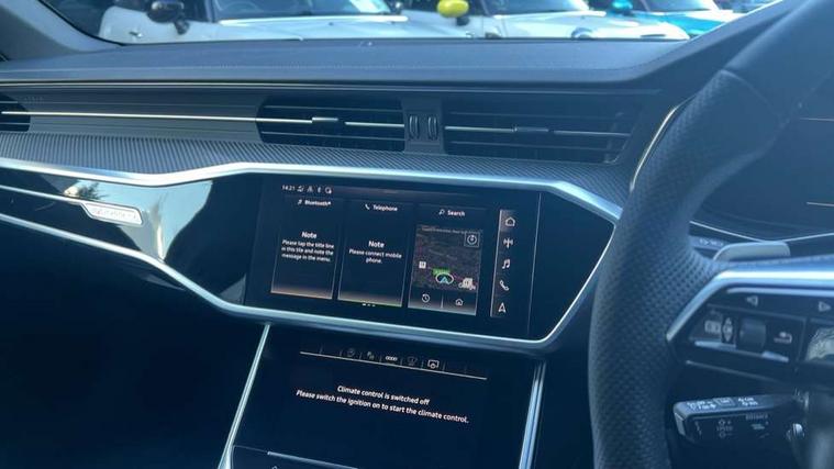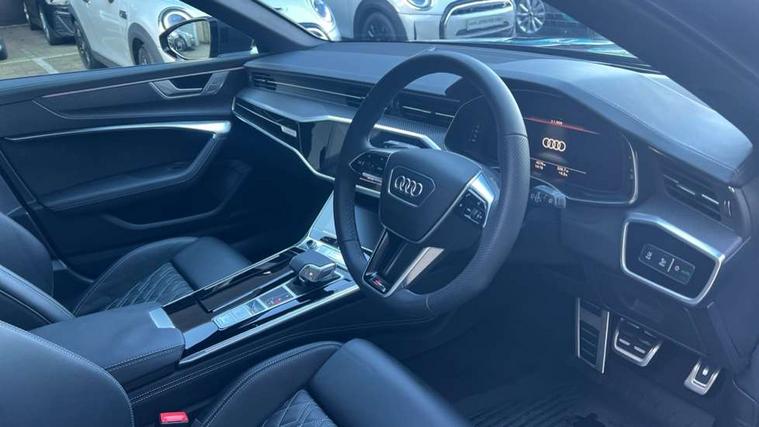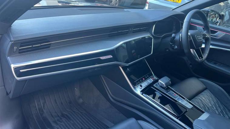 360 degree camera, Audi connect safety and service (e-call), Audi connect with Amazon Alexa Integration, Audi drive select, Audi smartphone interface includes wireless Apple carplay/Android Auto, Audi virtual cockpit, Automatic start/stop system with coasting functionality, Bluetooth interface, Camera based traffic sign recognition, Dynamic all wheel steering, Head up Display, Lane departure warning system, MMI navigation plus with 10.1" and 8.6" touch screens, Operating buttons in black gloss, Park Assist with parking system Plus, Power door closure, Power operated tailgate, Remote park assist plus, Service interval indicator, Voice control system, 22 litre AdBlue tank, 73 litre fuel tank, Adaptive air suspension, Diesel particulate filter, Quattro with sport differential, 2 USB-C ports with charging functionality in the rear, Audi front music interface, Auxiliary input socket, Bang & Olufsen 3D Premium Sound System, DAB Digital radio, USB connection, Adaptive windscreen wipers with integrated washer jets, Audi beam projecting the word Vorsprung onto the floor from the driver and front passenger doors, Black roof rails, Body colour rear roof spoiler, Body colour S specific rear diffuser, Carbon mirror housings, Electric front/rear windows, Electrically adjustable heated and folding + automatically dimming exterior mirrors with memory function, Frameless auto dimming interior rear view mirror, Front intermittent wipers, HD Matrix LED headlights with dynamic front and rear indicators, Heat insulating darkened glass in side and rear windows, Heat insulating glass in windshield, LED rear lights with dynamic indicators, LED signature front daytime running light, LED third brake light, Matt black side air intake grille with inlay in matt aluminium, Panoramic opening glass sunroof, Privacy glass, Radiator grille in anthracite black matt, single frame in chrome and horizontal struts in matt aluminium silver, Rain and light sensors, Rear side wing doors, Rear wiper, S air inlet in titanium anthracite black, S front and rear bumpers, S Line side skirts, 3 spoke sport leather steering wheel with multifunction, shift paddles and steering wheel heating, 4 zone climate control, 40/20/40 split folding 3 rear seat bench in 3 parts with rear centre armrest, Audi phone box light, Black cloth headlining, Electric rear window blind, Electric steering column, Electrically adjustable front seats with memory including seat height, fore/aft position, backrest angle and 4 way lumbar, Front and rear floor mats, Front centre armrest, Front head restraints, Front sliding sun visors, Heated front and rear seats, Height/reach adjust steering wheel, Illuminated door sill trims with S logo, Illuminated sun visors with vanity mirrors, Leather gear knob, Leatherette on upper instrument panel and door shoulders, Luggage compartment system, Rear headrests, Single front passenger seat, Stainless steel pedals and foot rest, Tool kit and car jack, Valcona Leather with contrast stitching and S embossing + front super sport Seats + dinamica door insert, Ambient lighting package plus - A6, City assist pack with front cross traffic assist - A6, Full leather pack - A6, Multi coloured extended LED interior lighting pack - A6, Non smoking pack - A6, S line exterior style pack - A6, Storage pack - A6, Tour pack with adaptive cruise assist - A6, 19" Disc brakes in front and brake calipers painted in black with "S" lettering (ECE), 3 point seatbelts on all seats, Airbags - Front side, front and rear including head, Audi pre-sense front, EBD - Electronic brakeforce distribution, Electromechanical parking brake, Electronic Stability Control (ESC) including ABS, ASR and EDL, Extended pedestrian protection measures, High tyre pressure measurement system (TPMS), ISOFIX child seat mounting for front passenger seat and ISOFIX child seat mounting with Top Tether for outer rear seats, Manual child proof rear door locks, Seatbelt monitoring, Tyre pressure warning light, Warning triangle and first aid kit, Advanced key, Anti theft alarm with tow away protection, Anti-theft wheel bolts and wheel loosening detection, Immobiliser, Keyless Go, Remote central locking, Carbon twill inlays, 21" 5 twin spoke matt dark grey audi sport alloy wheels in gloss turned finish,