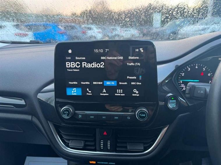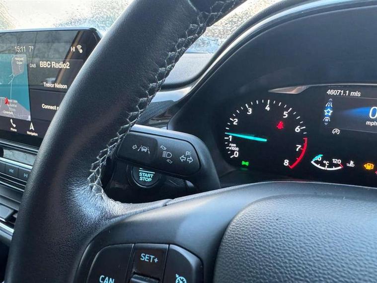 Bluetooth system, Drive mode selector, Driver alert system, Electric power steering, Ford SYNC 3 nav system, apple car play and android auto with voice control, Lane keep assist, Rear parking sensor, Rear view camera, Speed limiter, SYNC Emergency Assistance, Traffic sign recognition, Trip computer, 2 USB ports, Auxiliary input socket, DAB Digital radio, Steering wheel mounted controls, Auto dimming rear view mirror, Auto high beam, Automatic headlights, Body colour bumpers, Body colour door handles, Body colour electric adjustable heated door mirrors, Body colour rear spoiler, Body styling kit, Chrome beltline trim, Chrome door handles, Cornering front fog lights, Electric folding door mirrors with puddle lamps, Electric front windows/one touch facility, Electric rear windows, LED daytime running lights, LED rear lights, Quickclear heated windscreen, Rear privacy glass, Rear wiper, Tinted glass, Upper front grille chrome surround, 12V Accessory socket in centre console, 3 spoke leather steering wheel, 60/40 split folding rear seat, Adjustable head restraints, Air conditioning + Electric Auto Temperature Control (EATC), Ambient lighting, Boot carpet, Centre console with armrest, Chrome inner door handles, Driver/passenger seat height adj/lumbar support, Footwell illumination, Front map reading lights, Front seat and rear pockets, Front/rear floor mats, Heated front seats, Height adjustable driver's seat, Illuminated cup holders, Illuminated glovebox, Leather gear knob, Leather trimmed handbrake handle, Load area light, Luxury woven headliner, Overhead console with sunglasses holder, Part leather upholstery, Pollen filter, Rake/reach adjustable steering wheel, Rear centre head restraint, 3 point seatbelts on all rear seats, ABS+EBA, Curtain airbags, Driver and passenger airbags, Drivers knee airbag, ESP + traction control, Front passenger airbag deactivation, Front side airbags, Hill start assist, Seatbelt warning, Tyre pressure monitoring system, Immobiliser, Keyless entry and keyless start with 2 remote folding keys, MyKey system, Remote central locking, Thatcham Cat.1 alarm, 17" 5 spoke alloy wheels with rough metal machined finish,