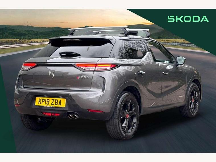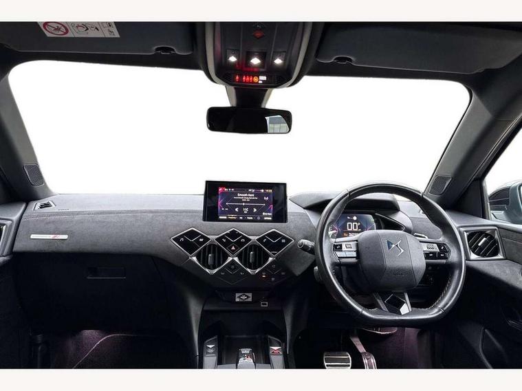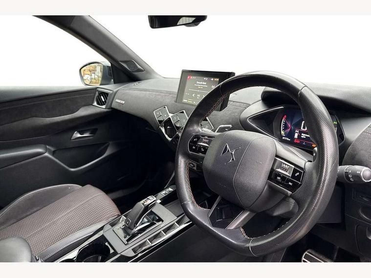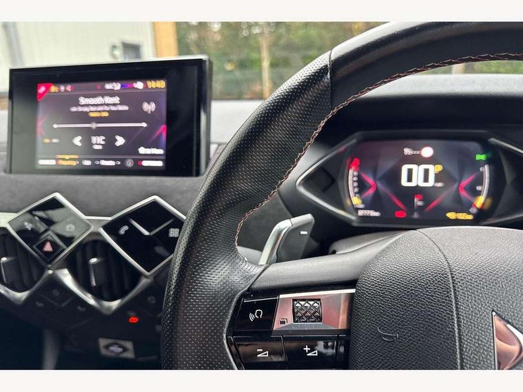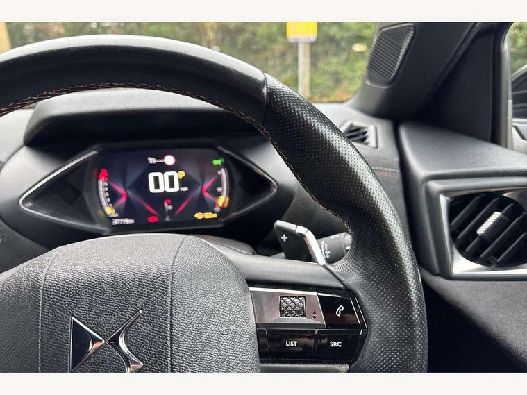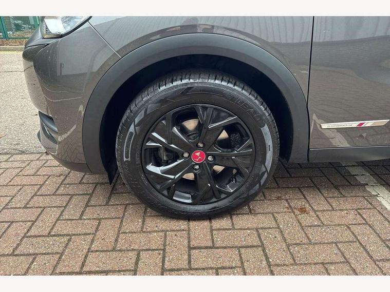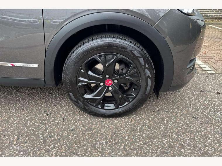 Bluetooth handsfree and media steaming with 1A USB socket, DS Connect Box emergency and assistance system, DS sensorial drive in Cashmere/ Titanium modes, Mirror screen with mirror link, apple carplay and android auto, Multi function on board trip computer, PAS, Rear parking sensors, Service indicator, Speed limit recognition and speed warning, DAB Digital radio, USB connection, Acoustic and tinted front and rear windscreens, Automatic lights, Automatic triggered rear windscreen wiper in reverse gear, Body coloured bumpers, Chrome door handles, Chrome front door sill trim, Dark tinted rear windows, DS 3D LED rear lights, DS monogram on rear tailgate, Electrically adjustable door mirrors, Electrochrome door mirrors, Flush fitting exterior door handles, Front and rear electric windows, Gloss black exterior door mirrors, Halogen headlights, Heated door mirrors, Heated rear windscreen, LED rear number plate lights, Twin exhaust tailpipe, 12V socket, 60/40 split rear seat back, Adjustable front and rear headrests, Adjustable steering wheel, Aluminium sports pedals, Bag support hooks in the boot, Black roof liner, Boot light, Driver and passenger sunvisors with illuminated LED vanity mirrors, Front + rear carpet mats, Front and rear LED reading lights, Front central armrest, Front/rear passenger grab handles, Height adjustable front seats, Odour filter, Perforated leather steering wheel with contrast stitching - black, Premium seat with comfort foam and pads & map pocket, Twin front cupholders, Two rear isofix mounting points, Woven cloth/Alcantara upholstery, 3x3 point rear seatbelts, ABS, Airbags - front / rear lateral and curtain airbags, Electric parking brake, ESP, Height adjustable front seatbelts with pretensioners and front and rear load limiter, Hill assist control, Seatbelt warning, Tyre pressure monitoring system, Warning triangle on boot lid, Immobiliser, Locking wheel nuts, Perimetric and volumetric anti theft alarm, Remote central locking + deadlocks, Performance Line monogram on the dashboard, Red carmine centre caps with DS logo,