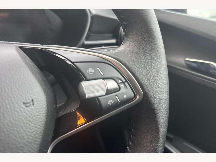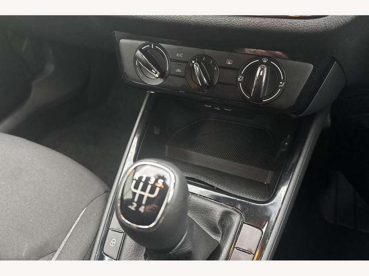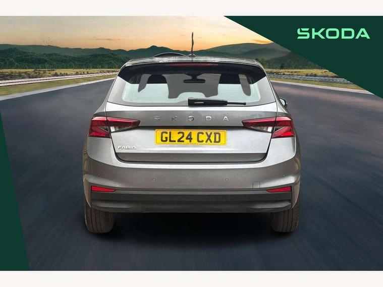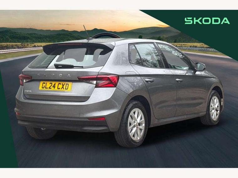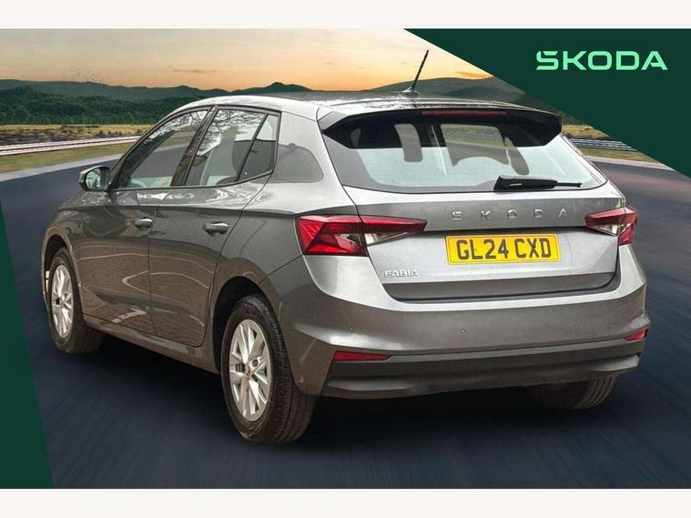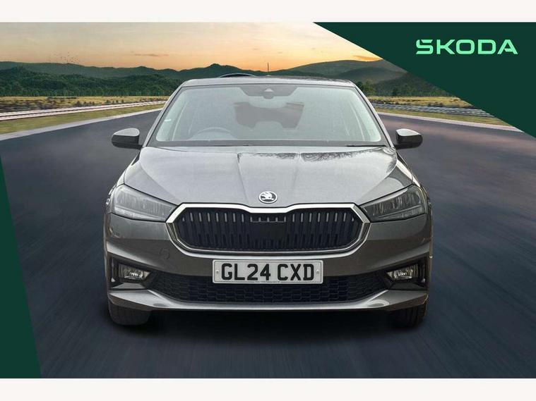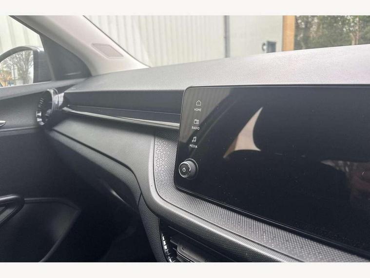 8" Digital instrument display, Advanced driver attention and drowsiness monitor, Bluetooth connection, Electromechanical power steering, Exterior temperature gauge, Lane assist including road edge detection, Rear parking sensors, Service interval indicator, Speed limiter, Traffic sign recognition, Wireless SmartLink for Apple CarPlay and Android Auto, 2x USB-C in the front (for data transmission and charging), 6 speakers (4 speakers/2 tweeters), 8.25" Skoda infotainment touchscreen display, Auxiliary socket for external MP3 player, DAB digital radio reception, Basic LED Headlights, Basic rear lights, Body colour door mirrors, Body coloured bumpers, Dimming rear view mirror with black frame, Door mirror integrated indicators, Electrically adjustable and heated door mirrors, Electrically adjustable front windows with function auto up/down, Front fog lights, Front window wiper intermittent control, Headlight range control - Automatic, Ice scraper in fuel cap, LED daytime running lights with coming and leaving home feature, Mechanical adjustable rear windows, Rain sensor, Rear LED fog light, Rear side wing doors, Rear window wiper with washing nozzles, Roof mounted spoiler, SKODA tailgate lettering in chrome, Third brake light, 2 reading lights in front and 2 reading lights in rear, 2 spoke leather multifunction steering wheel, 3 rear headrests, Backrest split and folding, Central console with removable cup holder and storage box, Chrome handbrake release button, Fabric upholstery, Front centre armrest, Gearshift knob/handle in leather, Grain satin black interior door handles, Hand brake lever handle in leather, Height adjustable driver seat, Height adjustable front headrests, Height adjustable steering wheel, ISOFIX and TopTether anchorage points to the outer rear seats, ISOFIX and TopTether on the front passenger seat, Luggage compartment lighting, Manual air conditioning, Pollen filter, Rear seat bench unsplit, Single front passenger seat, Storm grey headlining, Sun visors with mirror and airbag label on passenger side, Textile floor mats, Ticket holder, 3-point height adjustable front seats belts with pretensioner and force limiter, Automatic warning lights in case of crash, Driver and passengers airbag with switch off function, e-Call+, ESC including ABS, MSR, ASR, EDS, HBA and XDS, Front and rear seat belt warning, FRONT ASSIST (AEB City and AEB Inter Urban), Front side airbags, Head airbags, One tone horn, Pedestrian protection, Three rear 3-points safety seat belts with pretensioner and force limiter including stop function for outer rear seat belts, Tyre pressure monitoring system, Anti-theft alarm system including immobiliser, interior monitoring, backup horn, and towing protection, Central locking with radio remote control, interior controls, SAFE function and 2 foldable keys, Black painted air vents, Glossy black decorative trim, Grain satin black central console cover, Grain satin black lower decorative trim, Satin black door and side trim panel in front, Anti-theft wheel bolts protection, Super-low rolling resistance tyres,
