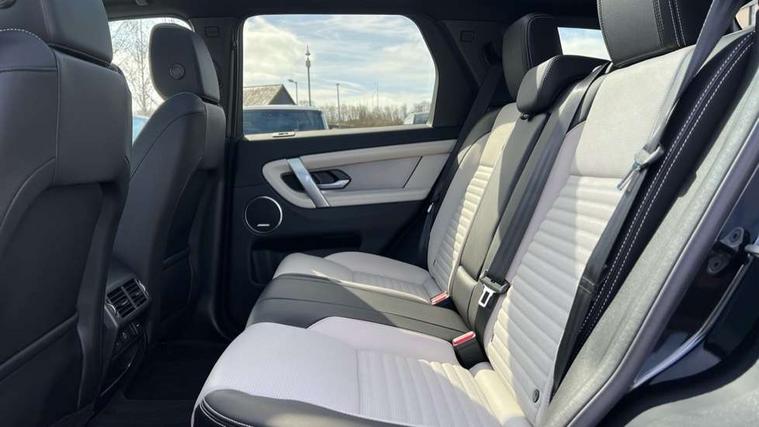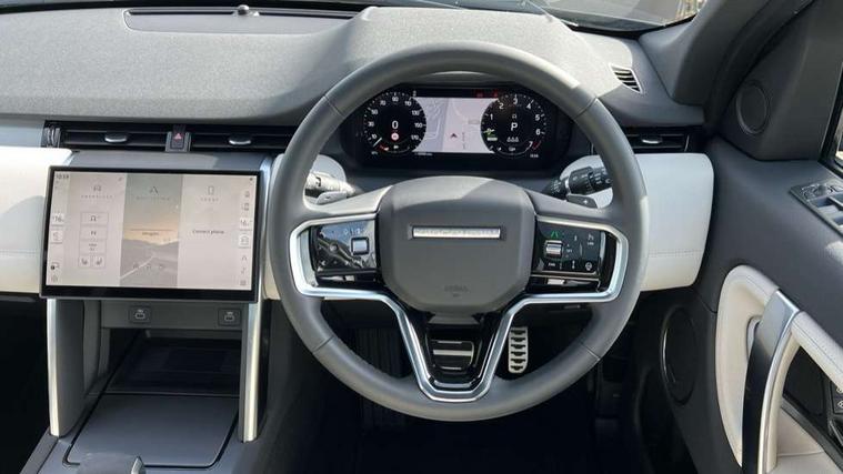 11.4" touch screen, Adaptive cruise control, Android Auto, Apple CarPlay, Driver condition monitor, eCall emergency call system, Front and rear parking aid, InControl remote premium, Interactive driver display, Lane keep assist, Locking fuel flap, PAS, Pivi Pro connected navigation system with upgraded Infotainment, Powered tailgate/boot lid, Push button start, Service interval indicator, Tailgate, Traffic sign recognition with adaptive speed limiter, Trip computer, Wireless device charging, 7 kW onboard charger, All terrain progress control, Coil suspension system, Dynamic stability control, Home charging cable, Public charging cable, Terrain Response 2, Bluetooth connectivity including audio streaming, Digital Audio Broadcast radio-DAB, Steering wheel mounted audio controls, 3rd brake light, Auto high beam assist, Automatic headlight levelling, Automatic headlights, Electric front/rear windows, Electric heated/power fold door mirrors with approach lights and auto dimming driver side, Front and rear recovery eyes, Heated rear window, Heated windscreen including heated washer jets, LED headlights with signature DRL, front and rear animated directional indicators, Metal tread plates with brand name script, P300e badge, Privacy glass, Rain sensing windscreen wipers, Rear fog lights, Rear side wing doors, Rear wing door, Rear wiper, 12 way driver and 10 way passenger electric front seats with driver memory, 2 way manual headrests + 4 way electric lumbar support, 12V power socket in row 2 and load space, 5 standard seating configuration, Bright metal pedals, Carpet mats, Centre console with armrest, Ebony morzine headlining, Footwell lights, Front 12V power socket, Front and rear grab handles, Front passenger isofix child seat attachment, Heated front seats, Loadspace cover, Loadspace light, Manually adjustable steering column, Overhead lighting console, Overhead stowage for sunglasses, Rear headrests, Row 1 USB x 3, Row 2 USB-C x 2 and row 3 USB-C x 1, Satin chrome gearshift paddles, Standard steering wheel, Sunvisors with illuminated vanity mirrors, Twin front cupholders with cover, Dynamic exterior styling pack - Discovery Sport, Online pack with data plan - Discovery, 3 point seatbelts on all seats, ABS, Brake hold function, Child locks on rear doors, Collision mitigation braking system, Cornering brake control (CBC), Driver/Front Passenger airbags, Drivers knee airbag, Electronic brake force distribution, Electronic parking brake, Emergency brake assist, ESP + traction control, Hill descent control, Hill launch assist, Pedestrian airbag system, Rear seat ISOFIX, Roll stability control, Side and curtain airbags for front and 2nd row seats, Trailer stability control, Tyre pressure monitoring system, Battery Back Up System (BBUS) with tilt sensor, Global lock and unlock switch on driver door, Intrusion sensor, Keyless entry, Locking wheel nuts, Centre stack rails in noble chrome,