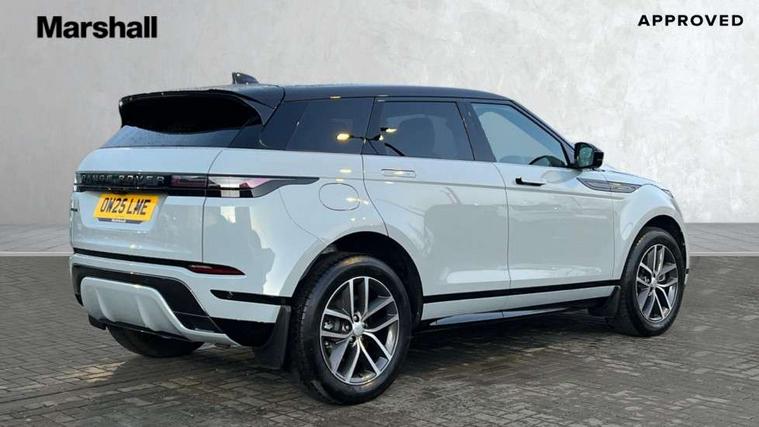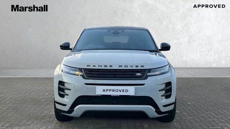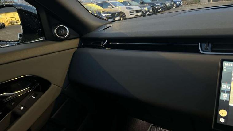 11.4" touch screen, 3D 360 degree surround camera with wade sensing, Adaptive cruise control, Android Auto, Apple car play, Blind spot assist, Bluetooth connectivity, Brake pad wear indicator warning light, Driver condition monitor, eCall emergency system, Eco mode, Electronic power assisted steering (EPAS), Front and rear parking sensors with auto brake, InControl remote, Interactive driver display, Land Rover InControl apps, Lane keep assist, Pivi pro connected includes diamond pivi variant, smart settings, connected navigation pro, nuance speech licence, Powered tailgate/boot lid, Rear collision monitor, Rear traffic monitor, Tailgate, Traffic sign recognition with adaptive speed limiter, Voice control system, Wireless device charging, All terrain progress control, Electric rear axle drive, Large fuel tank, Passive suspension, Public charging cable, Terrain Response 2, Digital Audio Broadcast radio-DAB, Steering wheel mounted controls, Acoustic laminated windscreen, Auto headlights, Auto high beam assist, Automatic headlight levelling, Electric windows with one touch open/close and anti trap, Flush deployable exterior door handles, Front and rear recovery eyes, Heated rear window with timer, Heated washer jets, Heated windscreen, LED headlights with signature DRL and LED tail Lights, Power fold, auto-dimming, heated door mirrors with approach lights and auto dimming driver side, Rain sensing windscreen wipers, Rear animated directional indicators, Rear fog lights, Rear side wing doors, Rear wiper, Tailgate spoiler, Third brake light, Winter wiper park position, 12 way driver memory and 10 way passenger electric front seats with 2 way manual headrest + 4 way lumbar support, 40:20:40 split folding rear seats with centre headrest and armrest, Bright metal pedals, Carpet mats, Chrome tread plates with range rover branding Includes stainless steel loadspace scuff plate with etched graphic, Customer configurable single point entry, Front and rear cupholders, Heated front seats, Heated steering wheel, Isofix system on outer rear seats, Manually adjustable steering column, Overhead lighting console, Overhead stowage for sunglasses, Passive front head restraints, Rear air vents, Rear head restraints, Satin chrome gearshift paddles, SE Grained leather upholstery, Single passenger seat, Standard steering wheel with Moonlight Bezel, Sunvisors with illuminated vanity mirrors, Twin sliding front centre armrest, Power socket pack 2 - Evoque, 3 rear 3 point seatbelts, Anti-lock braking system (ABS), Brake hold function, Customer configurable autolock, DSC - Dynamic Stability Control, Electronic brake force distribution, Electronic parking brake, Electronic traction control, Emergency braking, Front and rear seatbelt reminder, Hill descent control, Hill launch assist, Low traction launch, Occupant protection assist, Passenger seat occupant detector, Power operated child locks, Roll stability control, Six airbags - Driver and passenger airbags/driver knee airbag/front side airbag and curtain airbags, Torque vectoring brake, Tyre pressure monitoring system, Alarm, Immobiliser, Intrusion sensor, Keyless entry, Locking wheel nuts, All season tyres,