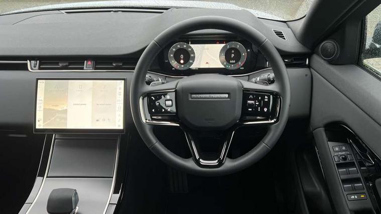 11.4" touch screen, Adaptive cruise control, Android Auto, Apple car play, Bluetooth connectivity, Brake pad wear indicator warning light, Digital driver display, Driver condition monitor, eCall emergency system, Eco mode, Electronic power assisted steering (EPAS), Front and rear parking sensors with auto brake, InControl remote, Land Rover InControl apps, Lane keep assist, Pivi pro connected includes diamond pivi variant, smart settings, connected navigation pro, nuance speech licence, Push button starter, Tailgate, Traffic sign recognition with adaptive speed limiter, Voice control system, Wireless device charging, All terrain progress control, Efficient Driveline, Terrain Response 2, Digital Audio Broadcast radio-DAB, Steering wheel mounted controls, Acoustic laminated windscreen, Auto headlights, Electric windows with one touch open/close and anti trap, Flush deployable exterior door handles, Front and rear recovery eyes, Heated rear window with timer, Heated washer jets, Heated windscreen, LED headlights with Daytime running light and LED tail lights, Manual headlight levelling, Power fold, auto-dimming, heated door mirrors with approach lights and auto dimming driver side, Rain sensing windscreen wipers, Rear animated directional indicators, Rear fog lights, Rear side wing doors, Rear wiper, Side repeater indicators in mirror, Tailgate spoiler, Third brake light, Winter wiper park position, 40:20:40 split folding rear seats with centre headrest and armrest, Ambient interior lighting, Carpet mats, Customer configurable single point entry, Front and rear cupholders, Heated front seats, Heated steering wheel, Isofix system on outer rear seats, Manually adjustable steering column, Overhead lighting console, Overhead stowage for sunglasses, Passive front head restraints, Rear air vents, Rear head restraints, Satin chrome gearshift paddles, Single passenger seat, Standard steering wheel with Moonlight Bezel, Standard tread plates with range rover branding, Sunvisors with illuminated vanity mirrors, Twin sliding front centre armrest, Power socket pack 2 - Evoque, 3 rear 3 point seatbelts, Anti-lock braking system (ABS), Brake hold function, Customer configurable autolock, DSC - Dynamic Stability Control, Electronic brake force distribution, Electronic parking brake, Electronic traction control, Emergency braking, Front and rear seatbelt reminder, Hill descent control, Hill launch assist, Low traction launch, Occupant protection assist, Passenger seat occupant detector, Power operated child locks, Roll stability control, Six airbags - Driver and passenger airbags/driver knee airbag/front side airbag and curtain airbags, Torque vectoring brake, Tyre pressure monitoring system, Alarm, Immobiliser, Intrusion sensor, Keyless entry, Locking wheel nuts, All season tyres,