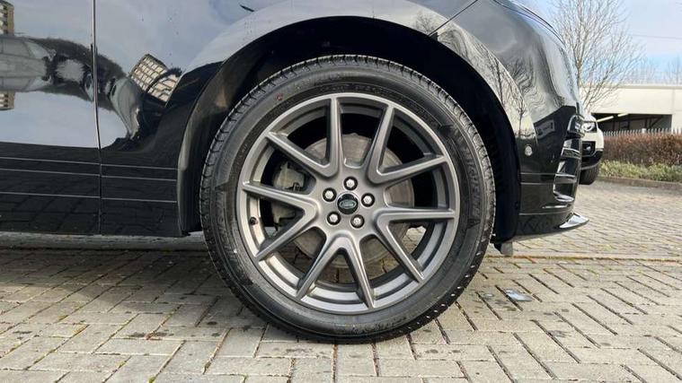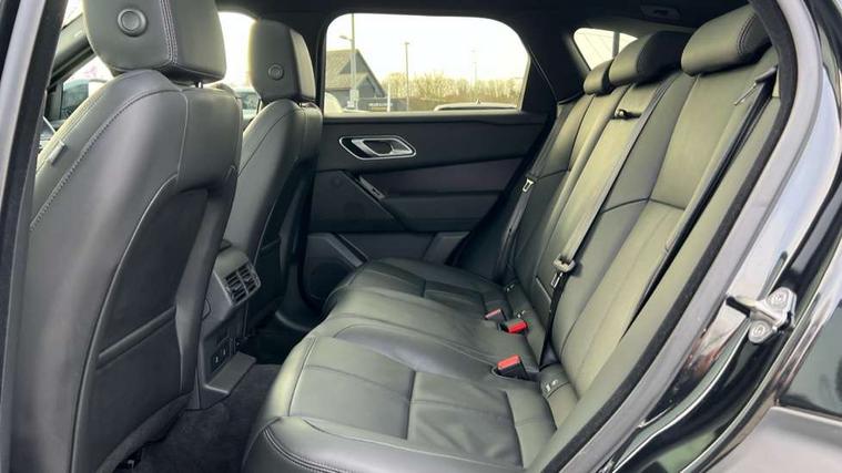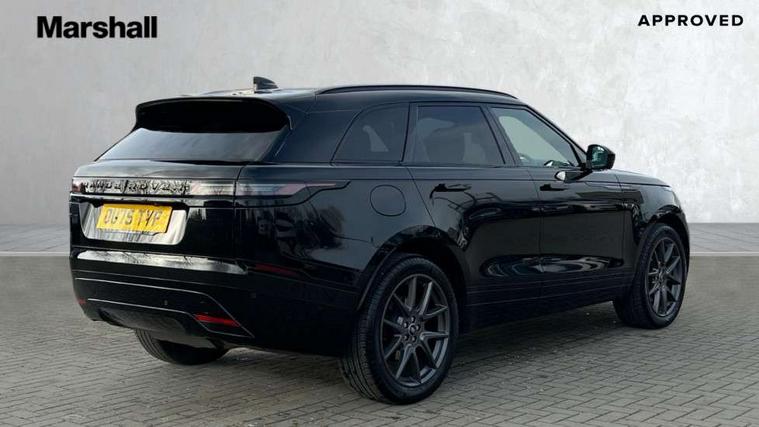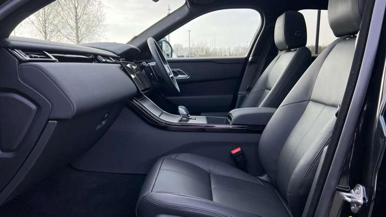 3D surround camera includes forward traffic detection and vehicle guidance, Android Auto, Apple CarPlay, Blind spot assist, Bluetooth connectivity, Brake pad wear indicator warning light, Driver condition monitor, eCall emergency call system, Front and rear parking aid, InControl remote, Land Rover InControl apps, Lane keep assist, Pivi pro with connected navigation, Rear traffic monitor, Service indicator, Speed proportional electronic power assisted steering (EPAS), Traffic sign recognition with adaptive speed limiter, Trip computer, Voice control system, Wade Sensing, Wireless device charging, 8 speed automatic transmission, Adaptive dynamics, All terrain progress control, Coil suspension system, Open differential with torque vectoring by braking, Single speed transfer box, DAB radio, Steering wheel mounted controls, 3rd brake light, Acoustic laminated windscreen, Auto dimming interior rear view mirror, Auto high beam assist, Automatic headlamp levelling, Automatic headlights, Black roof rails, Body coloured bumpers, Boot protection plate, Electric windows with one touch open/close and anti trap, Flush deployable exterior door handles, Follow me home headlights, Heated rear window with timer, Heated washer jets, Heated windscreen, LED headlights with signature DRL, Metal front tread plates, Metal load space scuff plates, Power fold, auto-dimming, heated door mirrors with memory and approach lights, Rain sensor windscreen wipers, Rear animated directional indicators, Rear fog lights, Rear side wing doors, Rear wash/wipe, Tailgate/boot lid spoiler, Trailer stability assist, Velar badge, 14 way electrically adjustable front seats with driver's memory function, 3 seat bench in 2nd row, Ambient lighting, Bright metal pedals, Carpet mats, Driver/passenger sunvisors with illuminated vanity mirrors, Ebony morzine headlining, Electrically adjustable steering column, Heated steering wheel, Isofix system on outer rear seats, Loadspace cover, Overhead lighting console, Overhead stowage for sunglasses, Passive front headrests, Rear air vents, Rear centre headrest, Single front passenger seat, Twin front cupholders, Twin sliding front centre armrest, Online pack with data plan - Velar, Power socket pack 2 - Velar, 380mm front brakes and 325mm rear brakes, 3x3 point rear seatbelts, Anti-lock braking system (ABS), Cornering brake control, Curtain airbags, Customer configurable autolock, Door side intrusion beams, Driver airbag, DSC - Dynamic Stability Control, Electronic brake force distribution, Electronic parking brake, Electronic traction control, Emergency braking, Front and rear seatbelt reminder, Hill descent control, Hill launch assist, Low traction launch, Passenger airbag, Power operated child locks, Rear airbags, Roll stability control, Side airbags, Tyre pressure monitoring system (TPMS), Global lock and unlock switch on driver door, Immobiliser, Intrusion sensor, Keyless entry, Lock only switch on front passenger door, Locking wheel nuts, Perimetric alarm, Remote central locking, All season tyres,