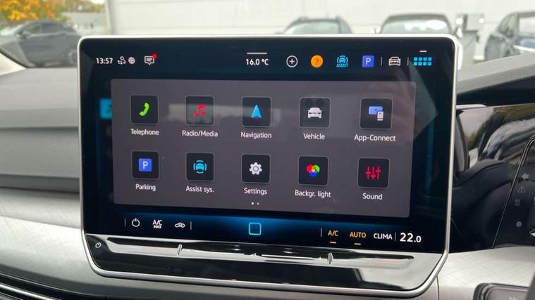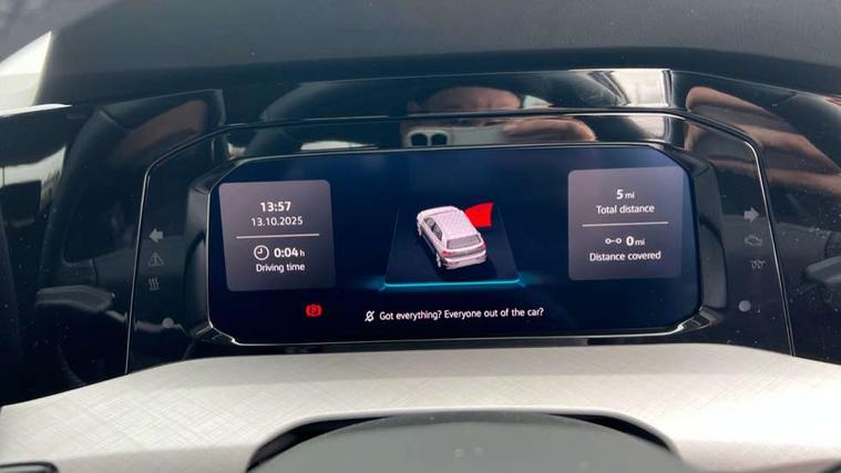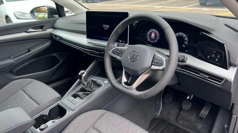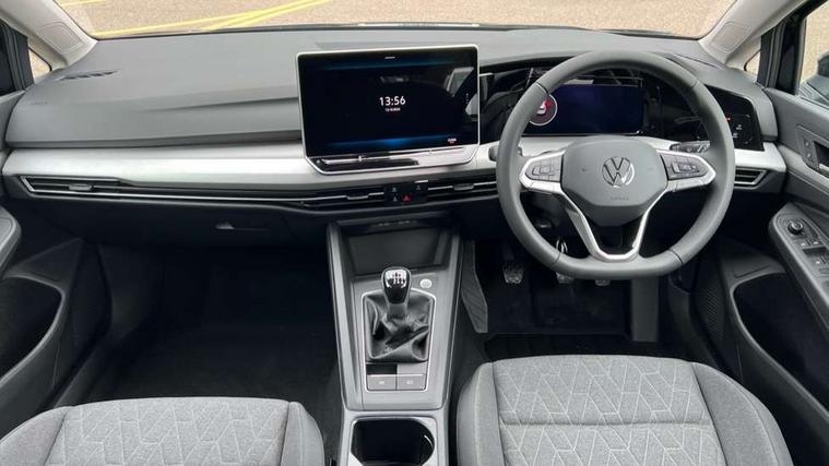 Activated carbon canister, Adaptive cruise control (ACC), Advanced driver attention and drowsiness monitor, Dynamic road sign display, E-Sim card for online connectivity, eCall emergency call system, Multi-color Digital cockpit pro, selection of different info profile possible, Multifunction front facing camera for distance control, Navigation system, Oncoming vehicle braking when turning including swerve support, Speed limiter, Speedo, rev counter, electronic odometer, trip, service interval display, exterior temperature and fuel gauge, Voice enhancer and voice control, Warning signal and warning light for front and rear seatbelts not fastened, We connect plus preparation, We connect preparation, Wireless app connect, Petrol Particulate Filter, Start-stop system with battery regeneration (recuperation - energy recovery during braking), XDS electronic differential lock for improved traction and handling, 2 USB C ports in front, 2 USB charging sockets on the centre console in the rear charging capacity upto 45W, Digital radio reception (DAB), Diversity antenna for FM reception, Gaming platform via car app, Infotainment system with 12.9" display, Mobile phone interface with inductive charging feature, 3rd brake light, Automatic headlamp activation with Coming home and Leaving home feature, Body colour door handles, Body colour door mirrors, Exterior mirrors convex on the left and aspherical on the right, Front and rear electric windows, Heat insulating windshield made of laminated glass, LED separate daytime running light, Rear exhaust tailpipe, Rear fog light on one side and reversing lights on both sides, Rear side wing doors, Rear tinted glass 65% light absorbing from B pillar backwards, Rear windscreen washer and wiper with interval delay, Remote electrically foldable door mirrors, puddle lights and reverse activated passenger's door mirror, Standard bumpers, Welcome light with surround lighting, 12V socket in front centre console, 12V socket in luggage compartment, 3 rear head restraints, 3 seat bench in 2nd row, Chrome plated radiator grille inserts, air vent surrounds and light switch surrounds, Front centre armrest, Front head restraints, ISOFIX anchors for child seats on outer rear bench seats and on front passanger seat compatible for i-Size, Leather gearshift handle, Luggage compartment lighting, Manual height adjustable front passenger seat, Rear cupholder and loadthough, Single front passenger seat, Soul black instrument panel, Split folding backrest with centre armrest and unsplit rear seat bench, Standard pedal cluster, Storm grey roof lining, Sun visors with illuminated vanity mirrors, Parking and comfort pack - Golf Estate/Hatchback, 3 point height adj front seatbelts + pretensioners, 3 rear three point seatbelts, ABS, Autonomous emergency braking front assist with pedestrian and cyclist monitoring, Child locks on rear doors, Driver and front passenger airbag with front passenger airbag deactivation, Electronic parking brake with auto hold, ESC (Electronic Stability Control), Extended pedestrian protection measures, Rear disc brakes, Two tone horn, Tyre pressure loss indicator, Volkswagen roadside assistance, Anti theft wheel bolts, Preparation for alcohol interlock, Nature cross brushed decorative inserts for dashboard and front door panels,