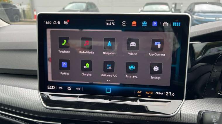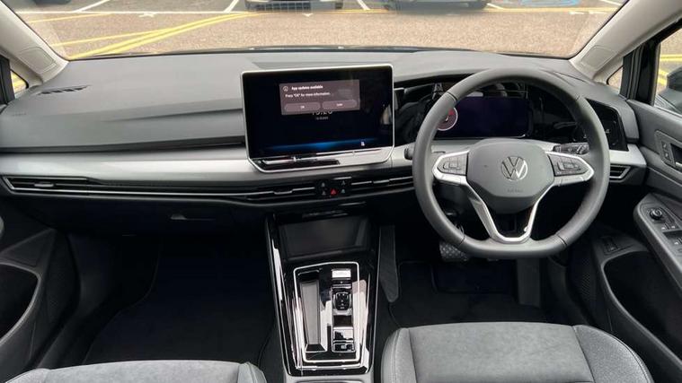Activated carbon canister, Adaptive cruise control (ACC), Advanced driver attention and drowsiness monitor, Dynamic road sign display, E-Sim card for online connectivity, eCall emergency call system, Multi-color Digital cockpit pro, selection of different info profile possible, Multifunction front facing camera for distance control, Navigation system, Oncoming vehicle braking when turning including swerve support, Side assist blind spot lane change system, rear traffic alert and exit warning system, Speed limiter, Speedo, rev counter, electronic odometer, trip, service interval display, exterior temperature and fuel gauge, Traffic jam assist, Voice enhancer and voice control, Warning signal and warning light for front and rear seatbelts not fastened, We connect plus preparation, We connect preparation, Wireless app connect, Charging cable Mode 2 Type 2 (10A), Charging cable mode 3, type 2 32 A, Hybrid propulsion system, Start-stop system with battery regeneration (recuperation - energy recovery during braking), XDS electronic differential lock for improved traction and handling, 2 USB C ports in front, 2 USB charging sockets on the centre console in the rear charging capacity upto 45W, 6 Speakers - 4 in front and 2 in rear with central speaker, Digital radio reception (DAB), Diversity antenna for FM reception, Gaming platform via car app, Infotainment system with 12.9" display, Mobile phone interface with inductive charging feature, 3rd brake light, Automatic headlamp activation with Coming home and Leaving home feature, Body colour bumpers, Body colour door handles, Body colour door mirrors, Chrome trimmed front air intake surrounds, Chrome trims on the side window bottom, Exterior mirrors convex on the left and aspherical on the right, Front and rear electric windows, Heat insulating windshield made of laminated glass, LED separate daytime running light, Rear exhaust tailpipe, Rear fog light on one side and reversing lights on both sides, Rear side wing doors, Rear windscreen washer and wiper with interval delay, Remote electrically foldable door mirrors, puddle lights and reverse activated passenger's door mirror, Welcome light with surround lighting, 12V socket in front centre console, 12V socket in luggage compartment, 3 rear head restraints, 3 seat bench in 2nd row, Air care climatronic 3 Zone automatic climate control with rear air conditioning control panel, Ambient lighting with 30 colour including LED light unit in front footwell with selectable light colour, Chrome plated radiator grille inserts, air vent surrounds and light switch surrounds, Front + rear black carpet mats, Front centre armrest, ISOFIX anchors for child seats on outer rear bench seats and on front passanger seat compatible for i-Size, Luggage compartment lighting, Plastic gear knob, Rear cupholder and loadthough, Single front passenger seat, Soul black instrument panel, Split folding backrest with centre armrest and unsplit rear seat bench, Standard pedal cluster, Storm grey roof lining, Sun visors with illuminated vanity mirrors, Driver assistance pack - Golf Estate/Hatchback Auto, 3 point height adj front seatbelts + pretensioners, 3 rear three point seatbelts, ABS, Autonomous emergency braking front assist with pedestrian and cyclist monitoring, Child locks on rear doors, Driver and front passenger airbag with front passenger airbag deactivation, Electronic parking brake with auto hold, ESC (Electronic Stability Control), Extended pedestrian protection measures, Hill start assist, Rear disc brakes, Two tone horn, Tyre pressure loss indicator, Volkswagen roadside assistance, Anti theft wheel bolts, Preparation for alcohol interlock, New brushed dark metal decorative inserts for dashboard and front door panels, Tool kit for tyre mobility set, Tyre mobility kit Includes 12V compressor and tyre sealant,