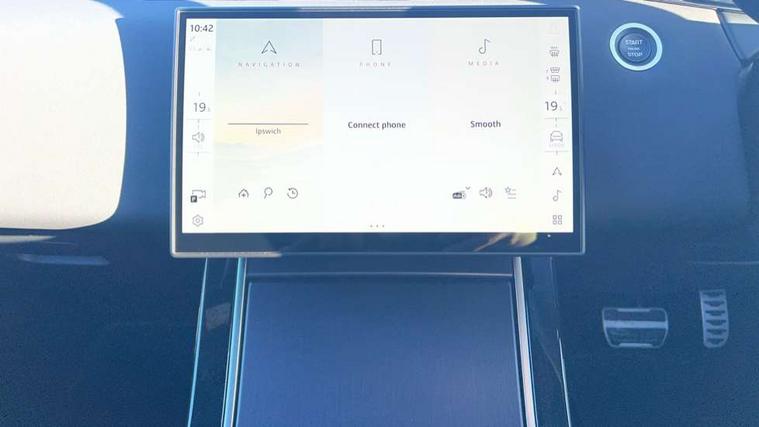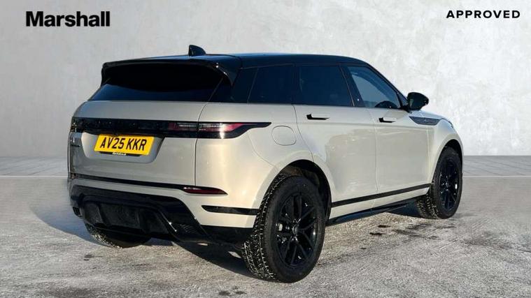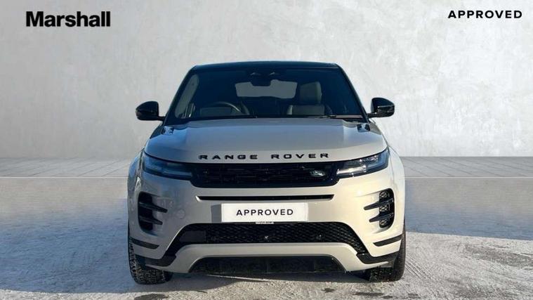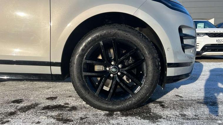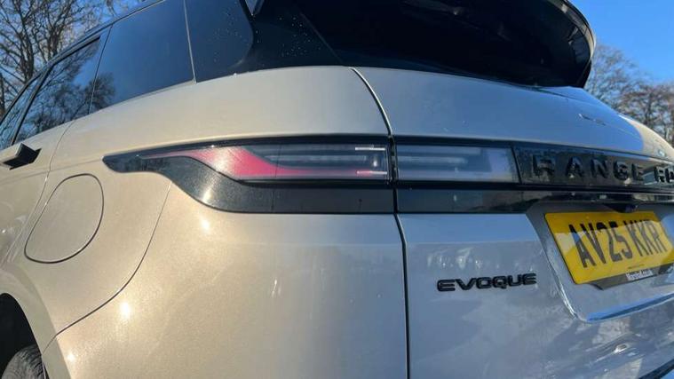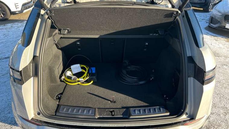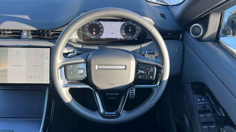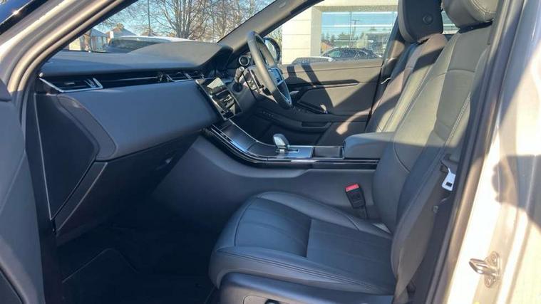 11.4" touch screen, 3D 360 degree surround camera with wade sensing, Adaptive cruise control, Android Auto, Apple car play, Blind spot assist, Bluetooth connectivity, Brake pad wear indicator warning light, Driver condition monitor, eCall emergency system, Eco mode, Electronic power assisted steering (EPAS), Front and rear parking aid, InControl remote, Interactive driver display, Land Rover InControl apps, Lane keep assist, Pivi pro connected includes diamond pivi variant, smart settings, connected navigation pro, nuance speech licence, Powered tailgate/boot lid, Rear collision monitor, Rear traffic monitor, Tailgate, Traffic sign recognition with adaptive speed limiter, Voice control system, Wireless device charging, All terrain progress control, Electric rear axle drive, Home charging cable, Large fuel tank, Passive suspension, Public charging cable, Terrain Response 2, Digital Audio Broadcast radio-DAB, Meridian sound system with 400W subwoofer and 11 speakers, Steering wheel mounted controls, Acoustic laminated windscreen, Auto dimming interior rear view mirror, Auto headlights, Auto high beam assist, Automatic headlight levelling, Black contrast roof, Electric windows with one touch open/close and anti trap, Fixed panoramic sunroof with powered sunblind, Flush deployable exterior door handles, Front and rear recovery eyes, Heated rear window with timer, Heated washer jets, Heated windscreen, LED headlights with signature DRL and LED tail Lights, Metallic paint, Power fold, auto-dimming, heated door mirrors with approach lights and auto dimming driver side, Privacy glass, Rain sensing windscreen wipers, Rear animated directional indicators, Rear fog lights, Rear side wing doors, Rear wiper, Tailgate spoiler, Third brake light, Winter wiper park position, 12 way driver memory and 10 way passenger electric front seats with 2 way manual headrest + 4 way lumbar support, 40:20:40 split folding rear seats with centre headrest and armrest, Bright metal pedals, Cabin lighting, Carpet mats, Chrome tread plates with range rover branding Includes stainless steel loadspace scuff plate with etched graphic, Customer configurable single point entry, Front and rear cupholders, Grained Leather upholstery, Heated front seats, Heated steering wheel, Isofix system on outer rear seats, Manually adjustable steering column, Overhead lighting console, Overhead stowage for sunglasses, Passive front head restraints, Rear air vents, Rear head restraints, Satin chrome gearshift paddles, Single passenger seat, Standard steering wheel with Moonlight Bezel, Sunvisors with illuminated vanity mirrors, Twin sliding front centre armrest, Two zone climate control, Black exterior styling pack - Evoque, Power socket pack 2 - Evoque, 3 rear 3 point seatbelts, Anti-lock braking system (ABS), Black brake calipers, Brake hold function, Customer configurable autolock, DSC - Dynamic Stability Control, Electronic brake force distribution, Electronic parking brake, Electronic traction control, Emergency braking, Front and rear seatbelt reminder, Hill descent control, Hill launch assist, Low traction launch, Occupant protection assist, Passenger seat occupant detector, Power operated child locks, Roll stability control, Six airbags - Driver and passenger airbags/driver knee airbag/front side airbag and curtain airbags, Torque vectoring brake, Tyre pressure monitoring system, Alarm, Immobiliser, Intrusion sensor, Keyless entry, Locking wheel nuts, Secure tracker pro, Black brushed aluminium finisher, 19" gloss black alloy wheels - Style 5136, All season tyres, Tyre repair system,
