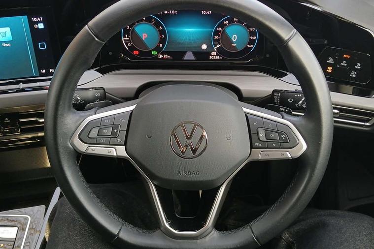 Adaptive cruise control (ACC) with speed limiter and front assist (reacting to vehicles pedestrians and cyclists), Car2X communication, Digital cockpit pro - 10.25" high resolution TFT dash display screen with customizable menus and information, Driver alert system, Dynamic road sign display, eCall - Emergency call service for SOS calls to emergency response, Lane assist, Lane change assist with Rear traffic alert, Mobile phone interface with wireless inductive charging function, Multifunction camera for distance control, Power assisted speed sensitive steering, Speedo, rev counter, electronic odometer, trip, service interval display, exterior temperature and fuel gauge, Start/Stop function, Travel assist with emergency side assist with electrically foldable door mirrors, USB-C ports in the front and rear centre console with increased charging performance, Warning buzzer and light for front seatbelts unfastened, Wireless app connect, Petrol Particulate Filter, XDS electronic differential lock for improved traction and handling, Premium USB cable in choice of either Apple or Android smartphone compatibility, Ambient lighting, exterior illuminated styling elements at the sides, Auto dimming rear view mirror, Automatic headlamp activation with Coming home and Leaving home feature, Automatic headlights, Body colour bumpers, Body colour door handles, Body colour door mirrors with integrated indicators, Body colour rear roof spoiler, Front and rear electric windows, Front fog lights with static cornering function and poor weather lighting, Heat insulating glass windscreen, Heated rear windscreen, High level 3rd brake light, Highway light, Illuminated front grille, LED License plate illumination, Rain sensor, Rear fog light on one side and reversing lights on both sides, Rear lights incorporating LED technology, Rear side wing doors, Rear windscreen washer and wiper with interval delay, Remote electrically heated, adjustable and foldable door mirrors, including door mirror puddle lights and reverse activated kerb-view adjustment on pa, Welcome light, 12V socket in front centre console, 12V socket in luggage compartment, 3 rear head restraints, 3 seat bench in 2nd row, 3 zone climate with controls in the rear, Ambient lighting - Customisable 30 colour ambient lighting, Art Velour cloth upholstery with leatherette armrests, artvelours door inserts + front sports comfort seats with Microfibre sides of bolsters, Drivers and front passengers sun visors with vanity mirrors, Dust/pollen filter, Front + rear carpet mats, Front and rear foot well interior light, Front centre armrest with storage compartment, Front cupholders x 2, Front passenger seat, Front reading lights x 2 incorporating LED technology, Front seat lumbar support adjuster, Glovebox, Height adjustable front seats, Height and reach adjustable steering wheel, Isofix child seat preparation for 2 rear child seats and front passenger seat, Luggage compartment lighting, Plastic gear knob, Removable luggage compartment cover, Soul black instrument panel, Split folding backrest with centre armrest and unsplit rear seat bench, Storm grey roof lining in recycled material, Three spoke leather wrapped multifunction steering wheel with shift paddles, Woven fabric storage compartments in front and rear doors, 3 point height adj front seatbelts + pretensioners, 3 rear three point seatbelts, ABS, Child locks on rear doors, Driver and front passenger airbag with front passenger airbag deactivation, Drivers and front passengers safety optimised head restraints, Electronic parking brake with auto hold, ESC (Electronic Stability Control), Exit warning, Extended pedestrian protection measures, Front centre airbag, Front disc brakes, Front side airbags with curtain airbags, Rear disc brakes, Two tone horn, Tyre pressure monitoring system, Alarm with interior protection and deactivation via infotainment system, Electronic engine immobiliser, Brushed dark metal decorative inserts in dash and front door panels, High gloss black centre console,