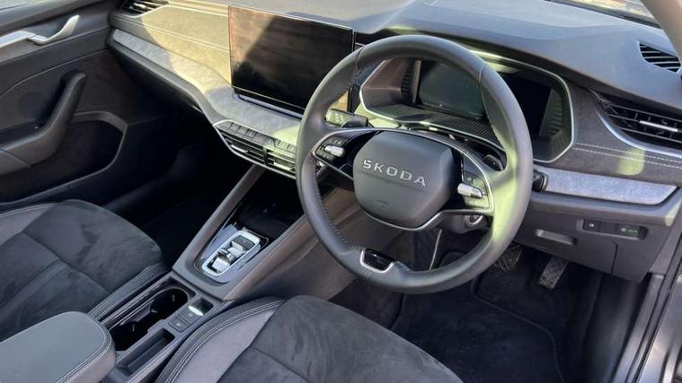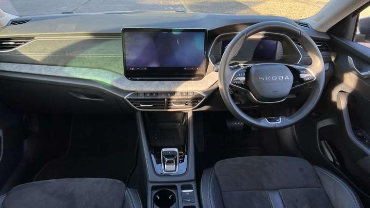 1x USB Typc C port in rear view mirror, 4x USB Type C ports - 2x in front centre console and 2x in rear (45W), Drive mode selection, Driver fatigue sensor, eCall emergency system, Electro-mechanical power steering, Front assist system, Traffic jam assist, Traffic sign recognition, Turn Assist, Virtual Cockpit - 10.25" digital display, Voice control system, Wireless charging (15W) with cooling function, Wireless SmartLink for Apple CarPlay and Android Auto, 13" touchscreen display with navigation, DAB Digital radio, Aero front windscreen wipers with intermittent function, Auto dimming rear view mirror, Body colour bumpers, Body colour door mirrors and handles, Chrome grille surround, Chrome roof rails, Chrome strip in lower front bumper, Chrome window surrounds, Electric front and rear windows, Heated rear windscreen, High level third brake light, Ice scraper in fuel cap, LED daytime running lights, LED Headlights, Logo projection in front doors, Rain and light sensors, Rear fog light on one side, Rear privacy glass, Rear side wing doors, Rear spoiler, Rear window wiper, 12 volt socket in boot, 3 rear headrests, 3 seat bench in 2nd row, 4 foldable roof handles, Front head restraints, Heated front seats, Illuminated glovebox, Interior door handles in dark chrome, Jumbo Box storage, Luggage compartment lighting x2 lights, Mechanical rear seat release from boot, Single front passenger seat, Steering wheel in black leather with black stitching, Storage compartments in left and right of boot, Sun visors with mirrors, Sunglasses storage, Ticket holder, Umbrella in door panel, Unsplit rear bench seat, split folding backrest with centre armrest with cupholder, Comfort package - Octavia Estate, Simply clever package premium - Octavia, 3x3 point rear seat belts, Alarm with interior monitoring, tilt sensor and back up horn, Curtain airbags and front side airbags, Driver and front passenger airbags, Drivers knee airbag, Electronic parking brake, ESC including ABS, EBV, MSR, ASR, EDS, HBA, DSR, Front central airbag, Hill hold assist, ISOFIX on front passenger seat and outer rear seats, Passenger airbag deactivate switch, Three point seat belts in front and rear, Two tone horn, Tyre pressure monitor, Visual and acoustic seat belt reminder, Warning reflectors in front door, Anti-theft wheel bolts, Keyless start/stop, Remote central locking, Chrome air vent surrounds,
