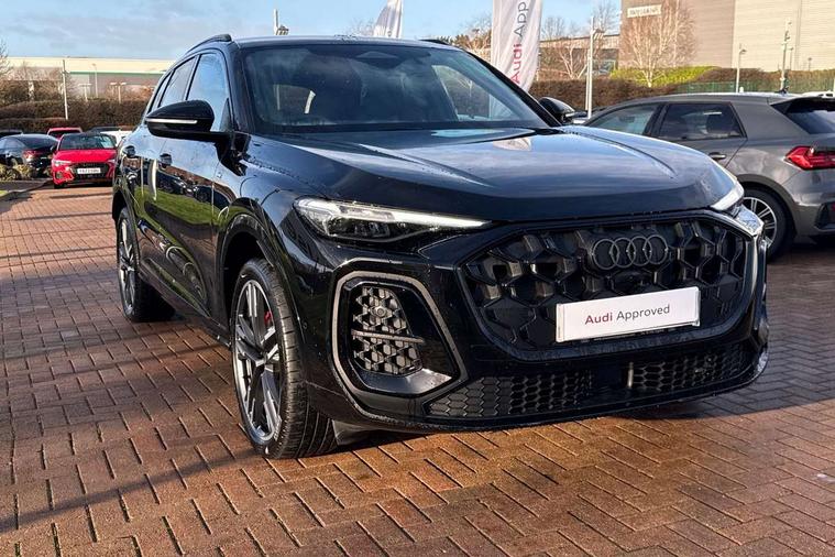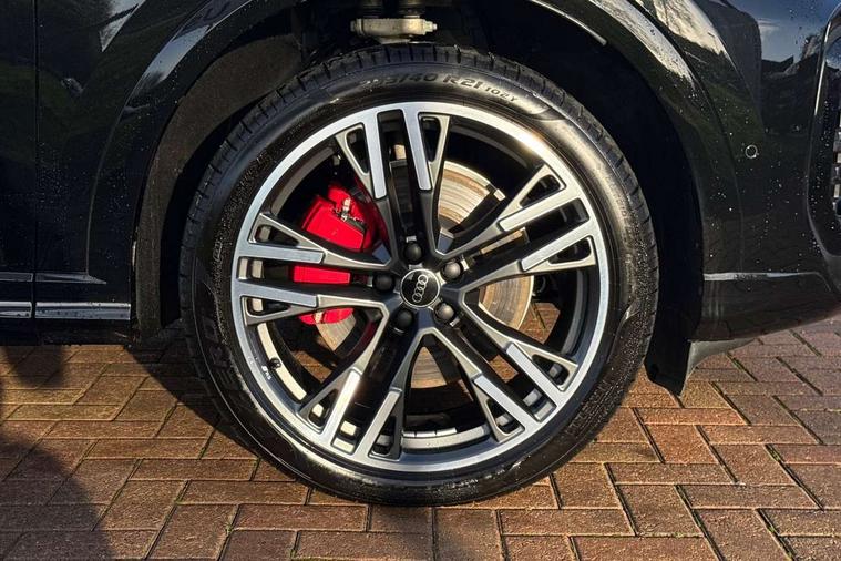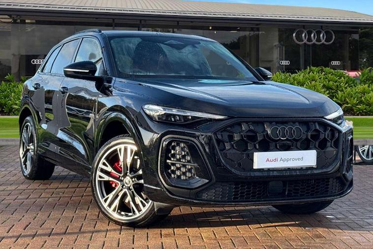 Adaptive cruise control, Advanced driver attention alert, Audi application store, Audi connect emergency call and service, Audi drive select, Audi smartphone interface, Audi virtual cockpit plus with 11.9" OLED colour display, Camera based traffic sign recognition, Fatigue monitor, Front cross traffic intersection assist, Lane change assistant with exit warning system, rear cross traffic alert and rear turn assist, Lane departure warning with emergency assist, MMI 10.9" front passenger touch display, MMI navigation plus with high resolution 14.5" OLED touchscreen colour display, Park assist plus, Parking system plus with 360 display, PAS, Reversing camera, Swerve assist and turn assist, Top view camera, Traffic sign based speed limiter, 2 USB-C ports in both the front and rear, Audi sound system impressive sound with 10 loudspeakers including centre speaker and subwoofer, 6-channel amplifier with a total output of 180 watts, DAB Digital radio, Smartphone compartment with wireless charging, Active digital light signatures - Six additional combinations of active daytime running light signature, Auto dimming rear view mirror, Black roof rails, Coming/leaving home lighting function, Electrically adjustable heated and folding + automatically dimming exterior mirrors, Exhaust tailpipes in dark chrome, Front and rear electric windows, Front door sill trims with aluminium inlays, illuminated with 'S' logo, Full body paint finish, Grill frame, inlay and front air inlets in matt anthracite chrome, Headlight cleaning system, Heated rear window, High beam assist, High gloss window surrounds, LED rear lights pro incl. dynamic rear indicators and illuminated light strip with animated coming and leaving home function, Logo projection light in exterior mirrors, Matrix LED headlights, Memory function for door mirrors, Privacy glass, Projection third brake light for rear window in LED, Radiator grille in phantom black, Rear and side windows with heat insulating glass, Rear honeycombe grille in matt black with inlay in matt anthracite chrome, Rear side wing doors, Rear wash/wipe, S Line badge on the front wings, Towbar preparation, Windscreen with acoustic glazing, 3 rear head restraints, 3 seat bench in 2nd row, 3 spoke leather steering wheel with multi-function buttons with touch control, flattened on top and bottom, with S badging and contrast stitching, 4 way electric lumbar support for driver and front passenger, 40:20:40 split folding rear seat bench with centre armrest and cup holders, Comfort centre armrest, Deluxe 3 zone electronic climate control, Dinamica microfiber/leather upholstery, Electrically adjustable front seats with memory function for driver's side, Front and rear floor mats, Front sport seats with integrated head restraints, Headlining in black cloth, Heated front seats, i-Size child seat mounting on the front passenger side and outer rear seats, i-Size and top tether on the outer rear seats, Interior trim in aluminium look, Luggage compartment lid, electrically opening and closing, Manual steering column adjustment, Single front passenger seat, Softwrap in Dinamica, Stainless steel pedals and footrest, Steering wheel grips in perforated leather and shift paddles, Ambient lighting package plus - Q5, Black styling package plus - Q5, Storage and luggage compartment pack - Q5, 3x3 point rear seatbelts, ABS, Acoustic vehicle alerting system, Convenience key with safelock, Driver and front passenger airbag with passenger airbag deactivation, Electric child safety locks, First aid kit with warning triangle and high visibility vests, Front emergency brake assist, Front side airbags with head airbag system and front interaction airbag, Hill hold assist, Occupant detection in rear seat area, Proactive passenger protection system for front, sides and rear, Red brake calipers, Side airbags in front and rear with head airbag system and front interaction airbag, Tyre pressure loss indicator, Anti theft alarm, Anti-theft wheel bolts, Remote control key with SAFELOCK and keyless go, Accent surfaces and control buttons in gloss black, Black dashboard with contrast stitching, Steel grey seat stitching, Upper and lower interior elements in dinamica microfiber, Tyre repair kit,