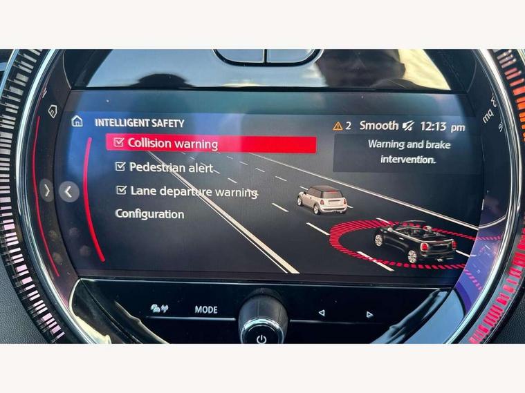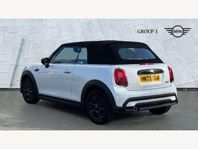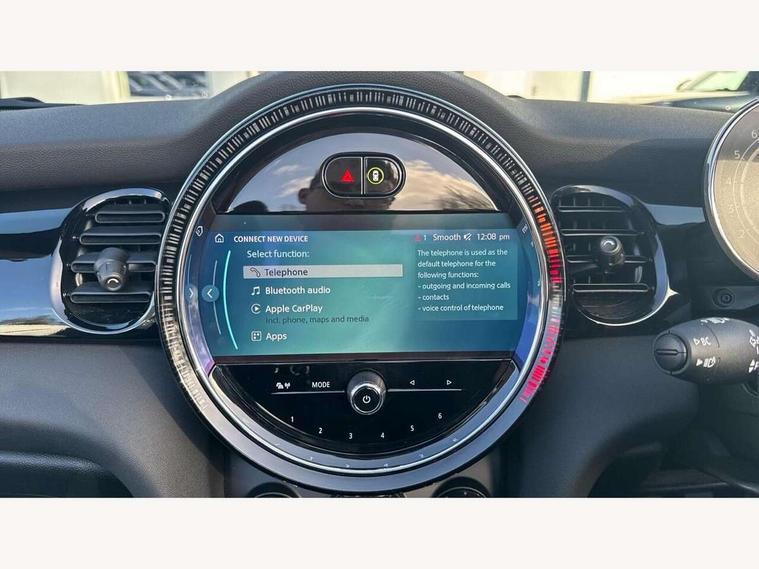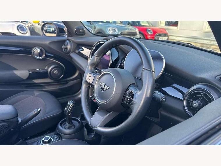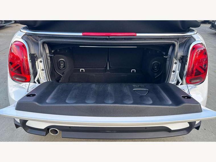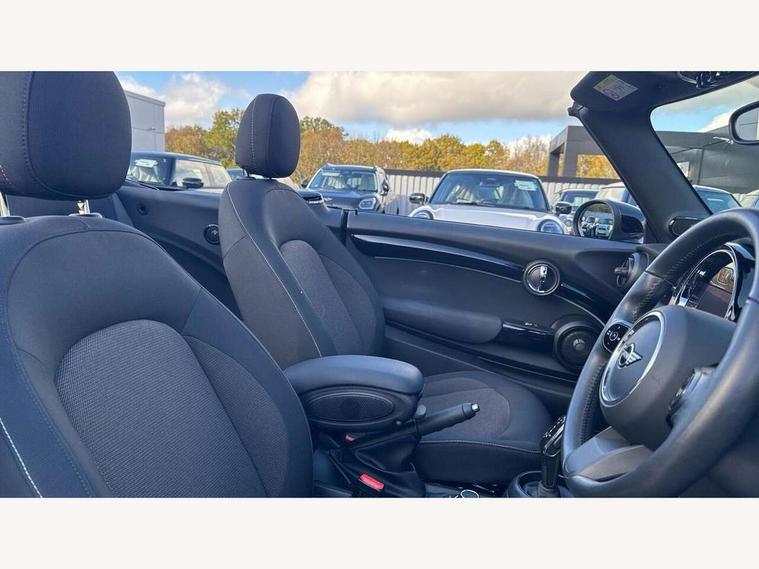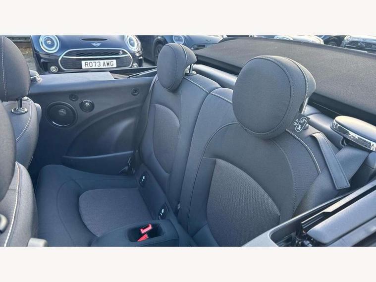 Apple CarPlay, Automatic start/stop function with brake energy recuperation, Compatible mobile phone bluetooth with audio streaming, Cruise control with brake assist, Electro-mechanical speed dependant steering assistance, Instrument cluster, Mini E-call, MINI TeleServices, On board computer, Rear park distance control, Service interval indicator, Double Vanos system, Fully variable valve control, High precision injection, Performance Control, Steptronic transmission with double clutch, FM tuner and DAB digital radio, Automatic headlight activation switch, Body colour fuel filler cap, Chrome border high gloss black slats radiator grille, Dynamic brake lights, Electric windows, Fully electric black softtop with integrated sunroof functionality, Heated rear window, Heated windscreen washer jets, LED headlight with closed ring and daytime driving lights, Left exhaust tailpipe with chrome finisher, Metal door sill strips with MINI imprint, Model logo Cooper on right of tailgate, Rain sensor window wipers, Rear boot, Rear fog lights, Rear LED lights with union jack design, Side scuttle panel with integrated indicator, Sun/heat protection glass, Third brake light, White indicator lenses, 12V Accessory socket in centre console, 2 seat bench in 2nd row, 4 lashing eyes in luggage compartment, 50/50 split folding rear seats, Chrome interior highlights, Colour line - Carbon black, Cupholders, Easy Load boot handles, Front and rear head restraints, Front and rear isofix with front passenger airbag deactivation, Glove compartment, Height and length steering column adjustment, Interior lighting with 12 different colours running across the dashboard, underneath door bezel illuminated laser engraved design on central display, Leather gearshift lever and handbrake gaiters, LED reading lights, vanity mirror lights, front foot well light and spotlight on front seats, Manual air conditioning, Mechanical seat adjustment, driver seat height adjust, forward/back and front seats backrest, Multifunction steering wheel, Single front passenger seat, Sports steering wheel, Storage compartments in doors, Sunvisors with vanity mirrors, Three spoke steering wheel with speed limiter and audio/communication controls, Velour floor mats, Convertible pack with comfort access - Mini Convertible, Navigation pack without Apple car play - Mini Convertible, 3 point seatbelts on all four seats, 6 Airbags - front, side and seat belt tensioners, Active rollover protection, Anti-lock braking system (ABS), DSC - Dynamic Stability Control, Front and rear disc brakes, Hill start assist, Single tone fanfare horn, Tyre pressure monitoring system, Alarm system with tilt sensor, monitoring doors, bonnet interior and tailgate, Electronic vehicle immobiliser, Keyless Go, Piano black interior trim, Tool kit, Tyre repair kit,