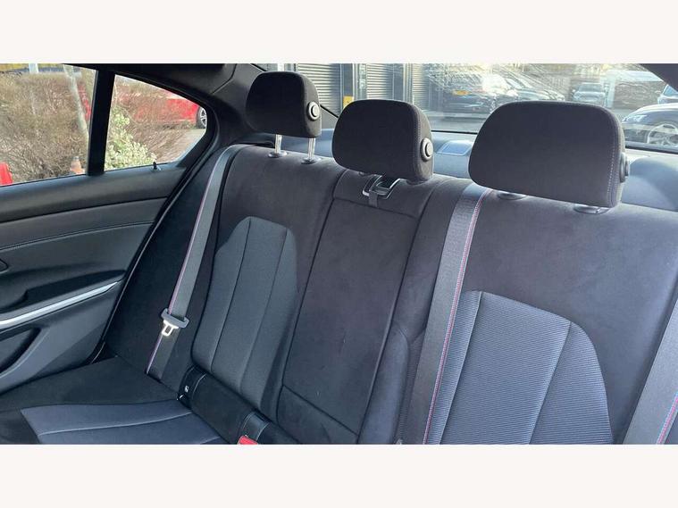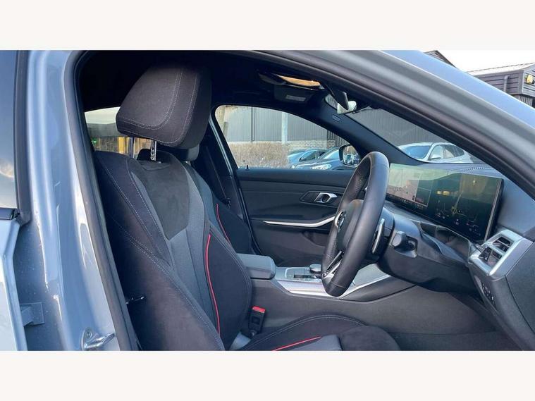 Active guard plus, Attentiveness assist, Automatic Start/stop button, Bluetooth Wi-Fi interface, BMW iDrive, BMW Teleservices, ConnectedDrive Services - last state call, Intelligent voice assist, 2 USB, 4G LTE connect, Live cockpit plus with Navigation + 12.3" instrument display + 14.9" display, Intelligent voice assist, 2 USB, 4G LTE connect, Oil sensor for level and grade, Personal e-SIM, Shifting point display, Double joint spring strut front axle, Fuel tank breather system, Plug and charge, Public mode 3 professional fast charging cable with 5m length, Steptronic Sport automatic transmission with steering wheel mounted gearshift paddles launch control and xtreme drive lever control, DAB tuner, 3rd brake light, Auto dimming rear view mirror, Automatic headlight beam throw control with load dependent regulating reaction, dynamic compensation of braking dive and acceleration squat, Bi-LED Low and high beam headlights, BMW emblem, engine compartment lid and tailgate, Body colour roof fin, Door sill strips, Electric windows - front and rear, with open/close fingertip control, anti-trap facility and comfort closing, Fading support, Follow me home headlight function, Front and rear bumper system with replaceable deformation elements, Front apron plastic in body colour, Fuel filler flap - right rear in body colour, Heat protection glazing on front windows and windscreen, High gloss chrome kidney frame with high gloss black kidney struts, LED daytime running lights, LED rear lights, LED turn indicator, Licence plate panel integrated into front bumper and tailgate, M high gloss shadow line exterior trim, Matt black B-pillar finsher, Matt black window recess cover, Model designation on right side of tailgate, One piece front bumper cover including towing eye cover in body colour, Rain sensor with automatic headlight activation, Rear boot, Rear side wing doors, Reversing lights, Side frame decorative moulding black matt, Trailer stabilisation logic, Visible exhaust tailpipe finisher, Welcome lights in interior and door handle area, Windscreen washer jets, 12V power socket in front storage compartment, 2 front cupholder in centre console with clamping elements and matt black inlay, 3 seat bench in 2nd row, 3 spoke M Sport multifunction flat bottom leather steering wheel, 3 zone automatic air conditioning, 40:20:40 split folding rear seat with loading system, Anthracite headlining, Armrest integrated in front and rear door trim + front centre console armrest, Battery in luggage compartment, BMW ID, Cruise control operation in steering wheel, Driving experience mode switch, Folding rear centre armrest with 2 cupholders, Front and rear headrests, Front and rear velour floor mats, Front reading light, Heated front seats, Height adjustable mechanically and infinitely variable steering column, Illuminated armrest storage compartment, Illuminated glove compartment, Illuminated luggage compartment, Lashing eyelets in luggage compartment, Single front passenger seat, Sunvisors with illuminated vanity mirrors and ticket pocket, Through load system, Toolkit located in luggage compartment, Connected pack professional - 3 Series Saloon/Touring, Interior and exterior mirror pack - 3 Series Touring/Saloon, M sport exterior styling pack - 3 Series Saloon/Touring, Parking assistant pack - 3 Series, 3x3 point rear seatbelts, ABS, Automatic Stability Control (ASC), BMW emergency call, Child locks on rear doors, Cornering brake control, Crash sensor activating of airbags, Unlocking doors, hazard warning lights, interior light, safety battery terminal, Drive-off assistant, Driver and front passenger with seat occupancy detection for driver's and passenger side, Driver and passenger side airbags, body protection at side and airbags deploy from seat backrests, Dry braking, DSC - Dynamic Stability Control, Dynamic brake control, Dynamic Traction Control - DTC, Electric parking brake including automatic hold function and automatic release of the parking brake when driving off, Electronic differential lock control (EDLC), Front airbag deactivation, Front airbags for driver and front passenger, Head airbags in 1st and 2nd row, head protection at side, curtain airbags open from headliner above 1st and 2nd row, Plastic fuel tank, Side impact protection, Tyre pressure sensors, Ventilated front and rear disc brakes, Warning triangle and first aid kit, Alarm system, Centre lock switch, Closing system with central locking, Electronic vehicle immobiliser, Locking wheel bolts, Tyre repair kit,