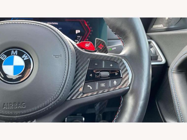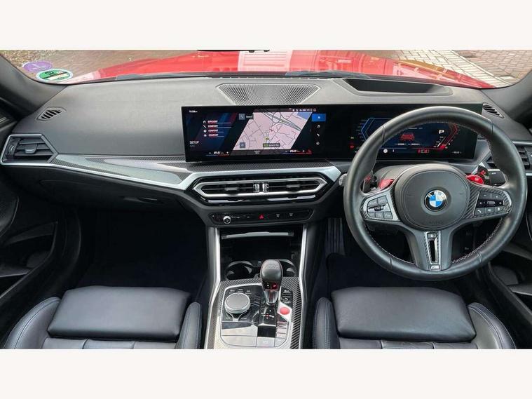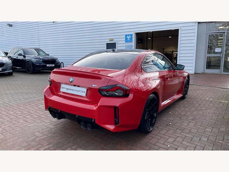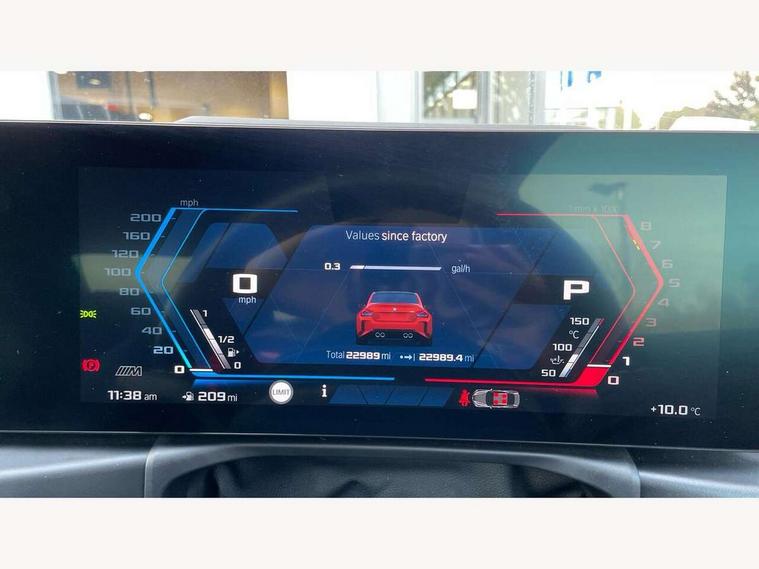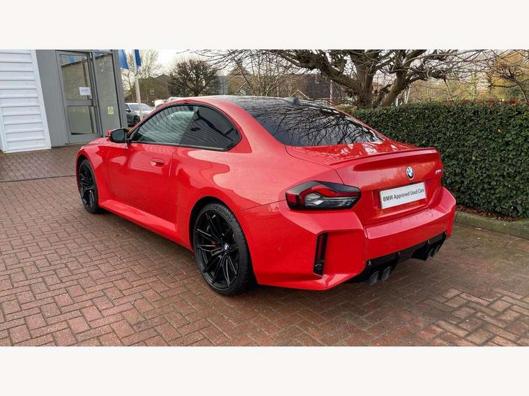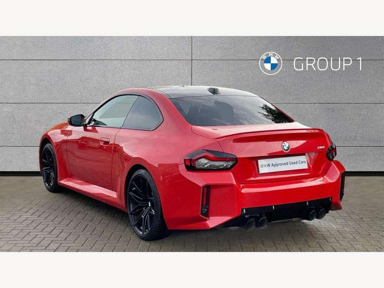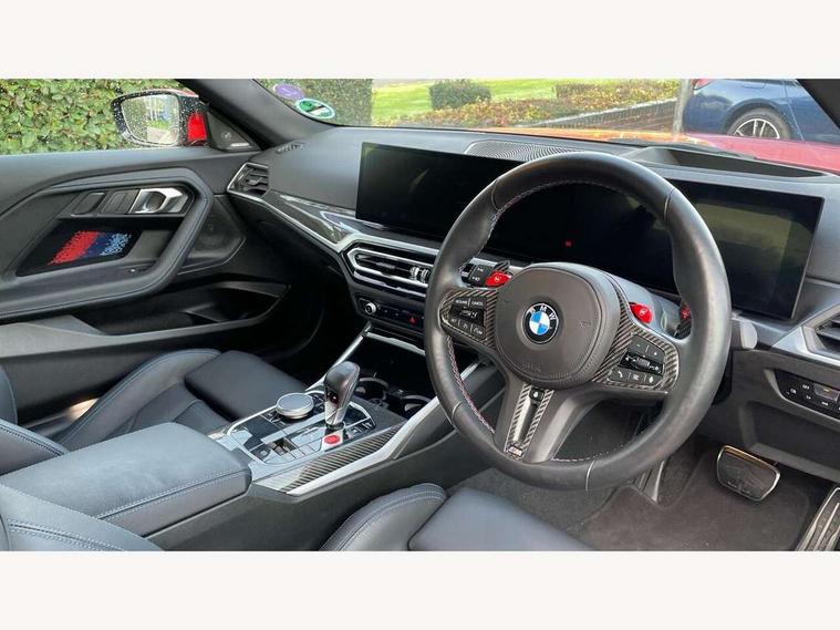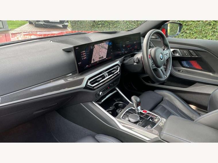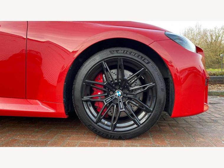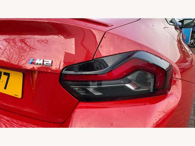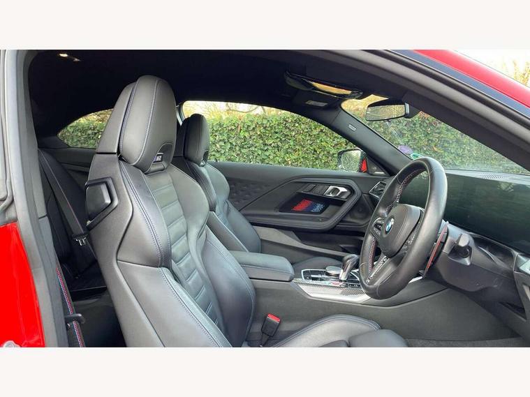 BMW ConnectedDrive online services, BMW legal emergency call, BMW Teleservices, Check control system, Configurable dashboard display, Digital owner's manual, Drive off assistant, Driver attention warning, Engine start button, Exterior temperature display, Live Cockpit Pro with head up display including 12.3" instrument cluster and 14.9" central display, M drive: DSC mode, engine characteristics, M Servotronic, M Drivelogic, adaptive M suspension, brake characteristics, M Sound Control, Oil sensor for level and grade, On board diagnostics, Parking assistant with reversing assistant, active PDC, lateral parking aid and rear view camera, PAS, Service interval indicator, Shifting point display, Speed limiter, Start/stop system, Travel data recorder, Trip computer, Voice control for audio, climate, telephone, navigation, Widescreen display, M Adaptive suspension, M Drive Professional including track mode, laptimer, traction control & Drift analyser, M Sport differential, M steptronic sport transmission with drivelogic, DAB tuner, Harman/Kardon surround sound system, USB port, Adaptive LED Headlights, Automatic headlamp activation, Automatic headlamp levelling, BMW Individual shadowline lights, Door mirror integrated indicators, Dynamic brake lights, Electric adjustable heated door mirrors, Extended High-gloss shadowline exterior trim: high-gloss black mirror caps and rear spoiler, tailpipe finishers in black chrome, Fading support, Follow me home headlights, Front and rear bumper system, Front electric windows, Headlight beam throw control, Heat protection, sun protection glazing, High beam assistant, Illuminated M highlighters, Interior rear view electrochromatic mirror with automatic anti dazzle function, LED 3rd brake light, LED daytime running lights, LED indicator lights, LED number plate light, LED rear lights, M carbon fibre roof, M high gloss shadowline exterior trim in mirror triangle cover, mirror cover panel, mirror bezel and window border, Mirror glass aspheric on driver's side, convex on passenger side, Rain sensor, Rear boot, Sun protection glass: darkened glass for rear screen and rear side windows, Variable front intermittent wipers, Welcome lighting, 12V power socket in front centre console with blanking plug, 2 cupholders, 2 rear head restraints, 2 rear seats, 3 spoke leather M multi-function steering wheel, Ambient lighting, Black velour front and rear floor mats, Carbon fibre interior trim including carbon applications on the steering wheel and carbon shift paddles, Compartment in front of cupholder, Driver/passenger electric lumbar adjustment, Electrically adjustable front seats - driver seat with memory, Folding rear seat head rests, Front and rear door exit lights, Front and rear footwell lights, Front centre armrest, Front door pockets with bottle holders, Front door sill strips with aluminium inlays and M2 labelling, Front interior light, Front M Sport seats, Front reading lights, Glove compartment, Glovebox light, Heated front seats, Height adjustable front headrests, Illuminated armrest storage compartment, Illuminated M accents in front door, Isofix child seat for two outer rear seats, Luggage compartment lighting, M Anthracite headlining, Manually adjustable steering column, Rear armrest, Single front passenger seat, Steering column rake adjustment, Storage compartment in rear doors, Storage tray and compartment with cover in centre console, Through loading system with 40/20/40 split folding rear seat, Two zone automatic air conditioning, Vanity mirror lights, Connected package professional - M2, Extended storage pack - M2, Interior and exterior mirror pack - M2, 4 x 3 point seatbelts, ABS/EBD, Automatic Stability Control (ASC), Cornering brake control (CBC), Crash sensor, Curtain airbags, Driver/Front Passenger airbags, Dry braking, DSC - Dynamic Stability Control, Dynamic brake control, Electromechanical parking brake, Emergency door unlock, Front passenger airbag deactivation, Height adjustable front seatbelts, M seat belts, Seatbelt load limiter, Seatbelt pretensioners with load limiters, Seatbelt reminder, Tyre pressure sensor, Alarm system, Central locking, Drive away door locking, Immobiliser, Remote central locking, Tyre repair kit,
