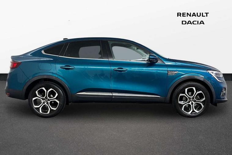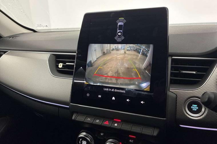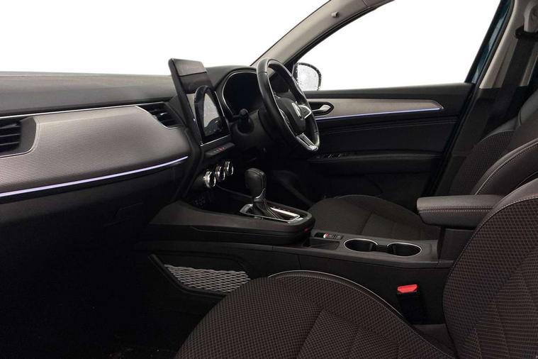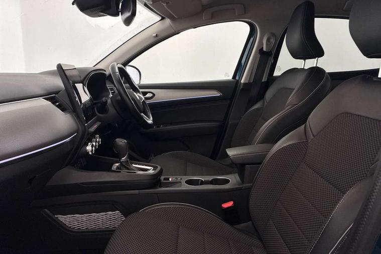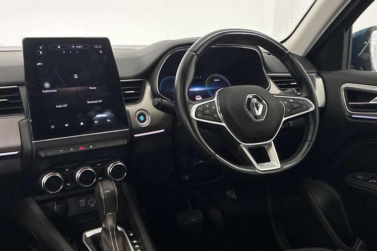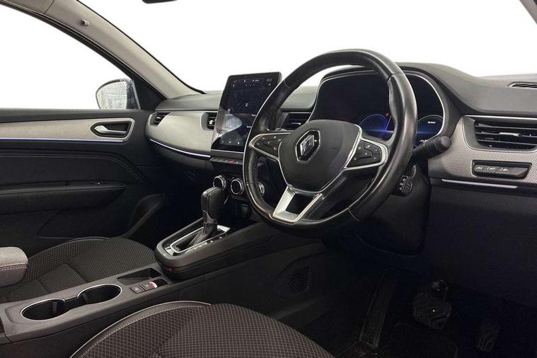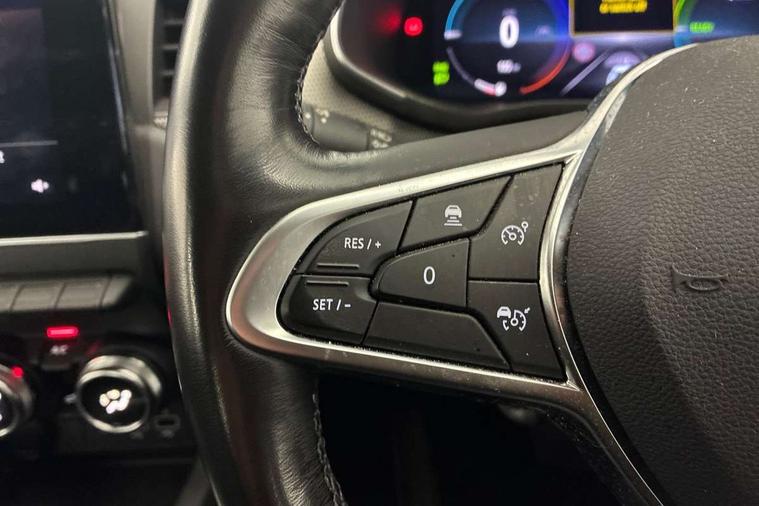7" TFT Driver information display, Blind spot warning, Bluetooth system, EASY LINK 9.3" portrait touchscreen with navigation, Google search and traffic information, eCall emergency call system, Eco mode, EV button to activate pure mode, Front and rear parking sensors, Gear change indicator, Lane departure warning, Lane keep assist, Multi-sense - 3 driving modes and 8 ambient lighting, Rear cross traffic alert, Rear view camera, Renault automatic emergency assist, Smartphone integration compatible with Apple CarPlay and Android Auto, Traffic sign recognition with over speed prevention, Trip computer, Variable assistance electric power steering, Arkamys classic sound system with 6 speakers, DAB radio, USB port, 3rd brake light, Auto dimming rear view mirror, Automatic headlights, Automatic high / low beam, Automatic windscreen wipers with rain sensor, Black side door protection with chrome insert, Body coloured bumpers, C-shaped LED front signature lighting, Chrome decopart on wing (fender molding), Chrome window lower lining, Extra tinted rear windows and tailgate, Front and rear electric windows, Front driver window with one touch facility and anti-pinch function, Front grille with chrome on upper part, Full LED headlights, Grey front and rear skid plates, Heated rear window, Rain sensor, Rear windscreen wiper, Shiny black shark fin antenna, Side mirrors adjustable electrically, electrically foldable, with defrosting and temperature sensor, automatically foldable at vehicle closure, 3 seat bench in 2nd row, 60:40 split and fixed base rear seats, Automatic climate control with combined filter, humidity sensor and AQS, Central console with storage, Front and rear head restraints, Height and reach adjustable steering wheel, ISOFIX child seat fixing points on rear outermost seats, Leather steering wheel, LED front and rear roof lights, Rear air vents, Single front passenger seat, 3x3 point rear seat belts, ABS+EBA, Active emergency braking system, B Brake Mode - One pedal driving with increased regenerative braking, Distance warning alert, Driver airbag, Driver and passenger front and side airbag deactivation, Driver and passenger side airbags, Driver height adjustable seat belt, Electronic parking brake with auto hold, ESC (Electronic Stability Control), Front and rear no seatbelt warning sound, Front curtain airbags, Front head airbags, Hill start assist, Passenger airbag, Tyre pressure warning light, Anti drill door locks and locking fuel cap, Central door locking, Deadlocking system, Hands free keycard with Keyless access and start, RAID (Renault Anti-Intruder Device) automatic door locking, Rear side wing door and window child locking function (front driver door control panel), Superlocking, Thatcham alarm, 18" Pasadena diamond cut alloy wheels with grey inserts,