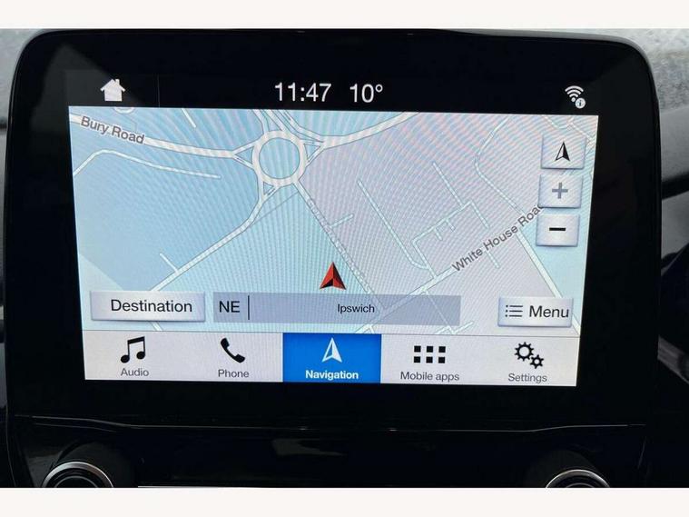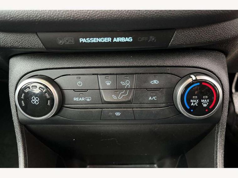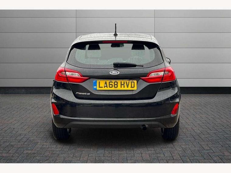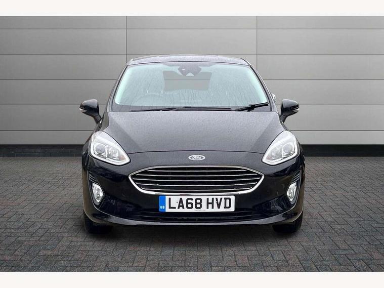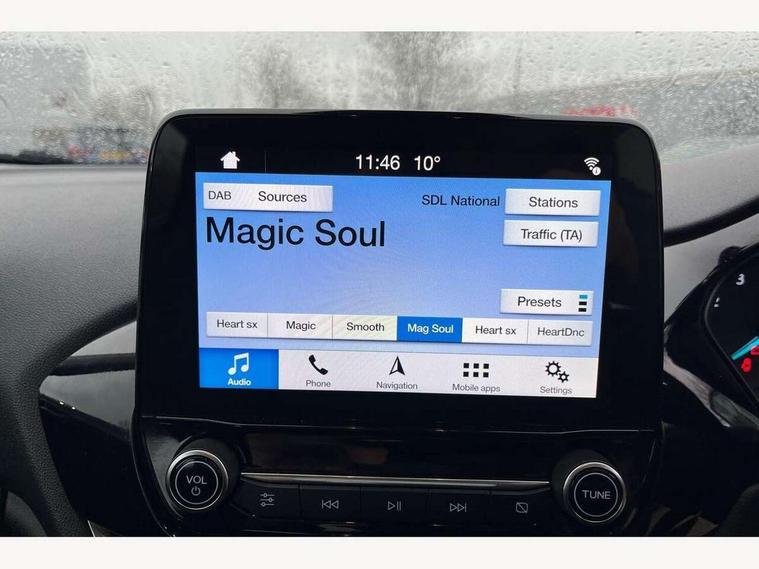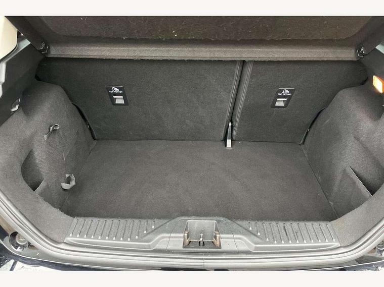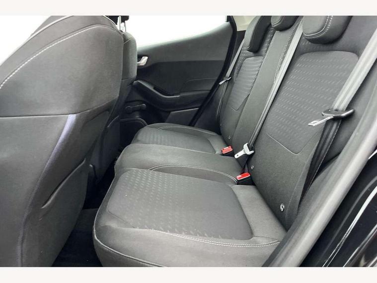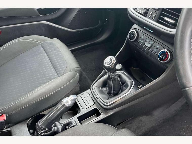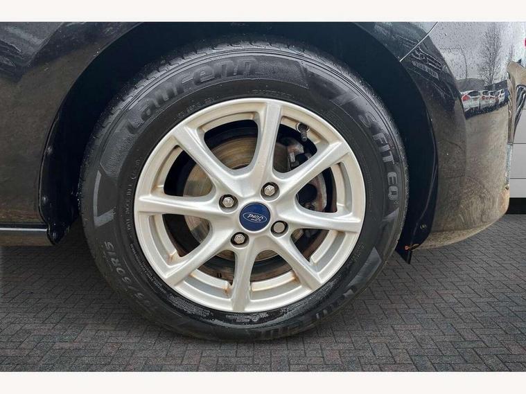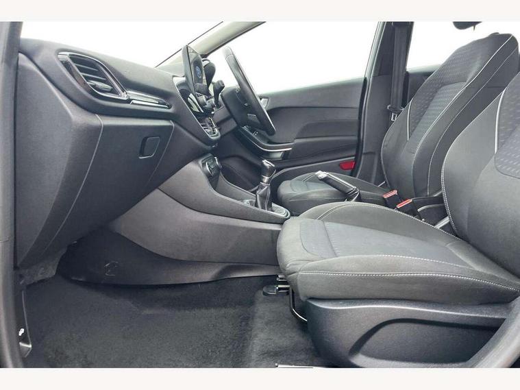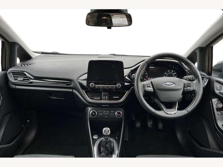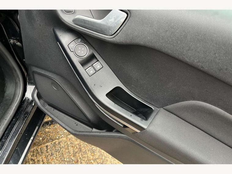 Bluetooth system, Electric power steering, Ford easy fuel, Trip computer, 2 USB ports, Auxiliary input socket, DAB Digital radio, Steering wheel mounted controls, Automatic headlights, Body colour bumpers, Body colour door handles, Body colour electric adjustable heated door mirrors with integral indicators, Body colour rear spoiler, Chrome beltline trim, Cornering front fog lights, Electric front windows/one touch facility, Halogen projector style headlights with static cornering lights + LED daytime running lights, Quickclear heated windscreen, Rear wiper, Tinted glass, Upper front grille chrome surround, 12V Accessory socket in centre console, 3 spoke leather trimmed steering wheel with audio control, 60/40 split folding rear seat, Adjustable head restraints, Boot carpet, Chrome inner door handles, Cloth upholstery, Footwell illumination, Front map reading lights, Front seat and rear pockets, Height adjustable driver's seat, Illuminated glovebox, Leather gear knob, Leather trimmed handbrake handle, Load area light, Luxury woven headliner, Manual air conditioning, Overhead console with sunglasses holder, Pollen filter, Rake/reach adjustable steering wheel, Rear centre head restraint, NCAP Pack - Fiesta, 3 point seatbelts on all rear seats, ABS+EBA, Curtain airbags, Driver and passenger airbags, Drivers knee airbag, Electronic stability control with hill start assist, Front passenger airbag deactivation, Front side airbags, Seatbelt warning, Tyre pressure monitoring system, MyKey system, Remote central locking & engine immobiliser, Thatcham Cat.1 alarm,