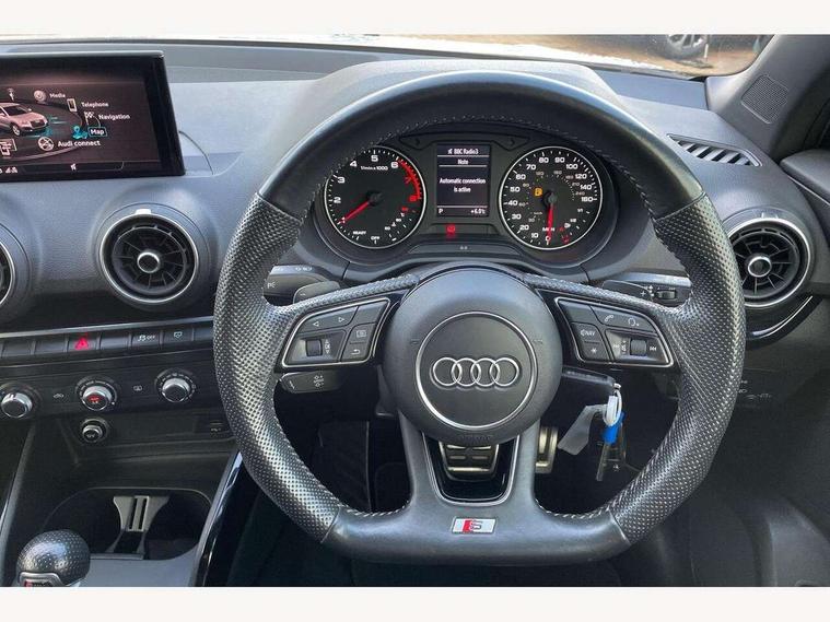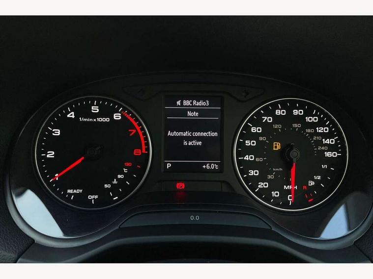 Audi drive select, Audi smartphone interface, Automatic start/stop system with recuperation, Bluetooth interface includes bluetooth audio streaming, Cruise control, MMI - Multi Media Interface control system, MMI SD card integrated nav with 3D map display, dynamic route guidance with TMC, MMI search, natural voice recognition and myAudi special destinations, Power operated tailgate, Progressive steering, Service interval indicator, Dynamic suspension, 2 x SDXC card reader, Audi music interface - apple iPod, apple iPhone, USB storage media, compatible MP3 players, 2 x USB charging points and 1 x Aux-in, CD Drive, DAB digital radio and AM/FM radio, MMI radio plus with 7" colour MMI screen and MMI controller, Black window trims, Bumper in full body colour paint finish, Chrome exhaust tailpipe, Electrically adjustable and heated door mirrors with integrated LED side indicators, Front and rear electric windows, Front underbody guard and rear diffuser trim in selenite silver, Front windscreen with grey tinted sunband, Headlight washers, Interior mirror, LED headlights with LED rear lights + dynamic rear indicators, LED indicator lights, Manual folding door mirrors, Privacy glass - dark tinted rear and rear side windows from B-pillar backwards, Rain and light sensors, Rear wiper, S Line body styling - front and rear bumpers, side skirts, radiator grille, rear diffuser insert and front air intakes, 3 spoke flat bottomed high multi-function leather sport steering wheel with gearshift paddles, 60/40 split folding rear seat bench, Black cloth headlining, Floor mats with contrast stitching, Front centre armrest, Front headrests, Front sport seats with S embossed logo, Height/reach adjust steering wheel, Illuminated door sill trims with S logo, ISOFIX child seat mounting for front passenger with airbag deactivation and outer rear seat including top tether attachment point for outer rear seats, Manual seat adjustment including seat height adjustment for front seats, Stainless steel pedals, Storage compartments - Glovebox, cupholder compartment in centre console, storage compartment in rear centre console, front and rear door pockets, Three rear headrests, Black styling pack - Q2, LED interior lighting pack - Q2, Non smoking pack - Q2, 3x3 point rear seatbelts, 6 airbags - Front, curtain and front side airbags, Electromechanical parking brake, Electronic stabilisation control including ABS, ASR and EDL, Extended and proactive pedestrian protection, Hill hold assist, Multi collision brake assist, Pre-sense front with pedestrian recognition, Seatbelt monitoring, Tyre pressure warning light, Warning triangle and first aid kit, Anti theft alarm, Anti theft wheel bolts, Central locking system with remote control key, Electronically operated child locks, Aluminium interior element, Black inlays - decorative trims in black for centre console and front and rear door pull handles,