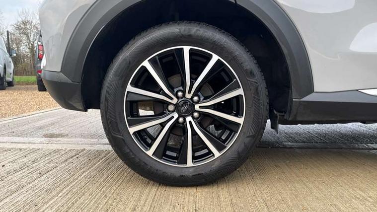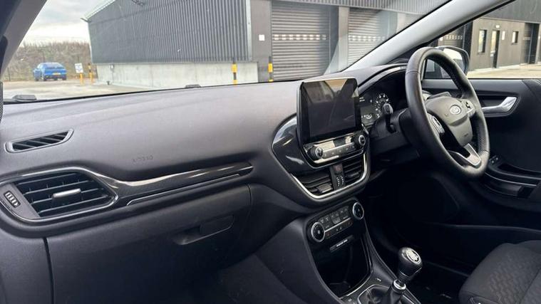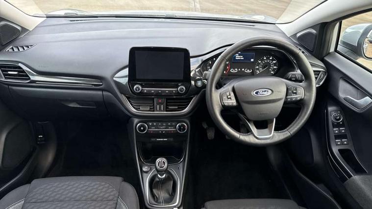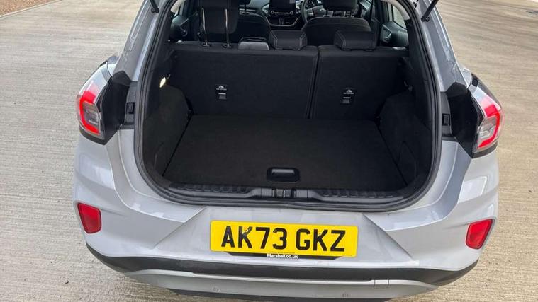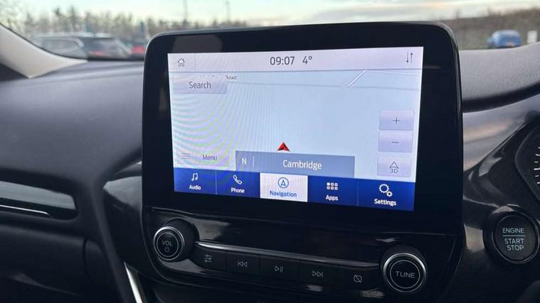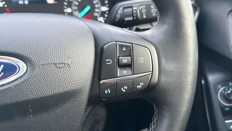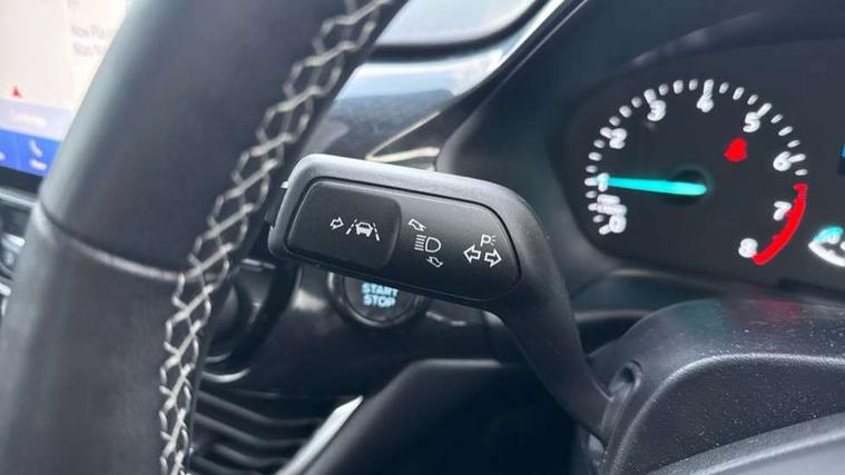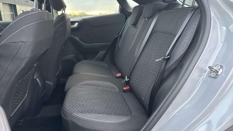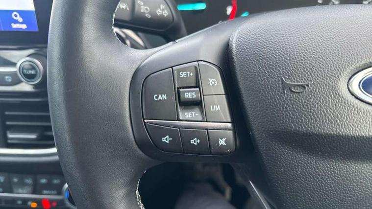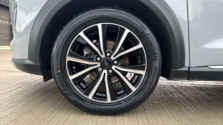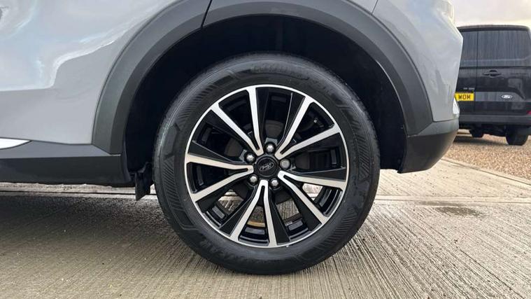 Driver impairment monitor, Emergency call service, Ford easy fuel, Lane keeping aid with lane departure warning, Power assist steering, Power start button, Rear parking sensor, Selectable drive modes(Normal, Eco, Sport, Slippery and Trail), Speed sign recognition, Standard suspension, Automatic headlights with auto high beam, Automatic rain sensing wipers, Body colour rear spoiler, LED rear lamps, Power foldable heated door mirrors with puddle lamps, Projector headlamps with LED day time running lights and front fog lamps, Quickclear heated windscreen, Rear side wing doors, Rear wiper, Third brake light, 3 seat bench in 2nd row, Centre console with armrest and stowage, Electronic automatic temperature control (EATC), Ford megabox extended bootspace, Front and rear head restraints, Front floor mats, Manual 2 way passenger seat adjustment, Manual 4 way driver seat adjust with lumbar adjustment, Sensico leather steering wheel/gear knob/handbrake, Single front passenger seat, Titanium cloth upholstery, Ford SYNC 3 navigation pack - Puma, 3 rear seatbelts, Child safety lock, Electronic stability control (ESC) and hill start assist, Pedestrian/cyclist detection & post-collision braking, Pre collision assist system, Tyre pressure monitoring system (TPMS), Thatcham alarm, 17" 10 spoke absolute black machined finish alloy wheel,