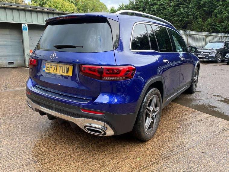 10.25" Digital instrument cluster display screen, 10.25" Digital media screen display, Active lane keeping assist, Attention assist - Monitors steering behaviour and long journey fatigue, Brake pad wear indicator warning light, Car wash mode, Cruise control with limiter, DYNAMIC SELECT with a choice of driving modes (ECO, Comfort, Sport and Individual), ECO start/stop function, Fluid level warning indicator for fuel, oil, coolant and washer fluid, Hard disk navigation, Hey Mercedes Voice activation, Lamp failure indicator, Mercedes me connect including emergency call system, accident recovery, breakdown and maintenance management, Mercedes me remote services, Outside temperature gauge, Owners manual and service booklet in English, Parameter steering system, Pre-installation of private car share, Radio aerial integrated into front and rear windshields, Service indicator (ASSYST), Smartphone integration with Apple CarPlay and Android auto, Speed limit assist, Trip computer in multifunction display with current consumption indicator, Comfort suspension, Rear axle multi-link, DAB digital radio tuner, MBUX multimedia system with DAB digital radio and touchpad including satellite navigation, Mercedes Benz sound system (225 W) with 10 speakers, 1 central speaker, speakers on doors, a tweeter on door, one sub woofer + boost amplifier, Pre installation for Mercedes Benz Link, USB (type C) port in front stowage compartment, USB (type C) ports (2) in stowage compartment, Adaptive brake lights, Aerial for GPS, AMG bodystyling door panels black grained with chrome plated inserts, AMG bodystyling front apron with chrome splitter, AMG bodystyling rear apron with diffuser optics and chrome trim element, AMG specific front and rear bumper including underride guard in high gloss chrome, Beltline strips and weather strip in chrome, Body coloured door handles with chrome insert for keyless entry, Body coloured door mirror caps, Electric adjustable and heated door mirrors with integrated LED side indicators, Exhaust system with dual flow exhaust pipes (non-functional), Front and rear electric windows, Headlamp assist automatic headlamp activation, Heated glass rear windscreen + timer control, High level LED third brake light, Interior mirror with black reading lamps and frameless, LED high performance headlamps with integrated LED daytime running lights, LED tail lamp, Polished aluminium roof rails, Privacy glass with dark tinting on rear side windows and rear window, Radiator grille with pins in chrome and single louvre with chrome insert, Rain sensor windscreen wipers, Rear fog lamp, Rear side wing doors, Rear wing door, Rear wiper, Two visible tailpipe trim elements exhaust, 3 seat bench in 2nd row, 3 spoke multifunction sport steering wheel in nappa leather, Air conditioning - Two zone thermotronic luxury automatic climate control with display, AMG sports pedals with brushed stainless steel surfaces and black rubber studs, Artico man-made leather/Microfibre Dinamica upholstery with red contrast stitching, Automatic child seat recognition sensor, Black floor mats with AMG lettering, Black roof lining, Fore/aft adjustment rear seats, Freight packaging with tie-down hooks, Front centre armrest with stowage, Front door sills with illuminated changeable cover, Front passenger grab handle with brushed side silver chrome, Galvanished gear shift paddles on steering wheel, Heated front seats, Height/reach adjustable steering column, Interior lighting - 64 colour Ambient lighting, Luggage net on driver/front passenger seat backrest, Rear armrest with two integral cup holders for drinks, Rear seat easy entry, Single front passenger seat, Sports seats with adjustable head restraints, Stowage compartment in centre console, Stowage compartment with retractable cover, Third row of seats for two people on rear seat, Touchpad on center console, Twin front cup holders, Two outer rear seat isofix and top tether child seat fixing points, Interior lighting with light and sight pack - GLB, Keyless go pack - GLB, Mirror pack - GLB, Parking pack - GLB, Seat comfort package - GLB, 3 rear 3 point seatbelts, Active bonnet pedestrain safety measure which detects an impact and raises bonnet by 65mm, Active brake assist includes forward collision warning system with autonomous braking, Adaptive brake assist with hold function and hill start assist, Airbags - kneebag for driver, Anti-lock braking system (ABS) with brake assist, Childproof locks manually operated for rear doors and electrically operated for rear power windows, Crash responsive emergency lighting, Curve dynamic assist, Driver and front passenger head and sidebags, Driver and front passenger windowbags, Dual stage driver and front passenger airbags, Electronic parking brake, Electronic stability programme with acceleration skid control, Front and rear seatbelt reminder, Front brake callipers with Mercedes Benz lettering, Front passenger seat occupancy sensor, Tyre pressure monitoring system, Warning triangle and first aid kit, Remote central locking and crash sensor with emergency opening function, Thatcham category 1 alarm system with immobiliser and interior protection, Urban guard vehicle protection - Anti theft alarm system, tow away protection with visual and acoustic warning and alarm siren, Vehicle key with decorative surround in chrome, Black air vents with chrome surround, Carbon structure trim, 19" AMG 5 twin spoke light alloy wheels painted in tantalite grey with high sheen finish, Summer tyres, Tirefit tyre sealant kit,